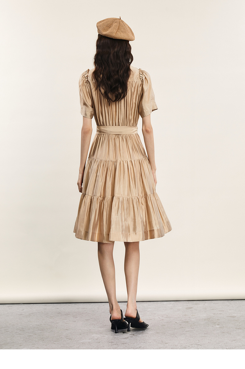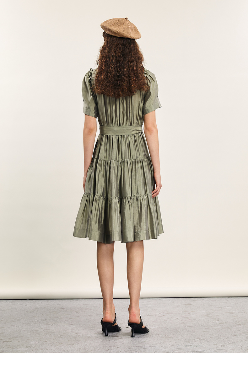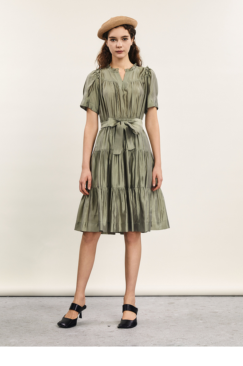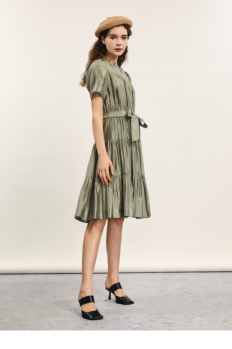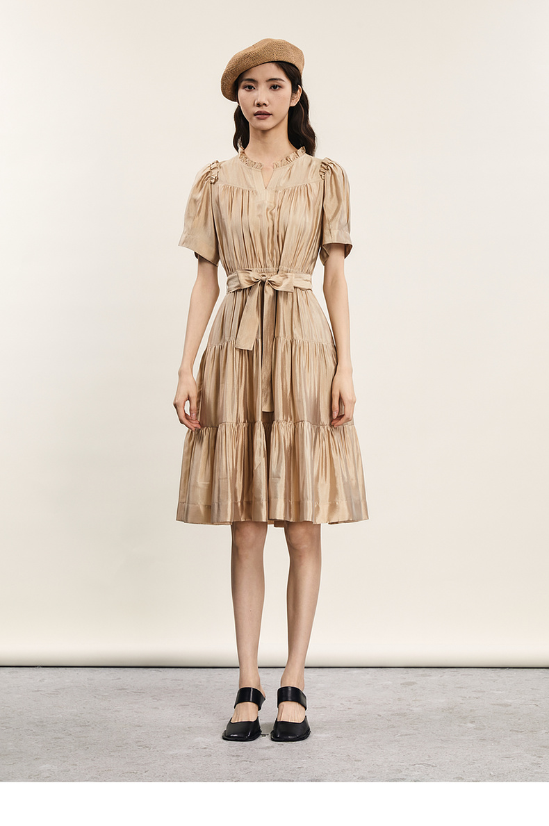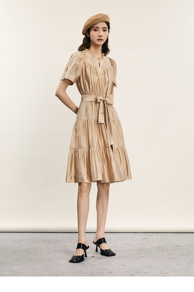 谜底荷叶边连衣裙2024夏季新品复古文艺风中长裙配腰带242ML0564
