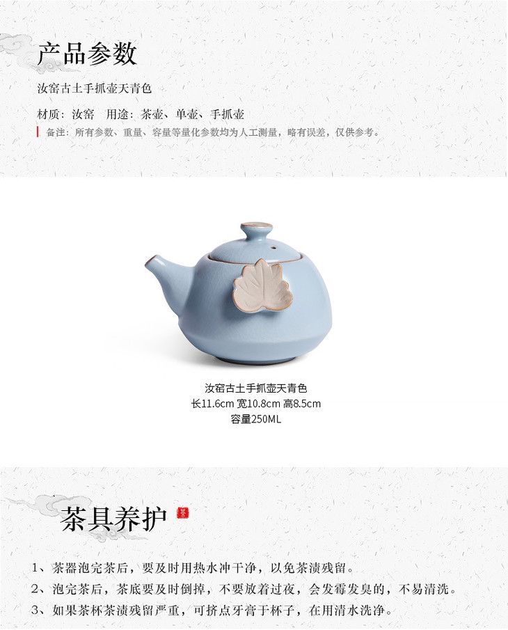 开片汝窑茶壶单壶大号陶瓷过滤家用单个功夫茶手抓壶冰裂创意日式