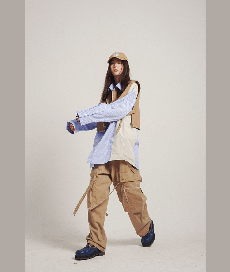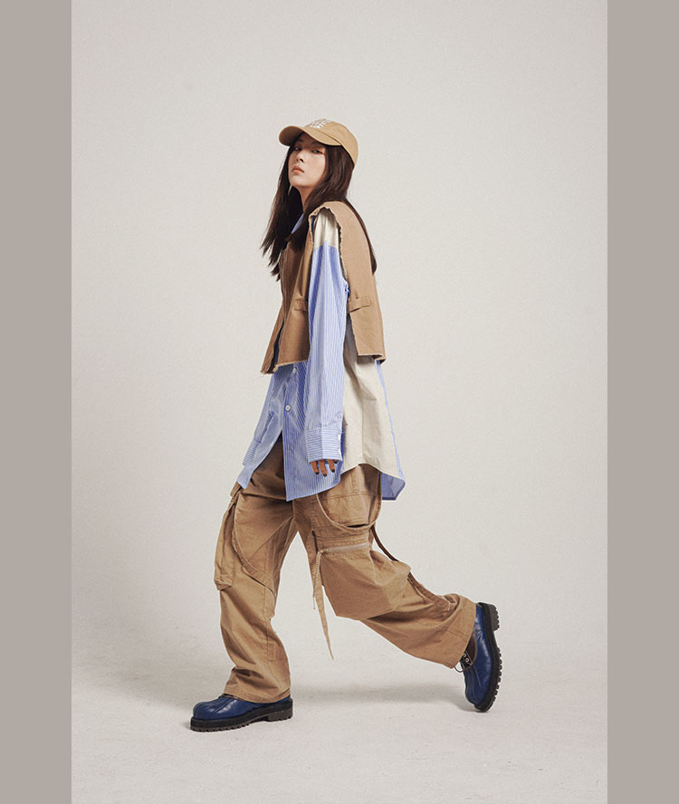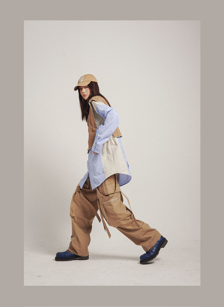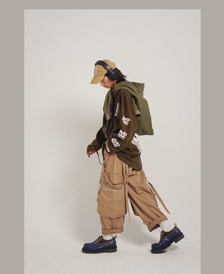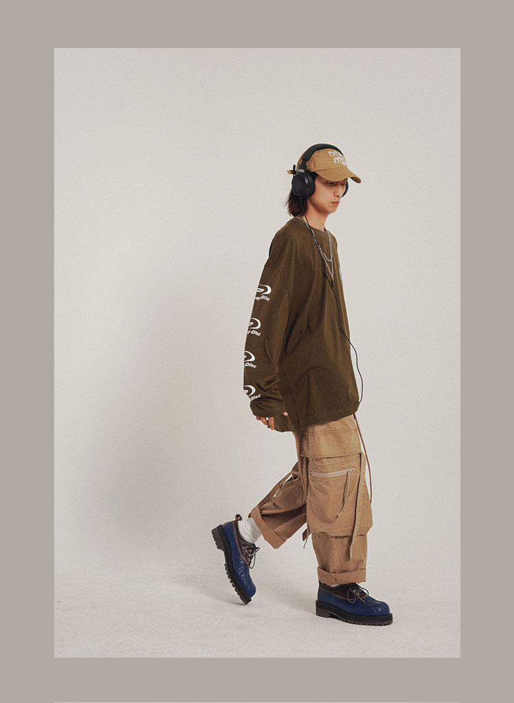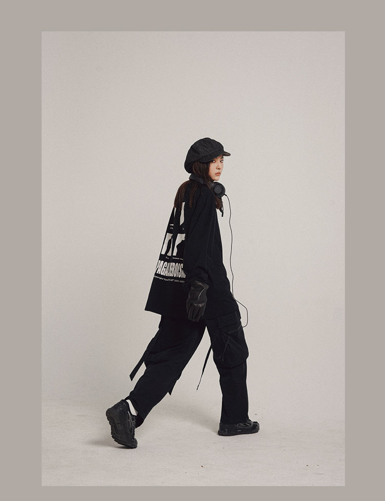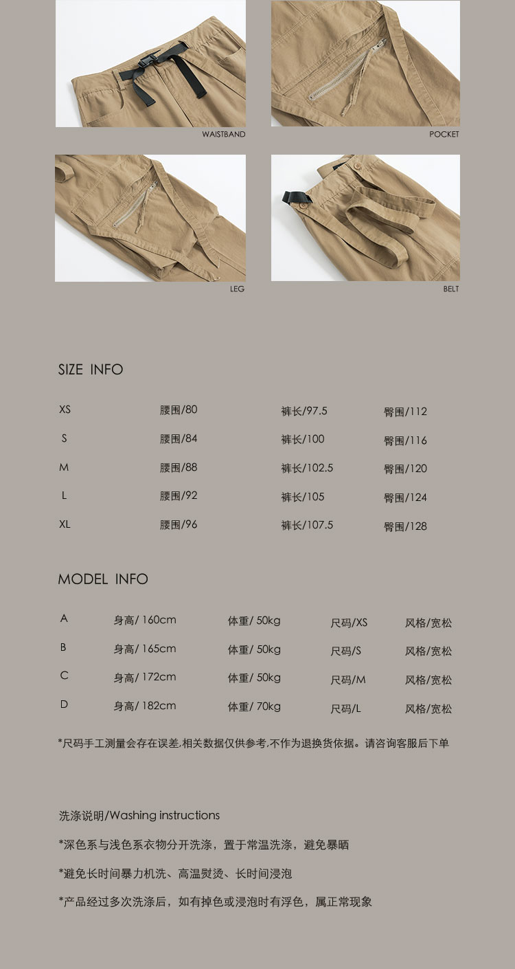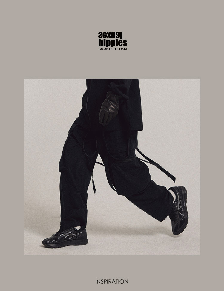 POH 可拆卸裤链飘带宽松多口袋直筒休闲长裤结构飘带工装裤子男装
