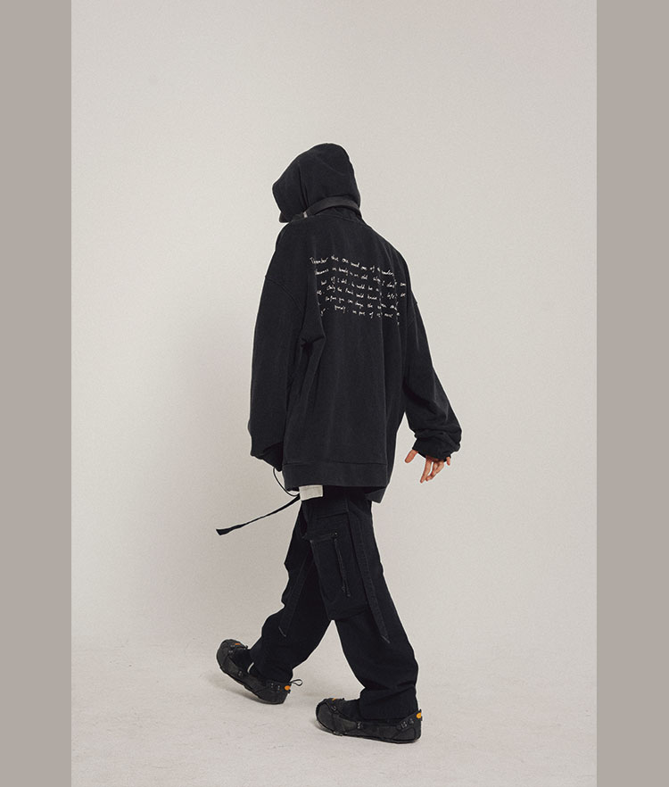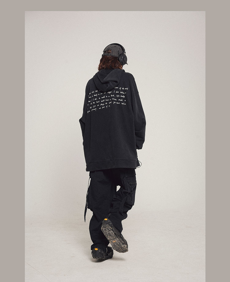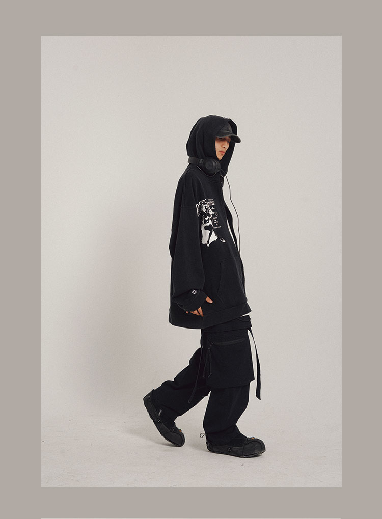 RELABEL 21AW异材质梭织拼接黑灰撞色oversize宽松卫衣外套