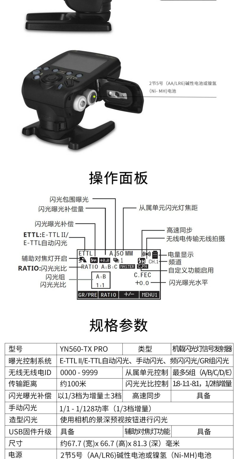 永诺YN560-TX PRO闪光灯无线引闪器,适用于佳能/尼康/索尼微单单反,闪光灯触发器/信号发射器【信号稳,反应敏】