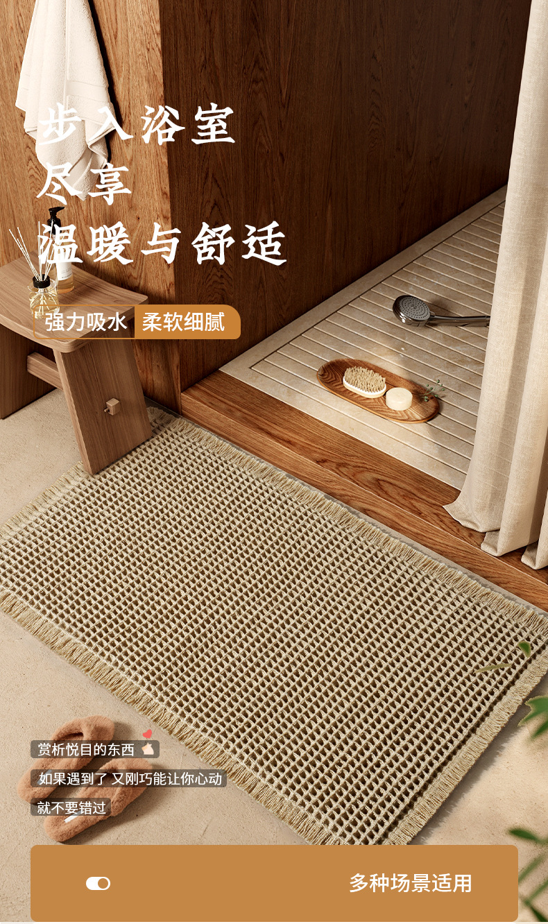 卫生间地垫浴室门口防滑脚垫家用吸水速干垫子厕所地巾卫浴地毯