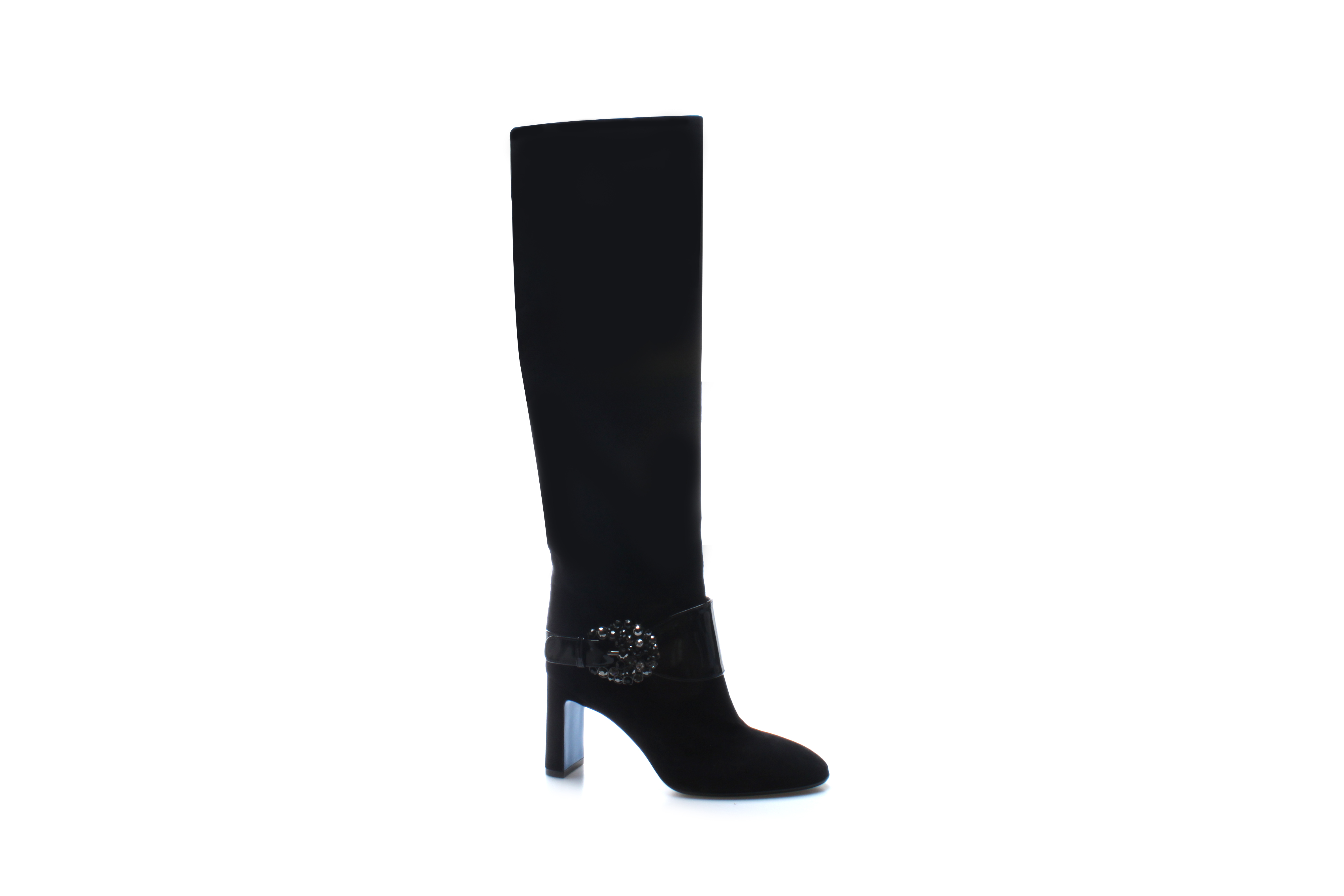 豪麟名鞋奥莱LORIBLU女装羊反绒面革时尚雅致靴LR03300N黑色 原价6600元