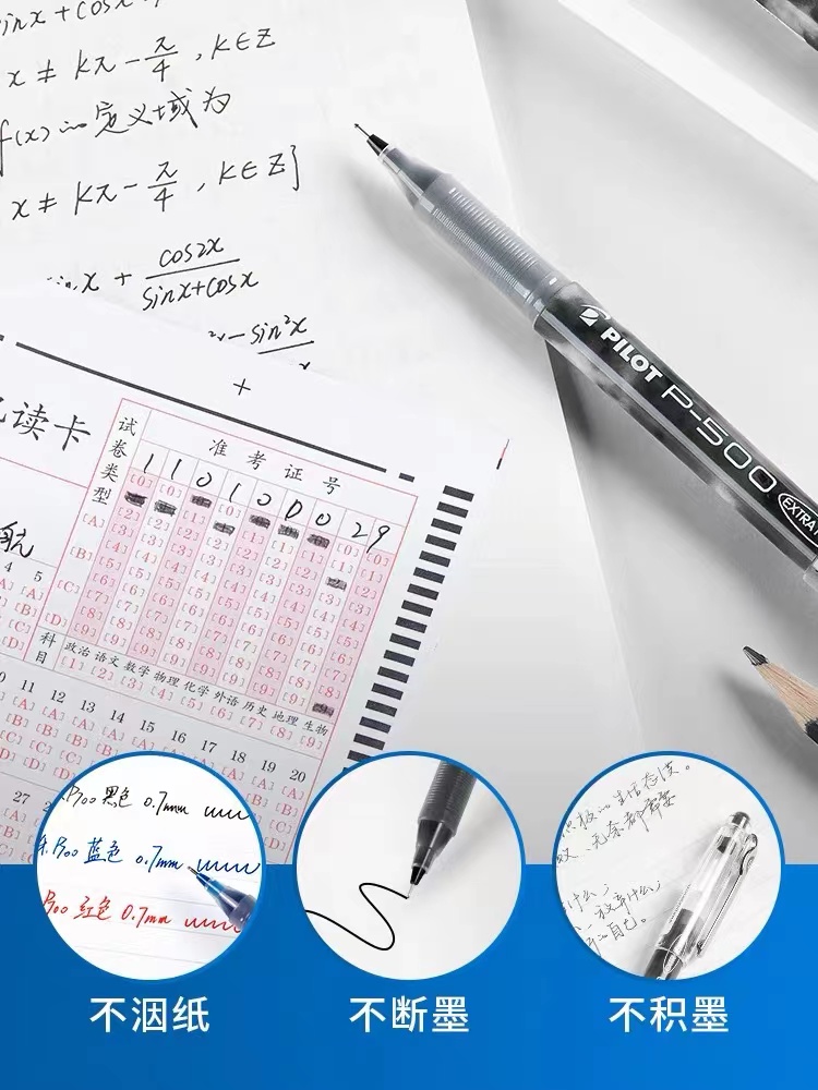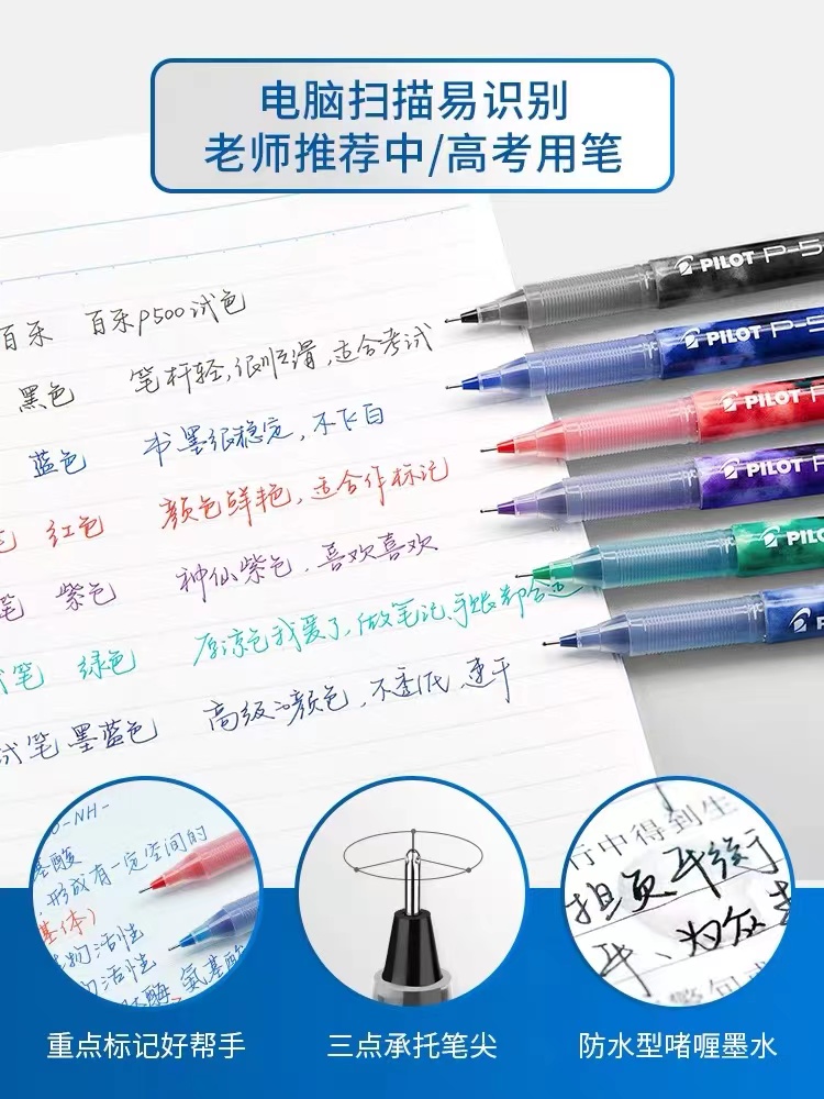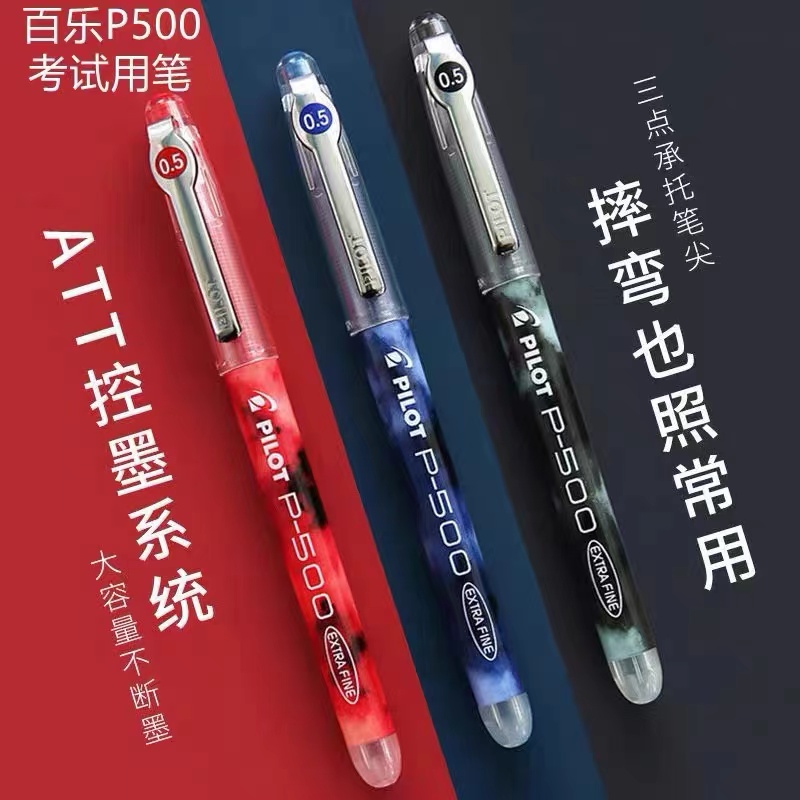 日本pilot百乐P500中性笔大容量全针管速干刷题笔学生考试专用水笔红黑色碳素笔办公签字笔