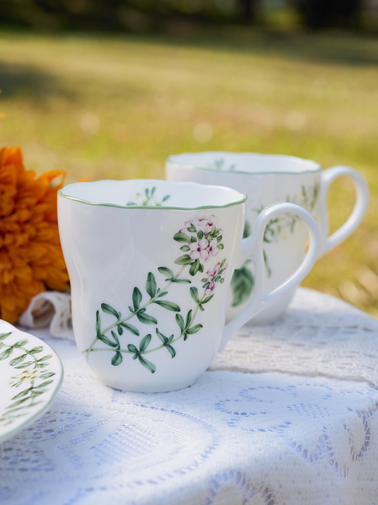 Noritake则武 ENGLISH HERBS骨瓷马克杯欧式牛奶杯家用大容量水杯日本则武English Herbs马克杯375ml