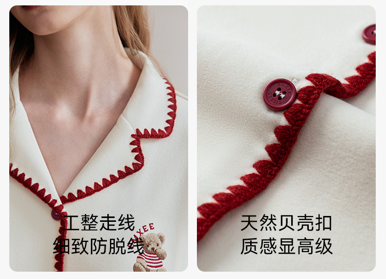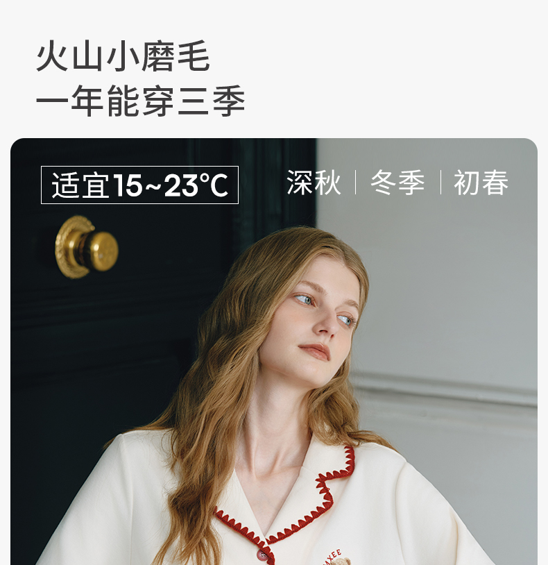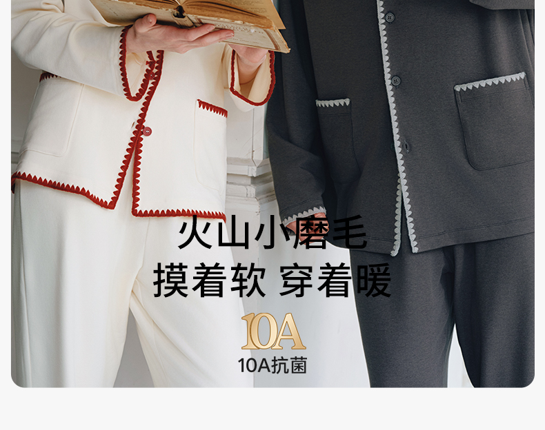 【家居服专场】嫚熙秋冬季双面火山小磨毛女士睡衣情侣纯棉家居服套装2025新款