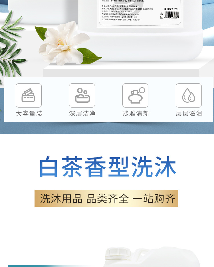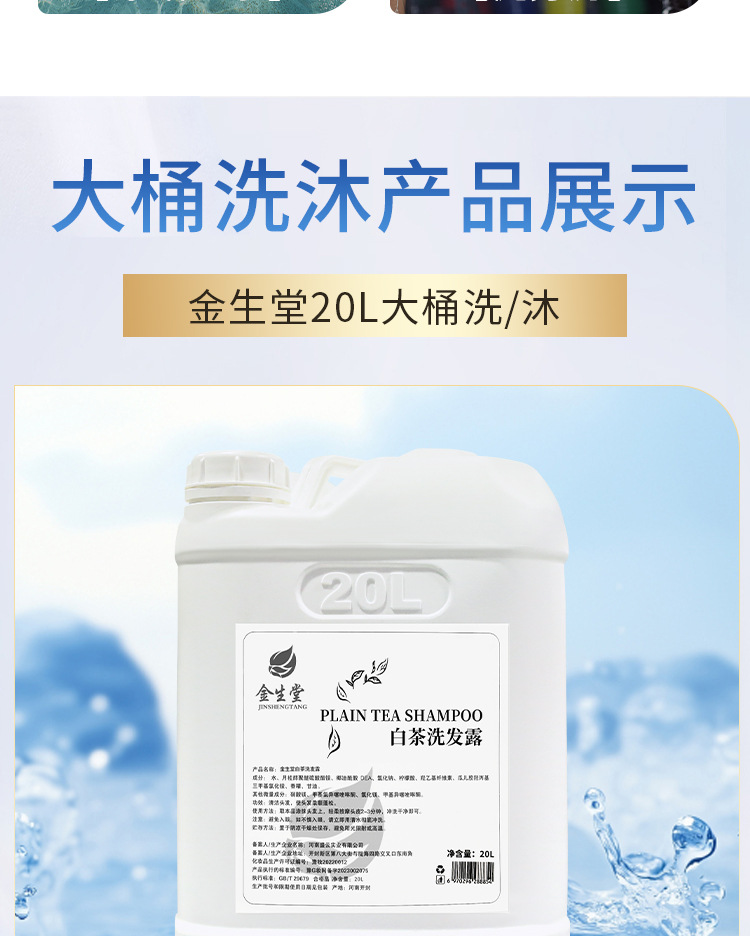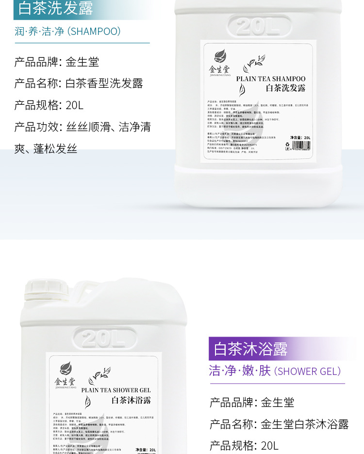 白茶洗发水沐浴露20KG大桶补充液高端宾馆理发酒店浴场消耗品专用