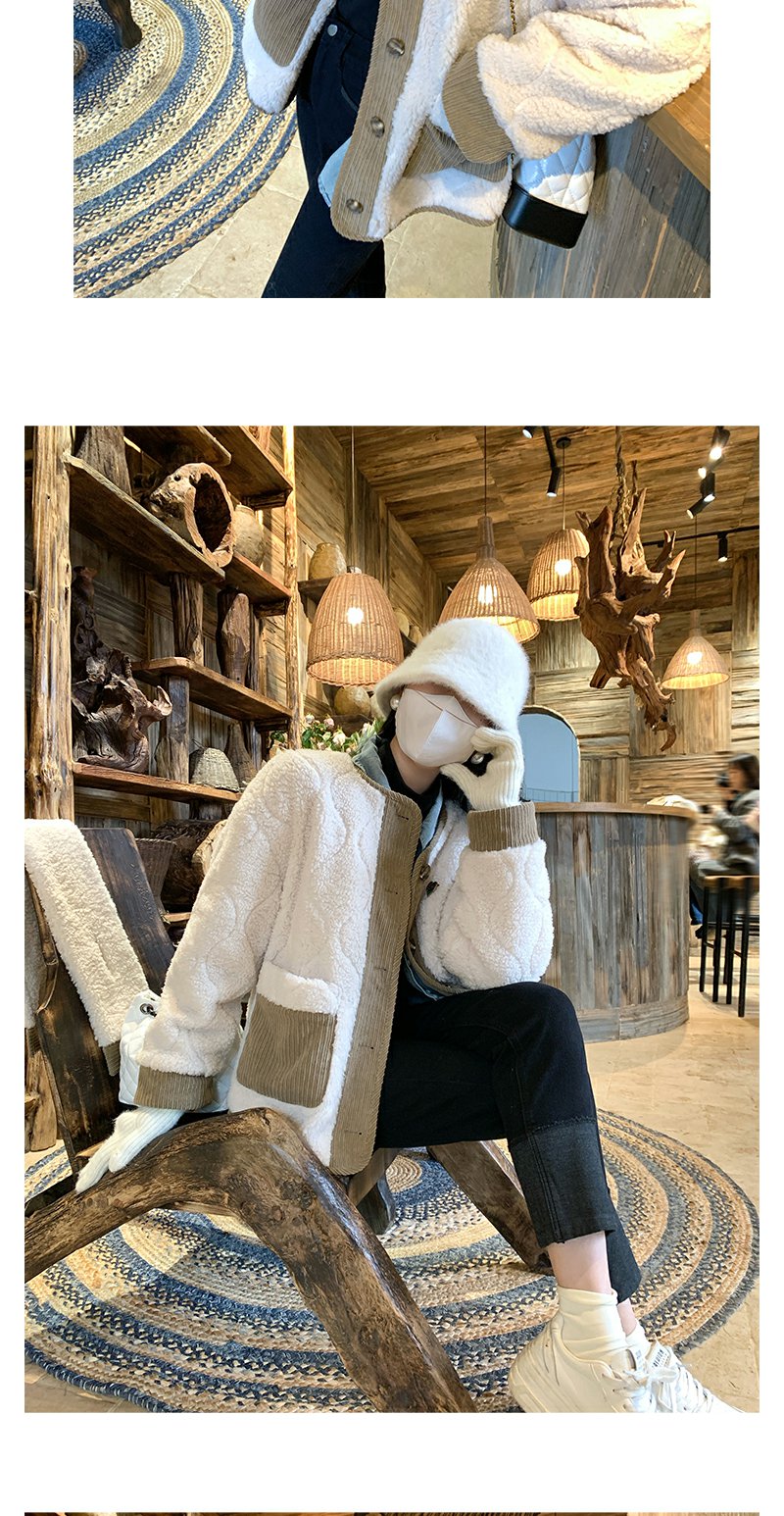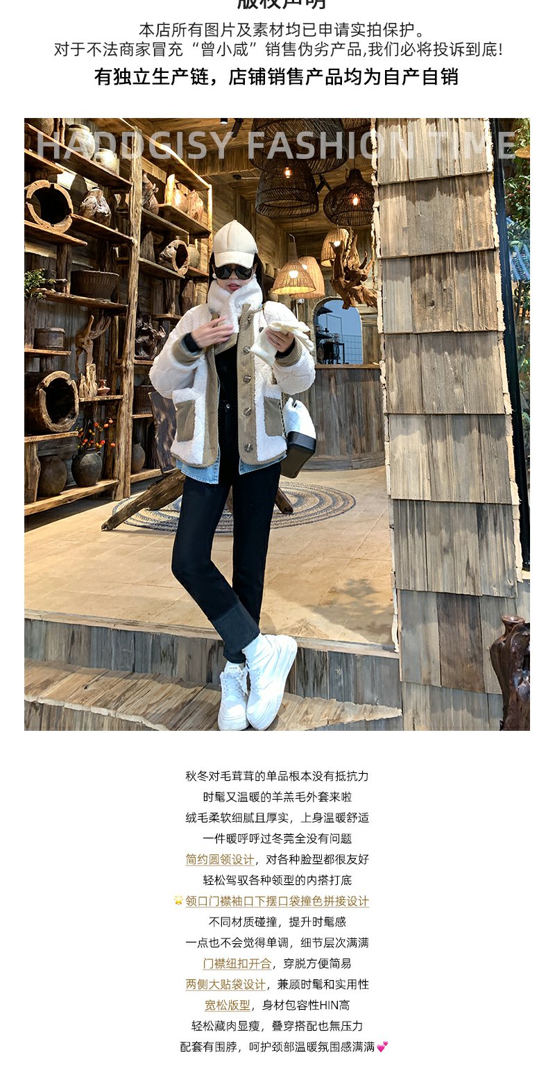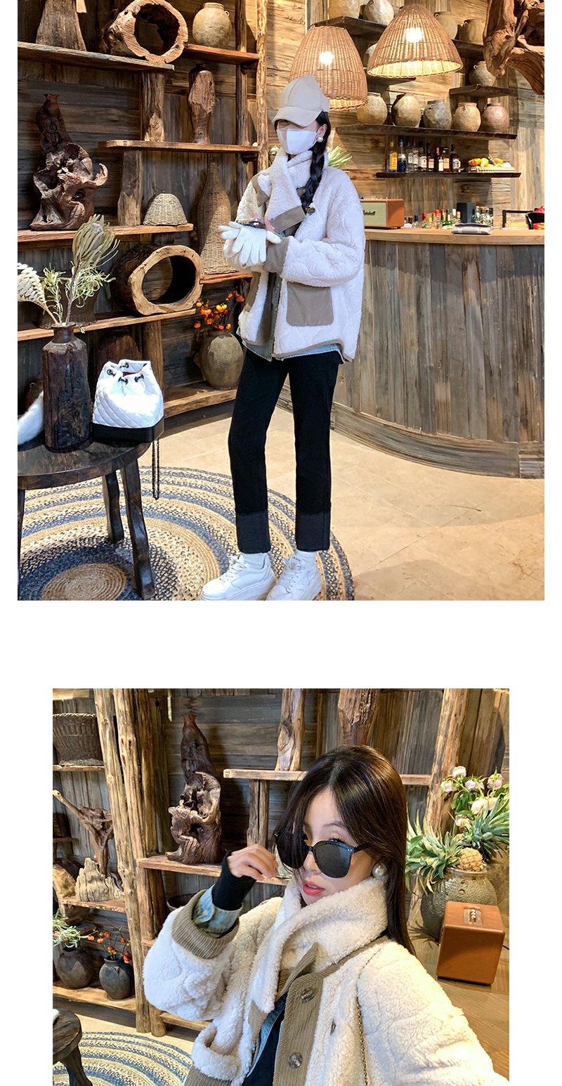 <曾小咸推荐>韩版撞色拼接羊羔毛外套围脖