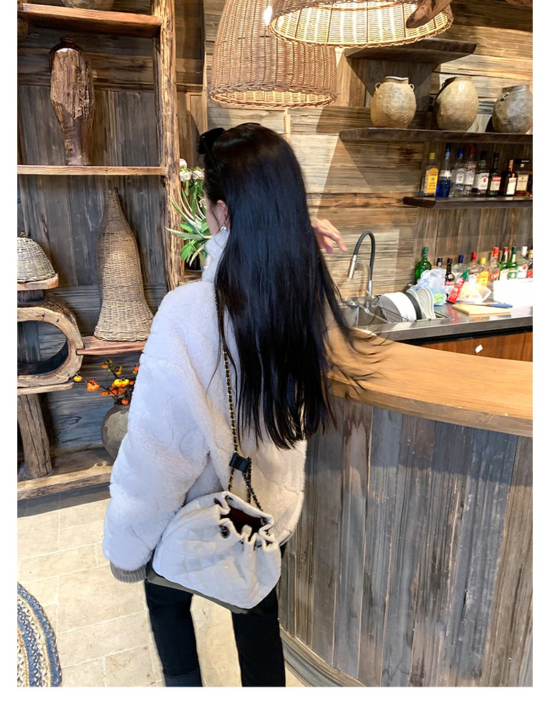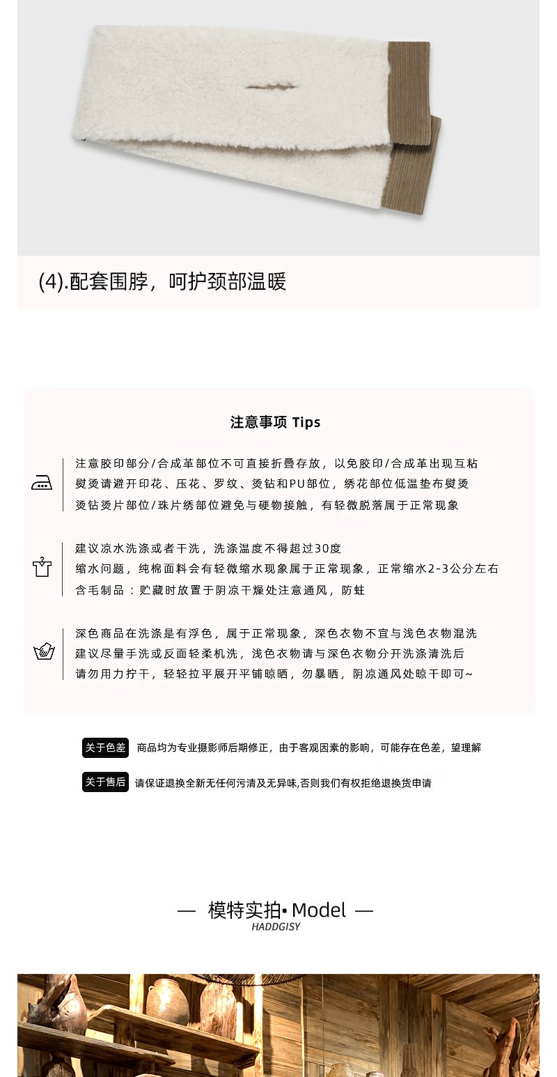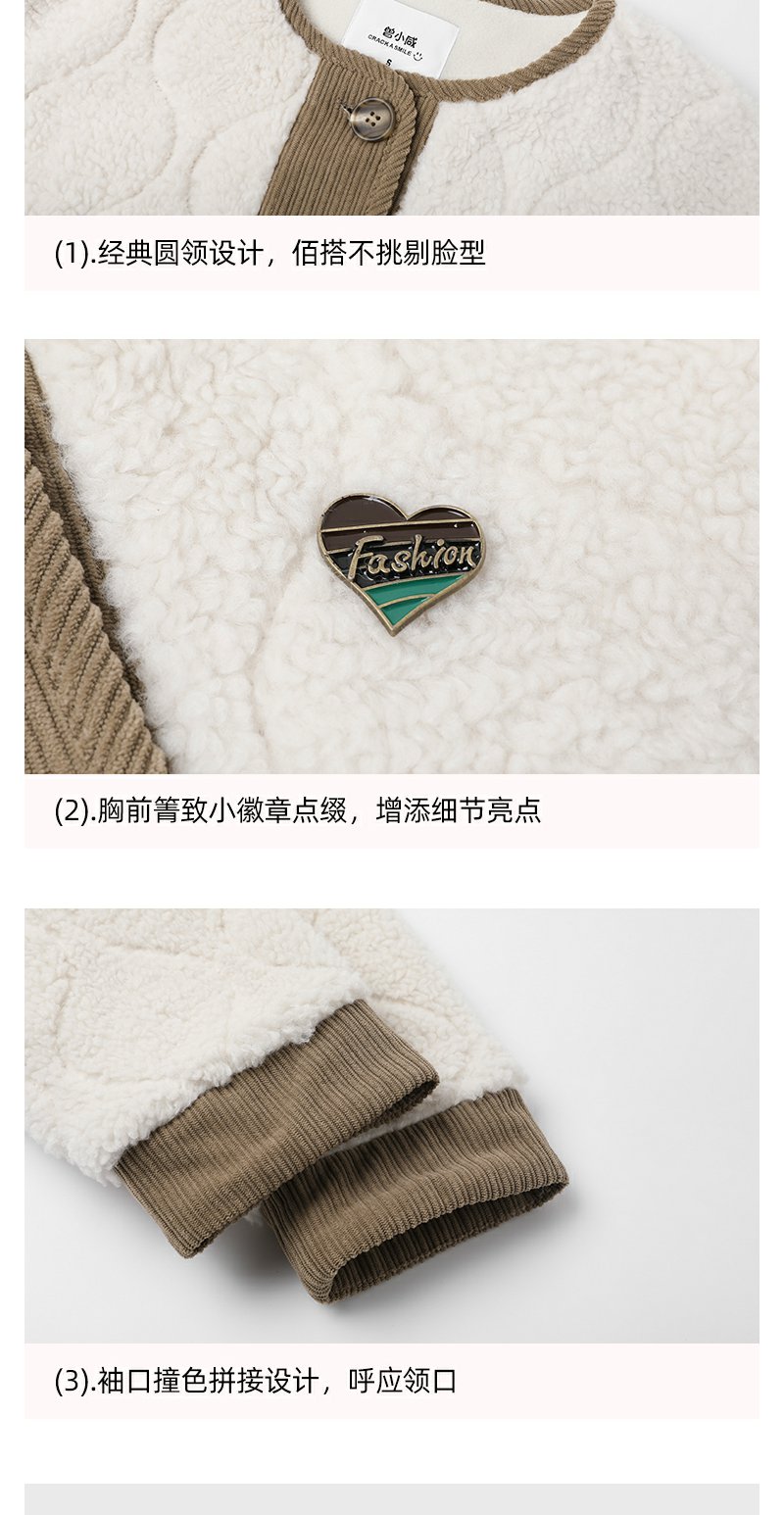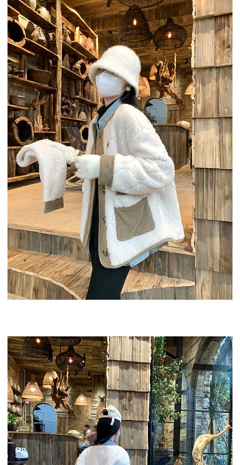 <曾小咸推荐>韩版撞色拼接羊羔毛外套围脖