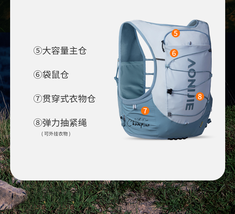 champion系列•越野跑背包10L-浅蓝「送水壶或杖包」