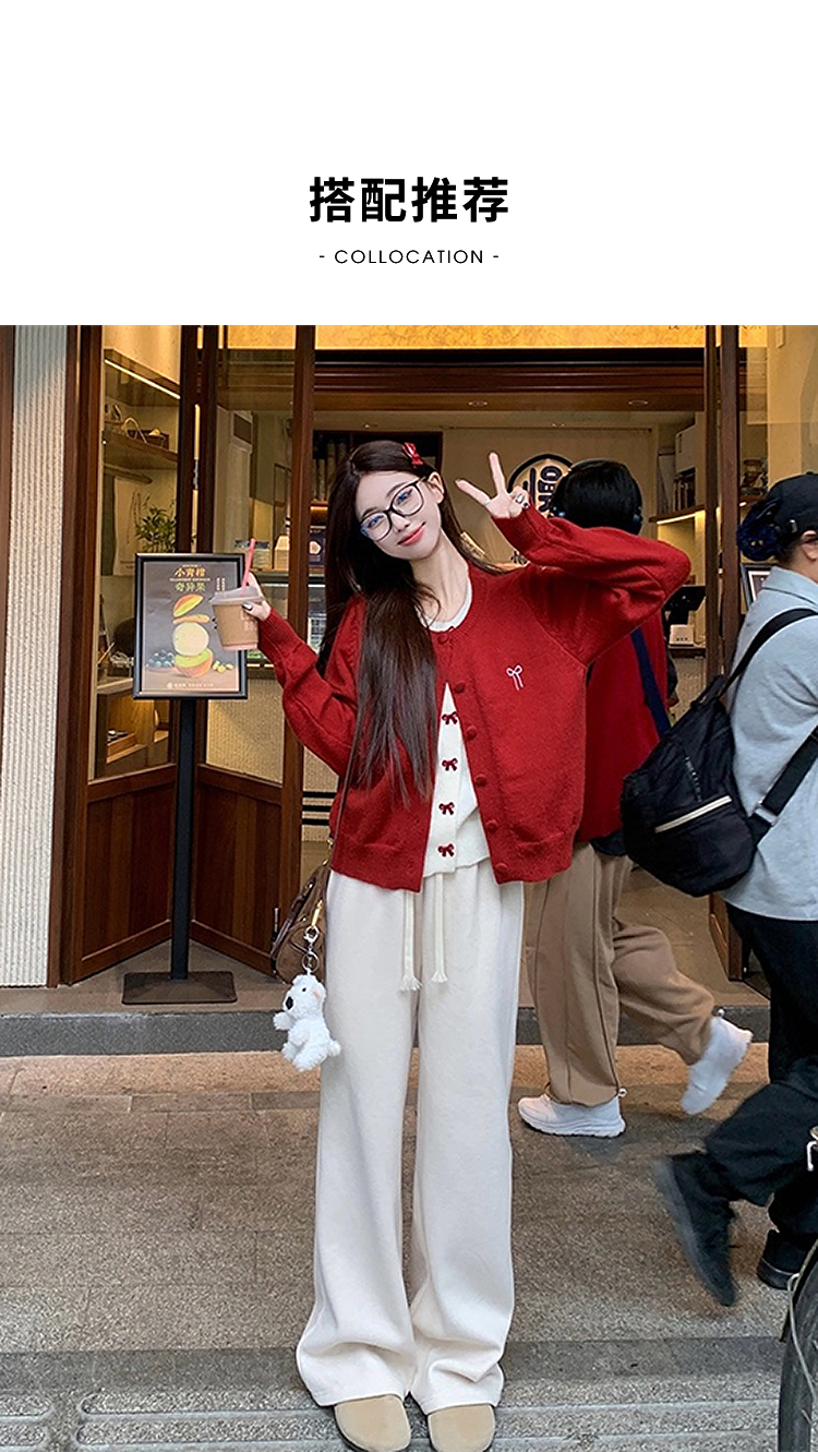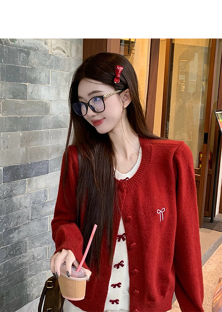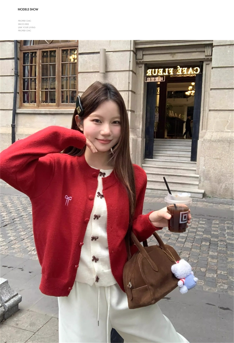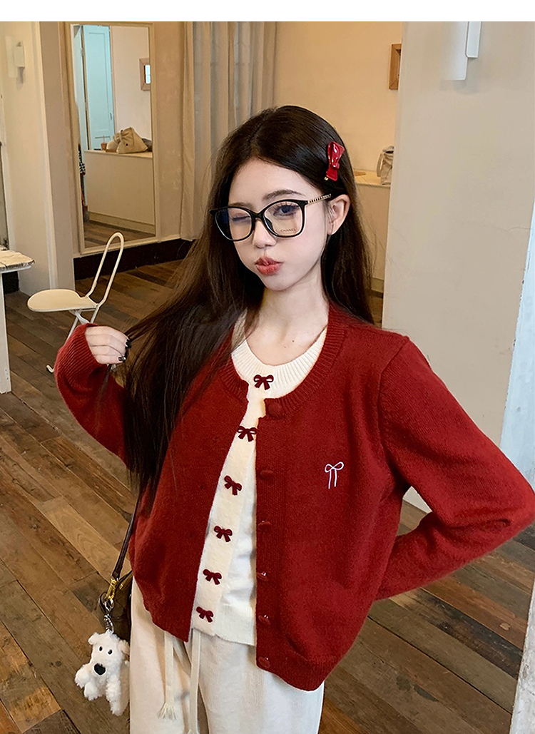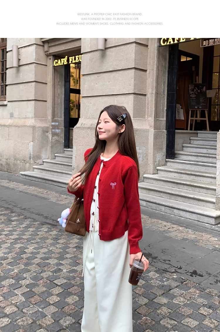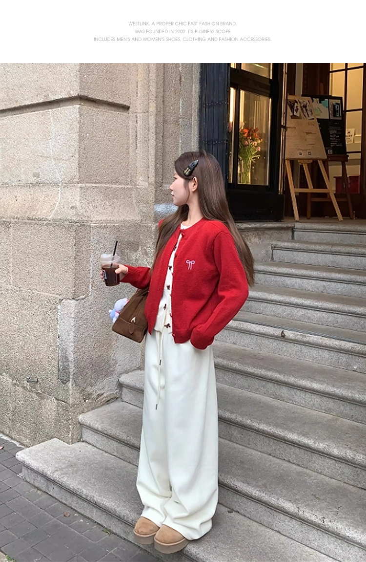 【限时秒杀】西遇假两件红色毛衣女2026春季新韩系设计感蝴蝶结甜美少女感上衣SS060050