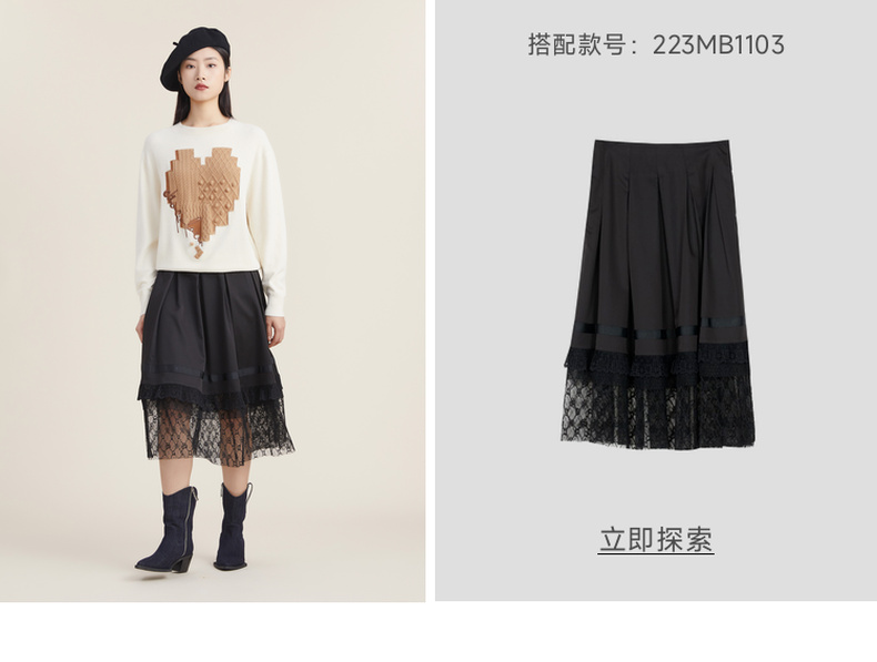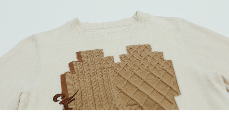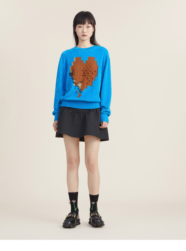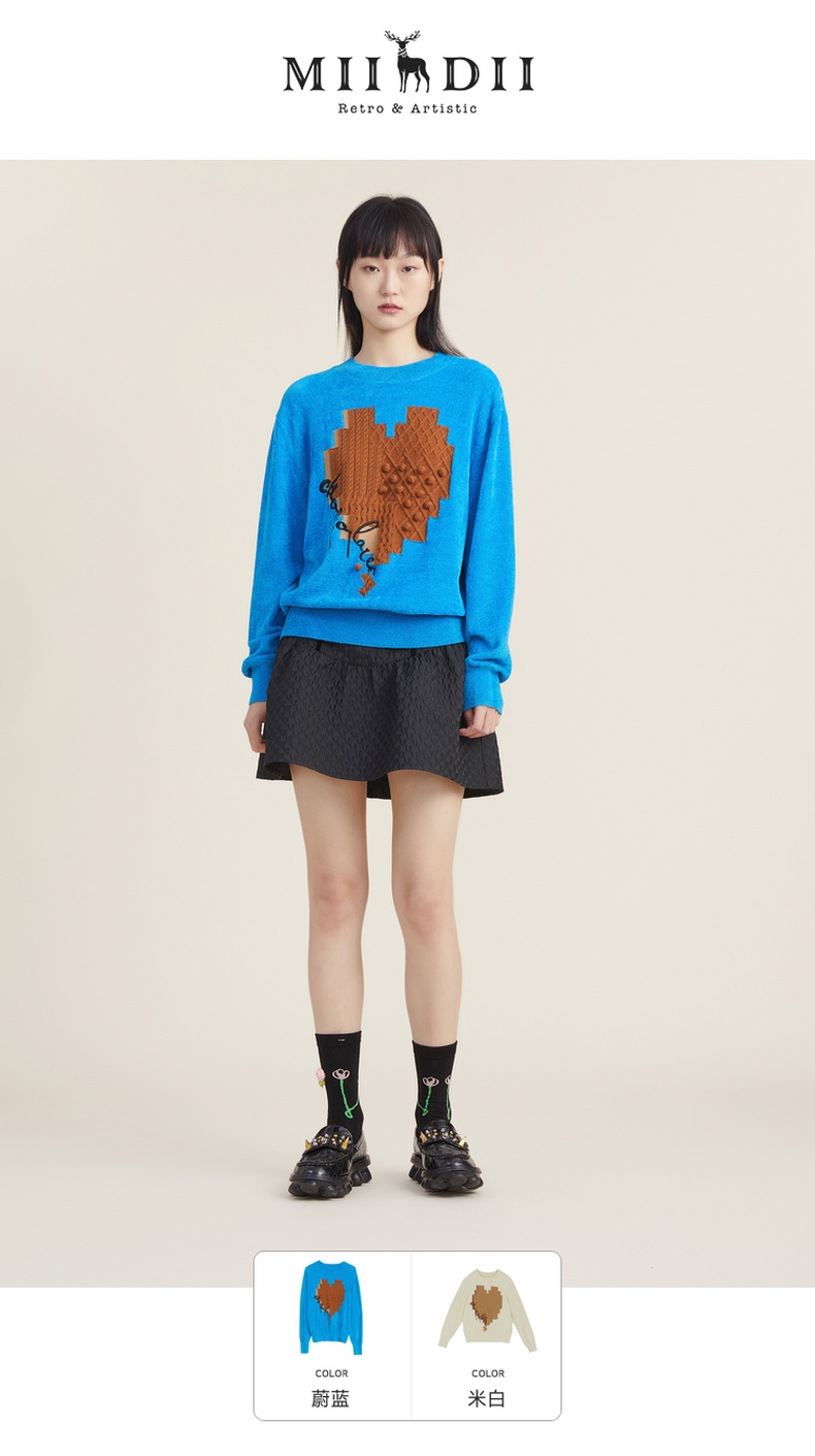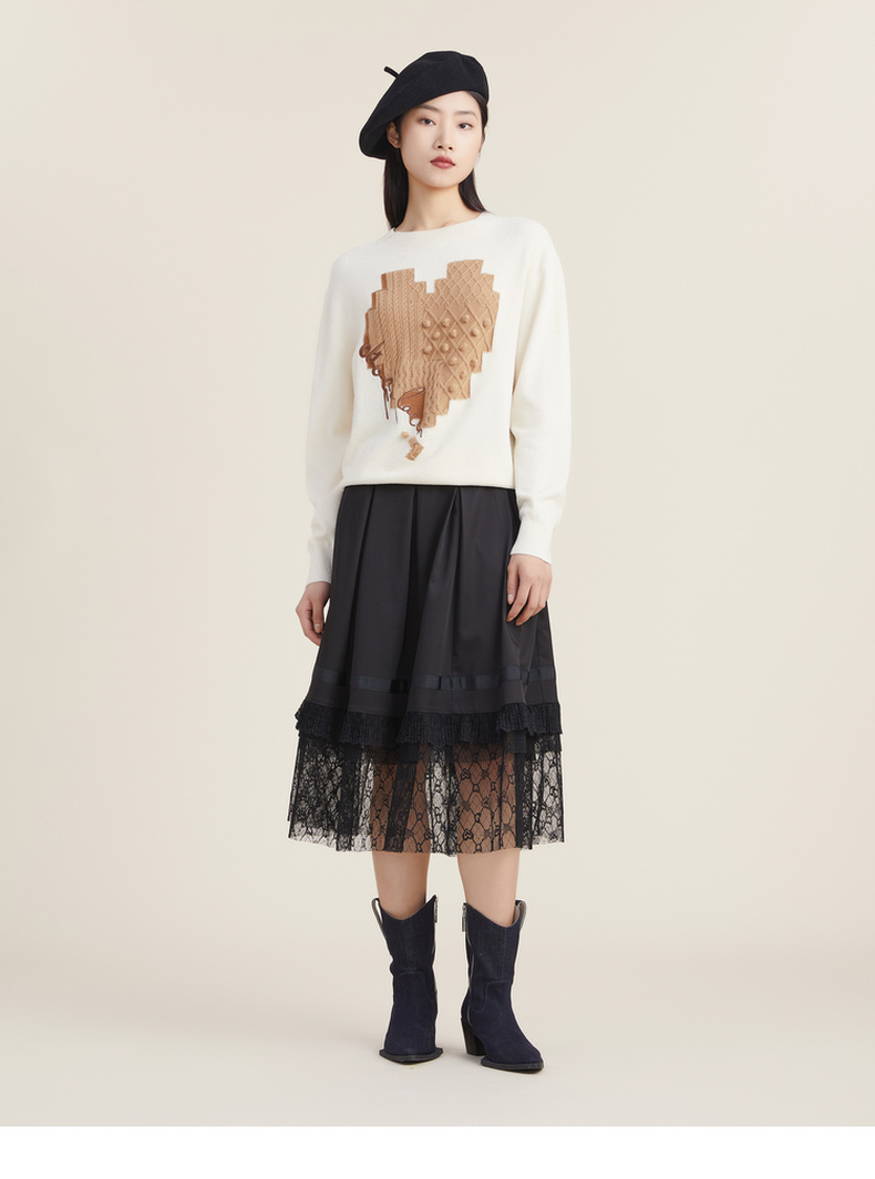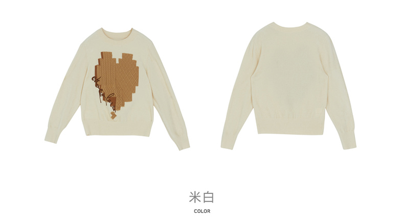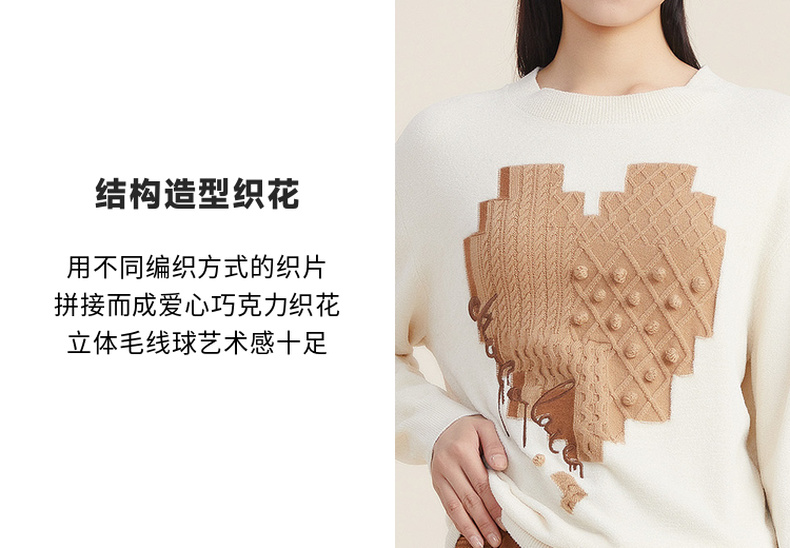 谜底套头针织衫女2022秋新款柔软舒适爱心织花圆领毛衣223MZ1382