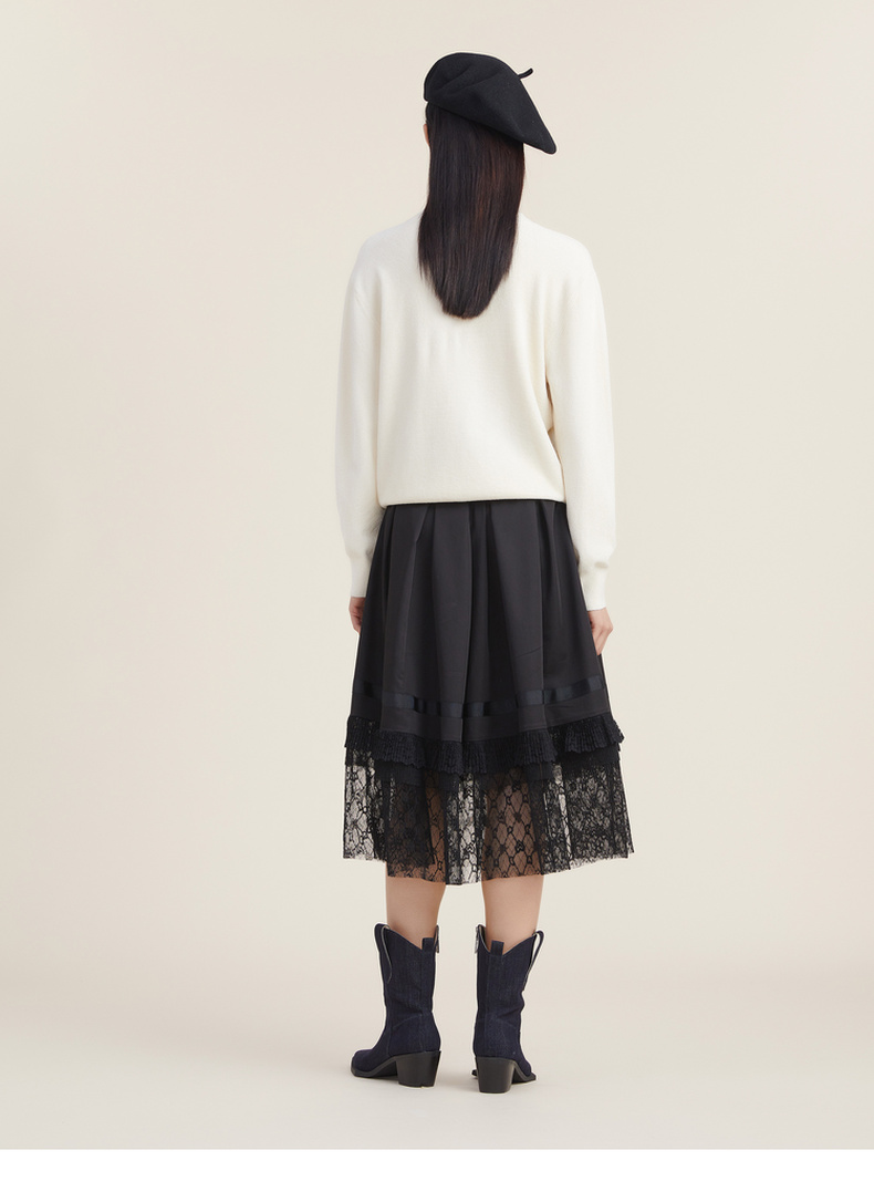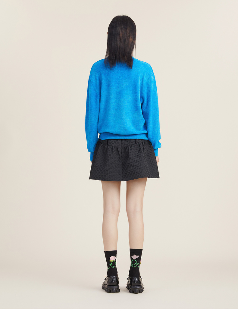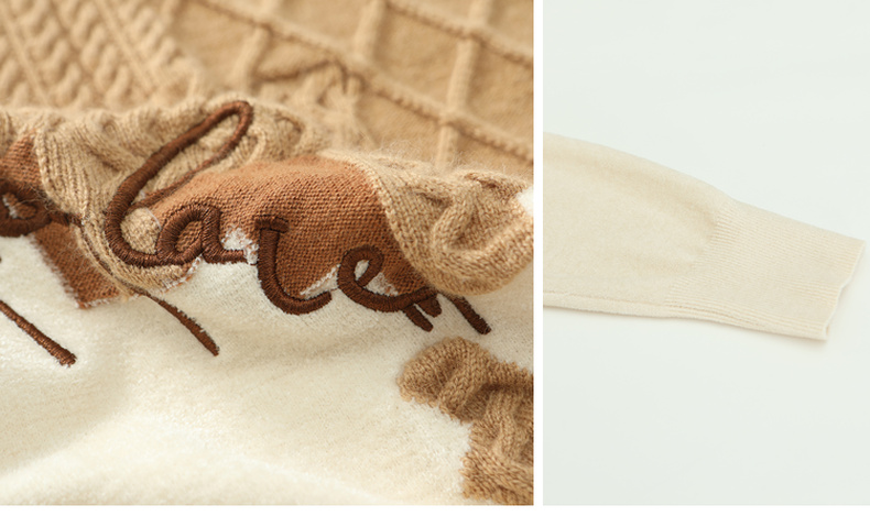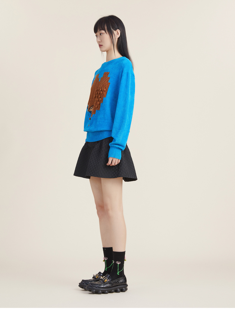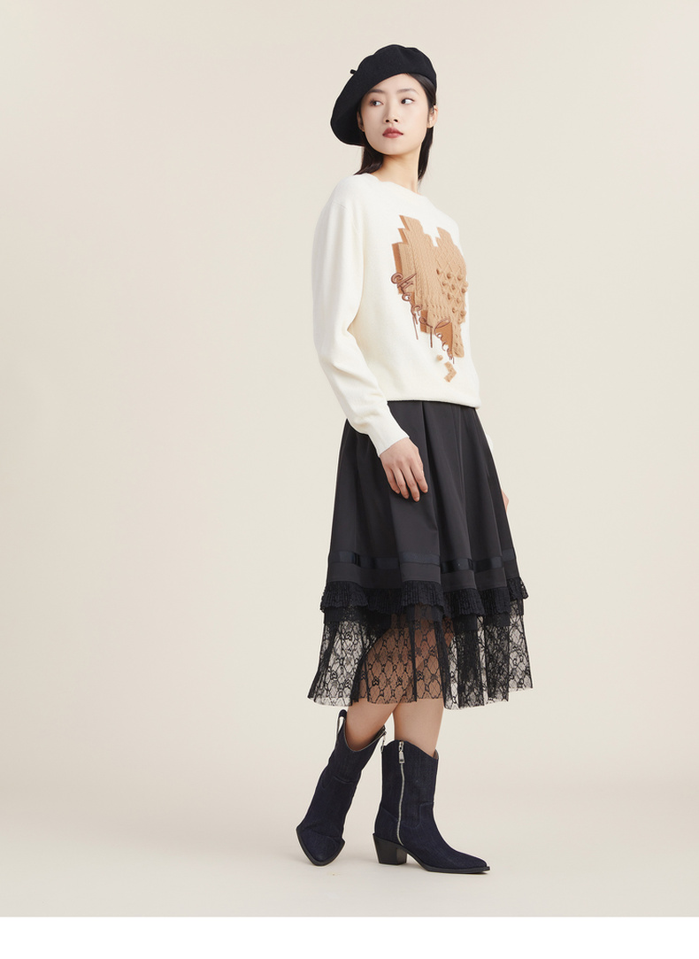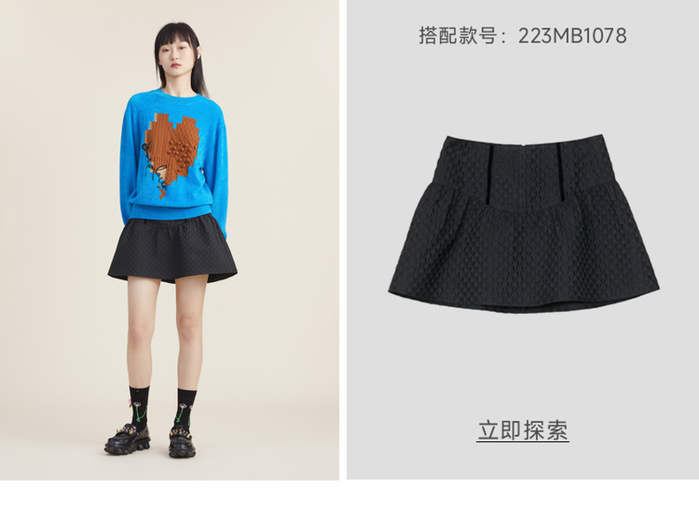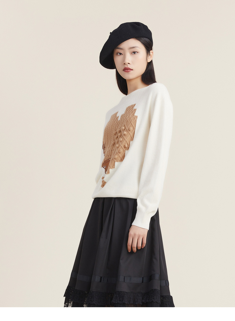 谜底套头针织衫女2022秋新款柔软舒适爱心织花圆领毛衣223MZ1382