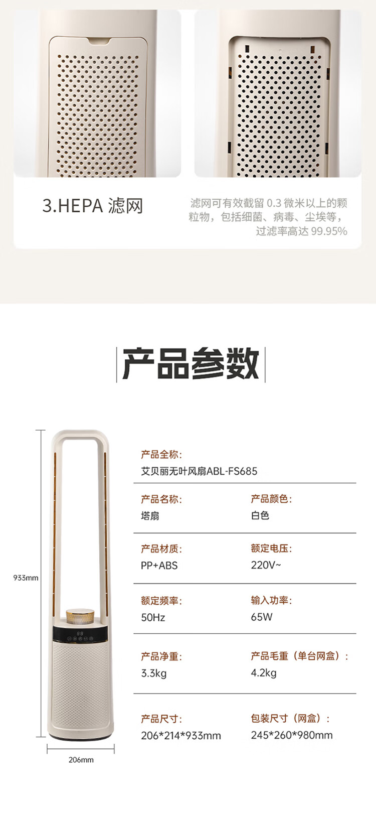 【小家电】艾贝丽无叶风扇 ABL-FS685 HF