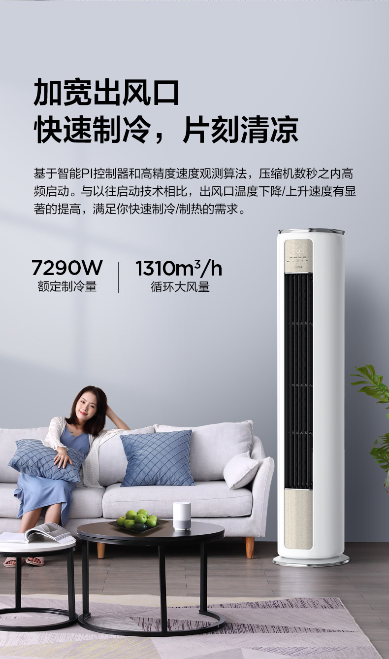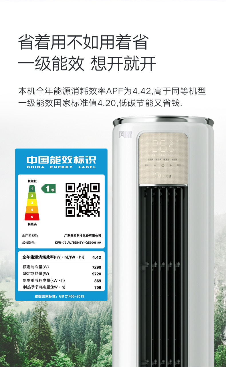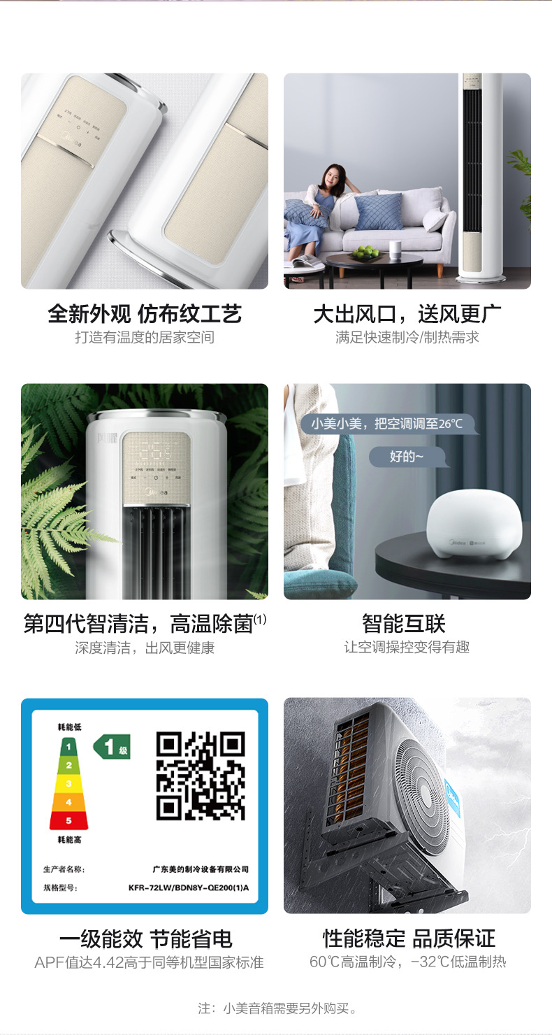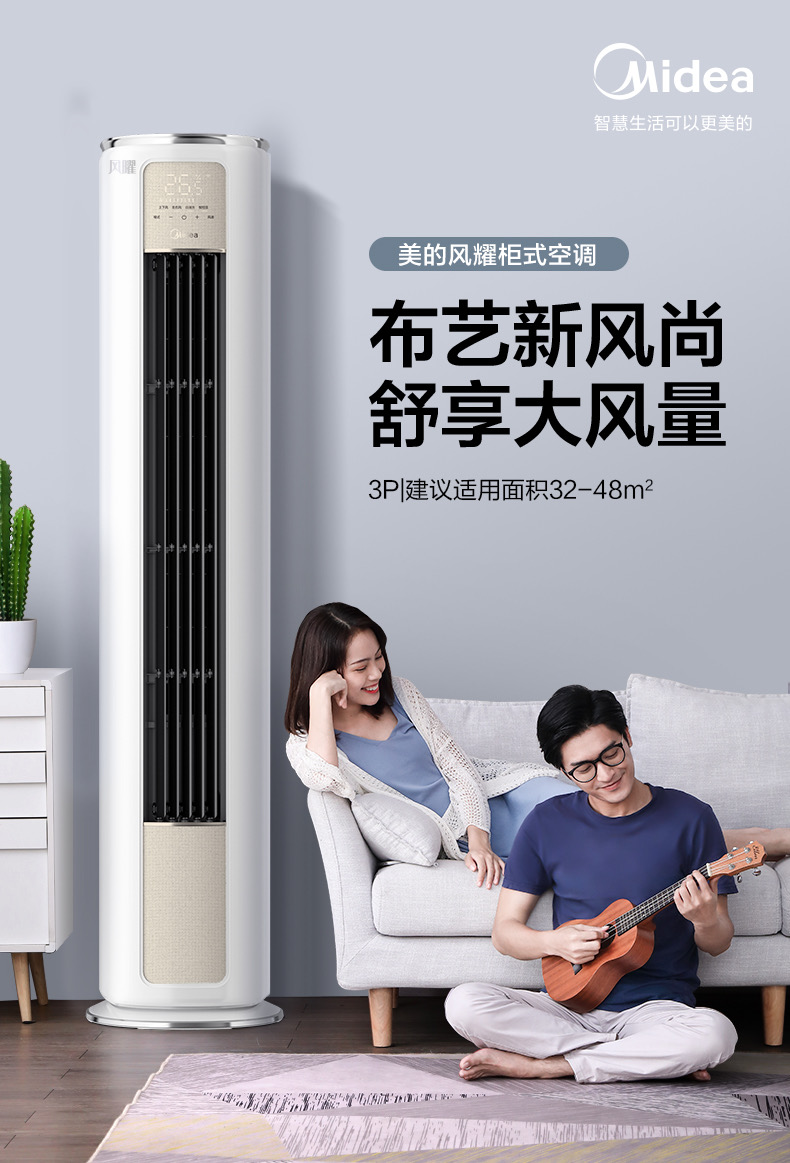 美的风耀3匹立式空调柜机大风口送风KFR-72LW/BDN8Y-QE200(1)A 新一级能效变频节能柜机套机 浅杏 美的