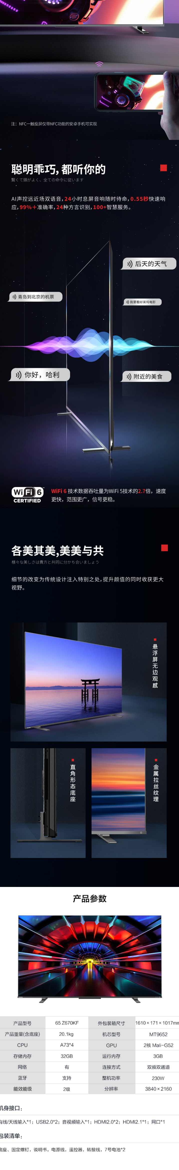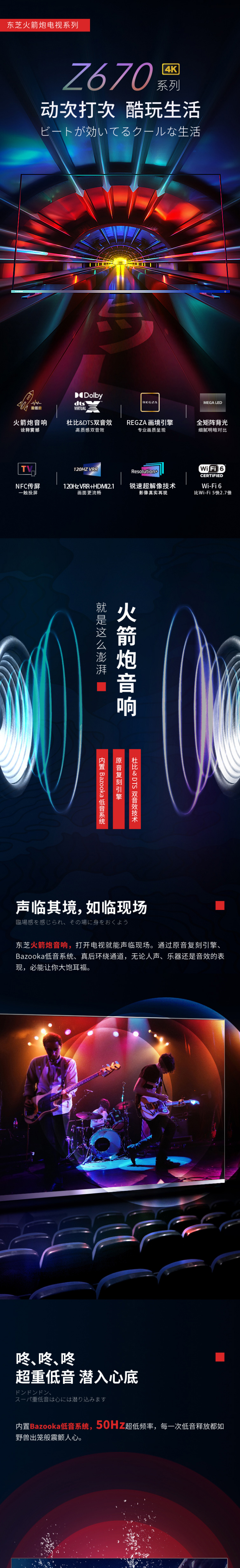 东芝(TOSHIBA)65Z670KF 65英寸游戏电视 火箭炮音响 120Hz全面屏HDMI2.1超高清智能远场语音平板电视机
