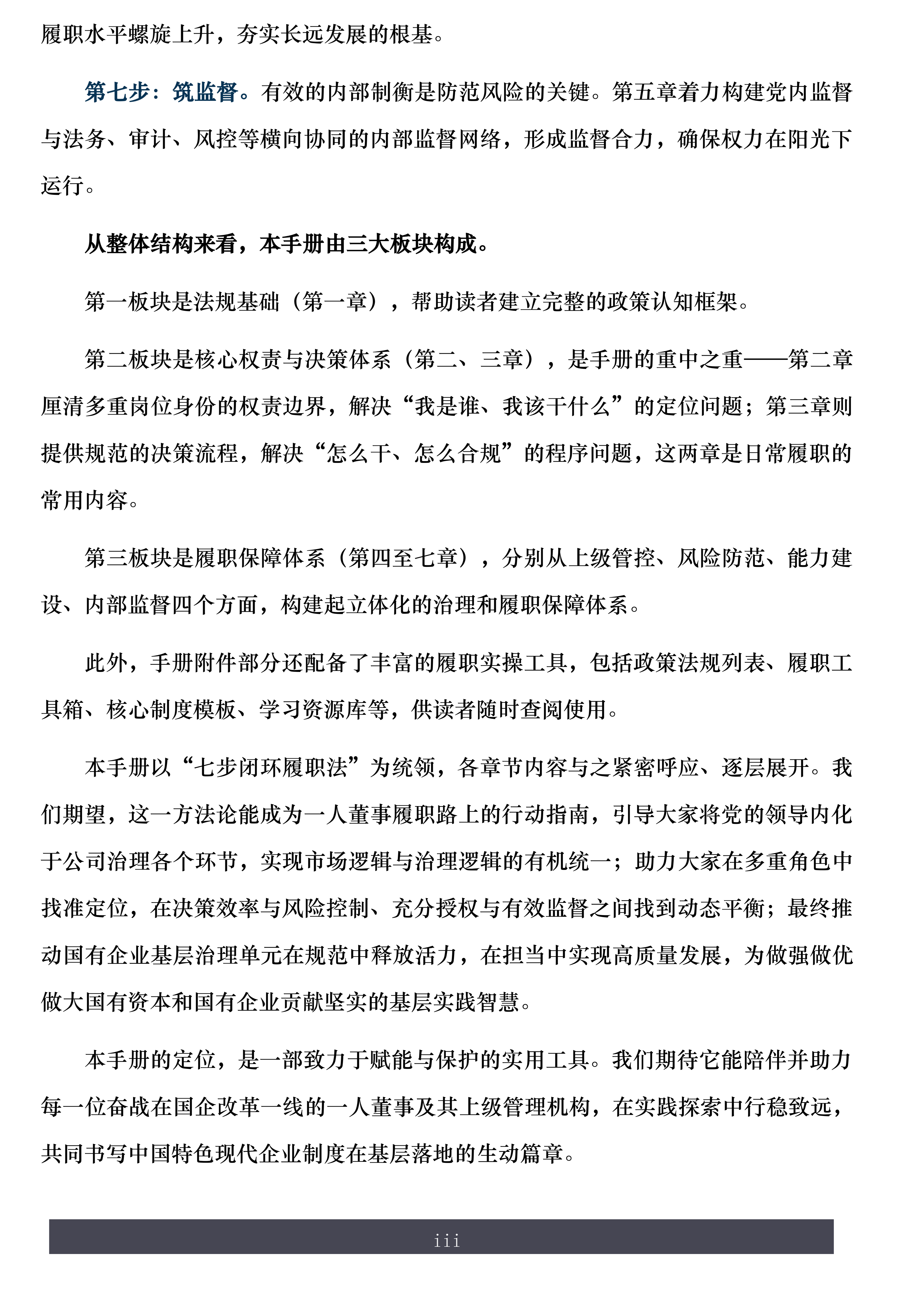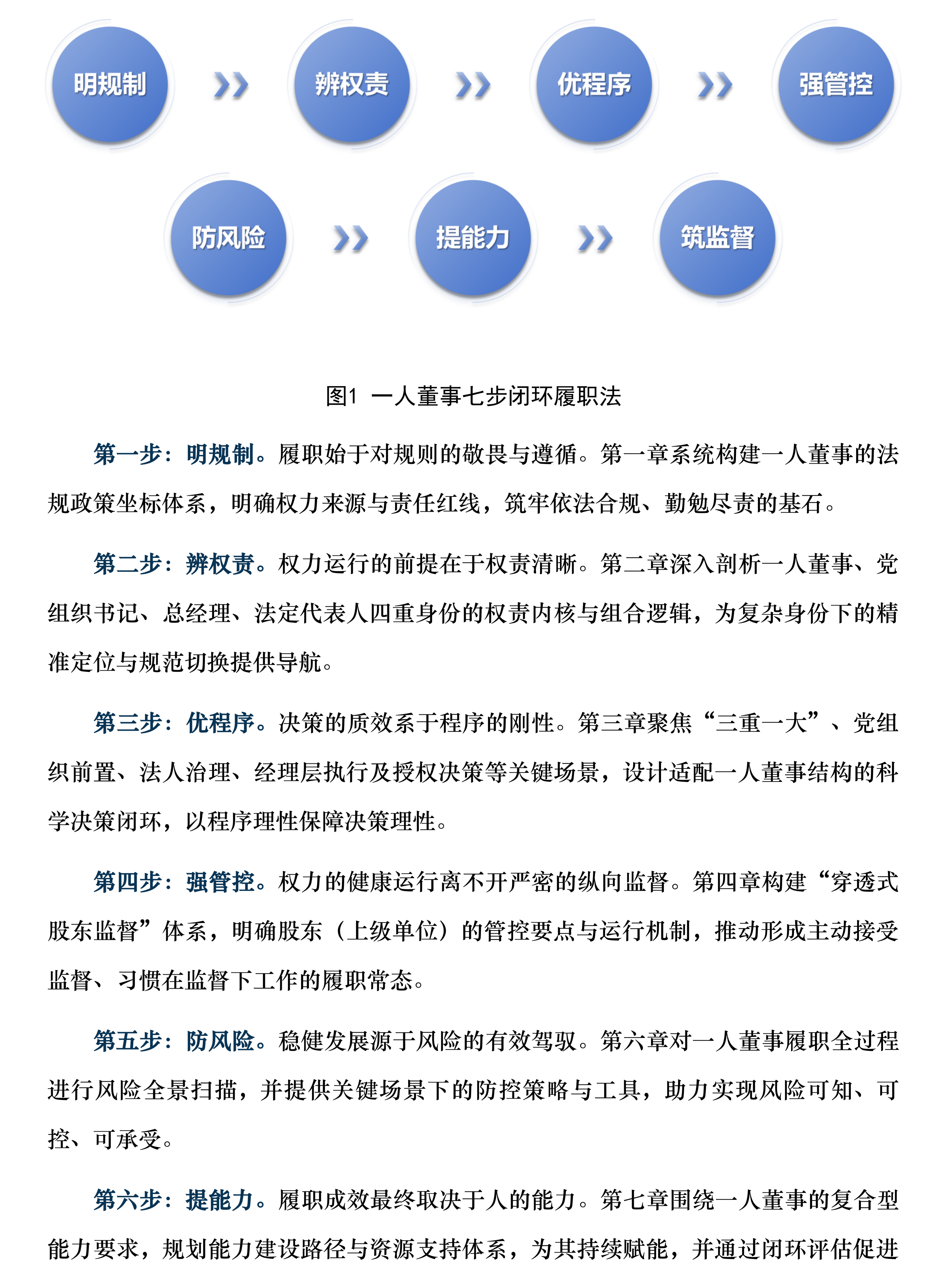 第六章:推荐给所有追求进步的一人董事,以及负责干部培养的组织人事部门——可以先对照胜任力模型做个自我评估,找到自己的短板。然后,从对应的“实践性提升措施”里挑一两件小事,列入自己的工作计划,在履职中一点点改进。