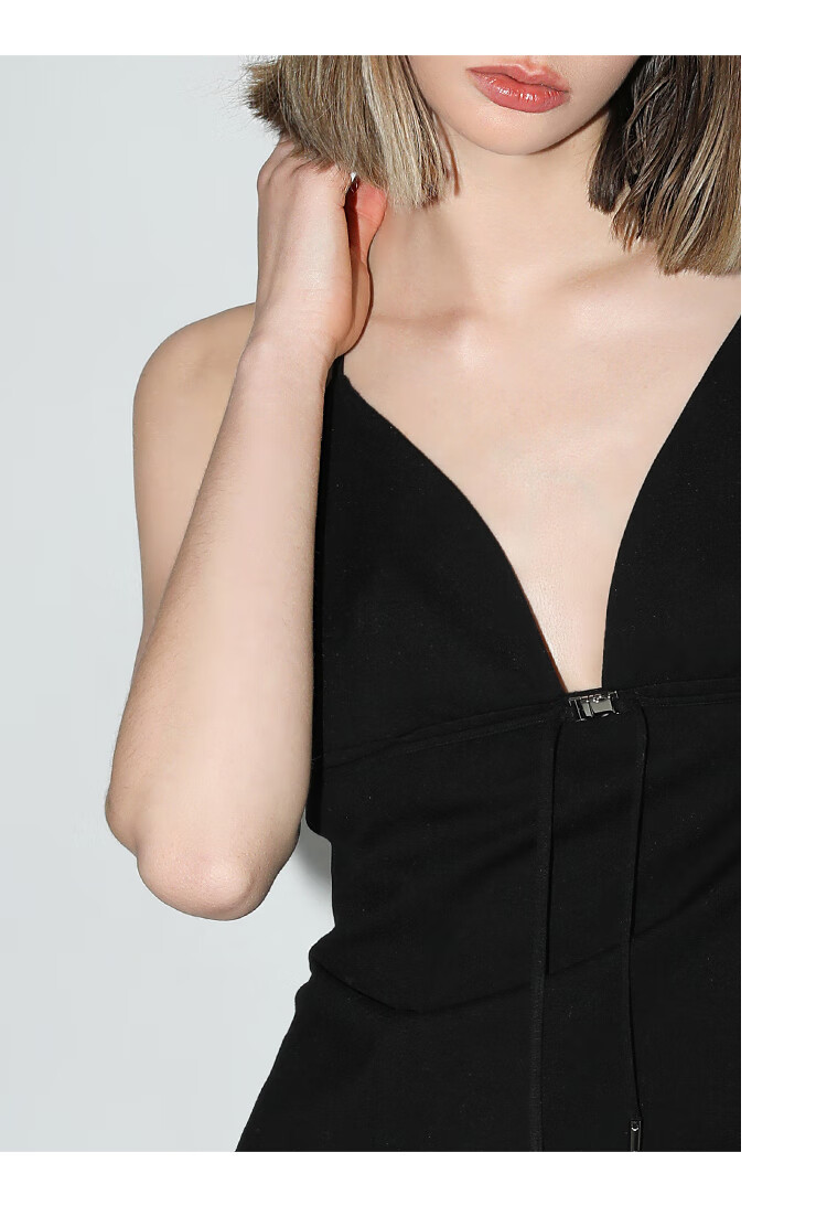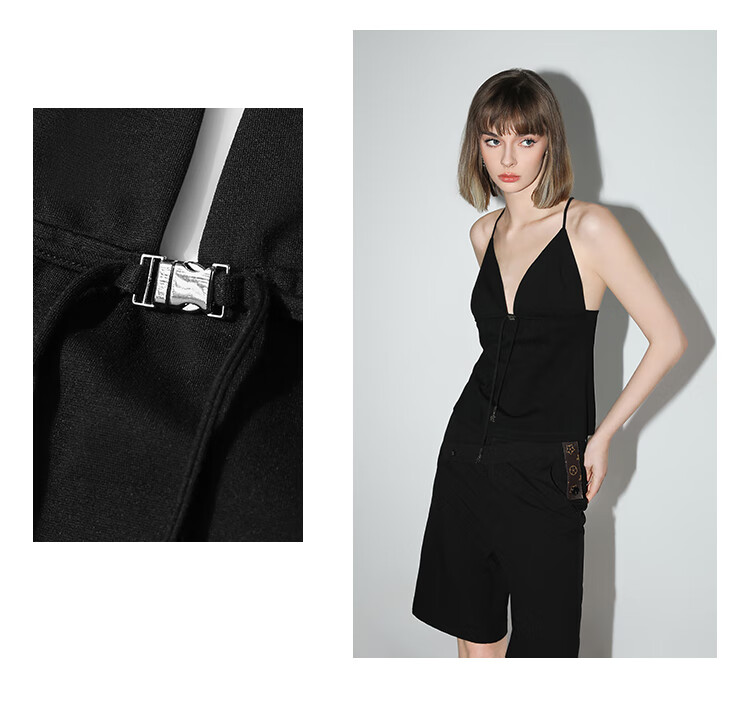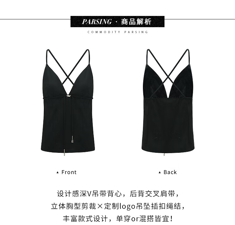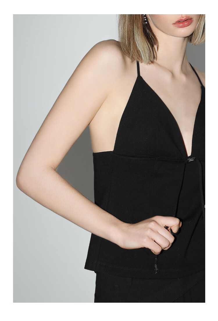 COCOBELLA简约深V领弹力针织外穿吊带混搭吊坠飘带背心VT0008