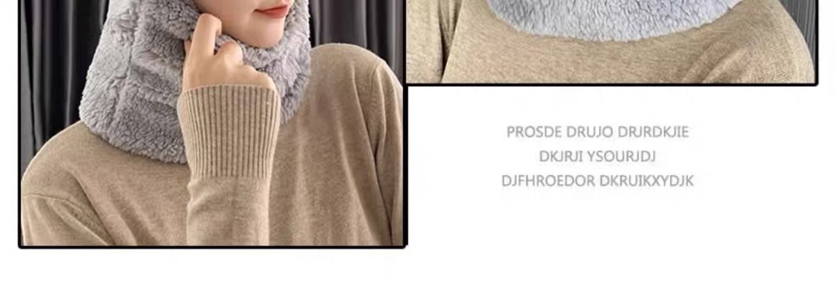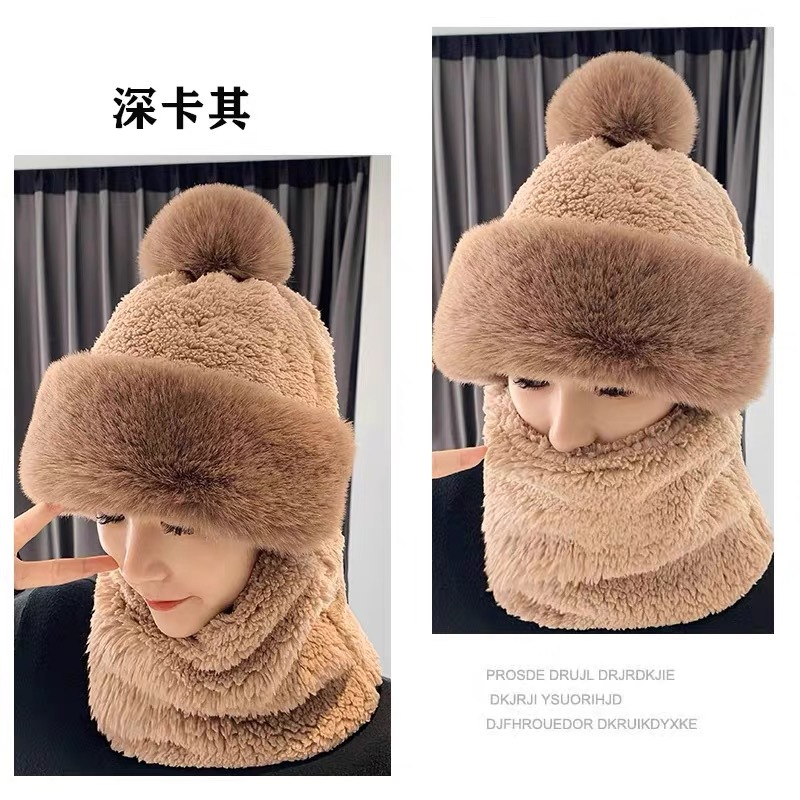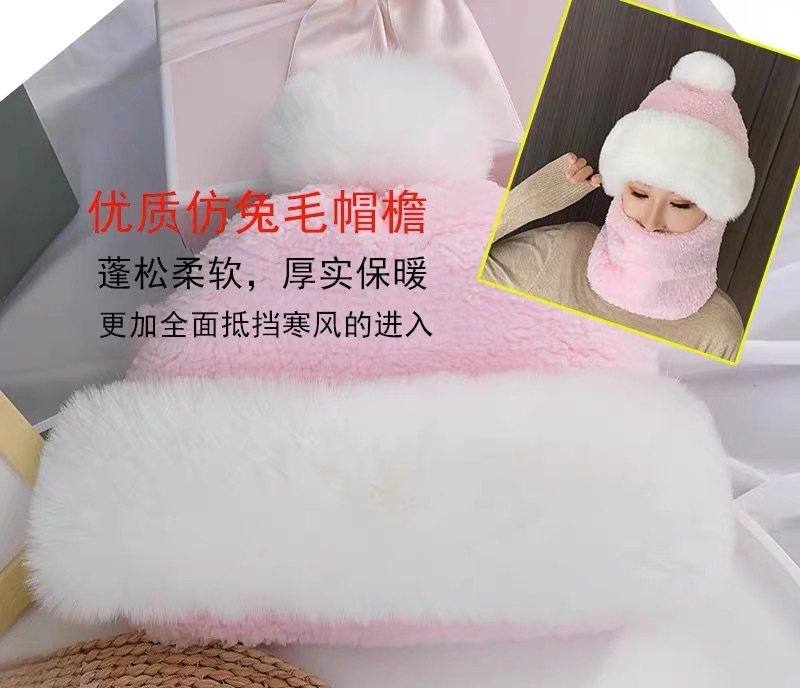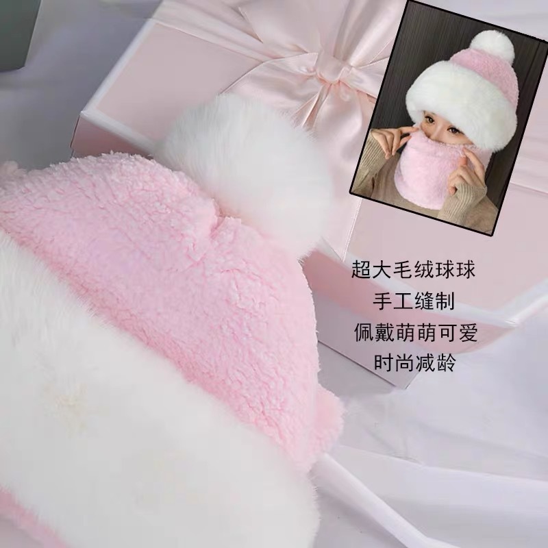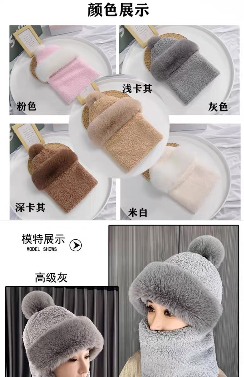 「五色可选!一体帽」2023新款一体帽子女围脖口罩加绒加厚保暖毛绒冬防寒护耳可爱连帽配饰
