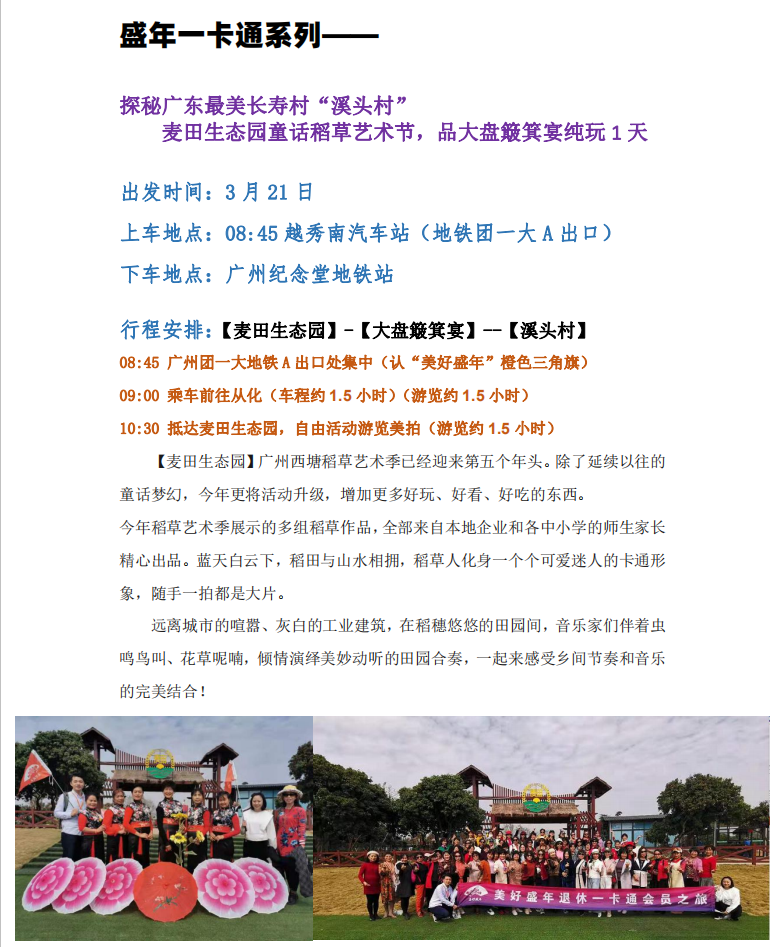 盛年一卡通系列——探秘广东最美长寿村“溪头村”、麦田生态园童话稻草艺术节,品大盘簸箕宴纯玩1天
