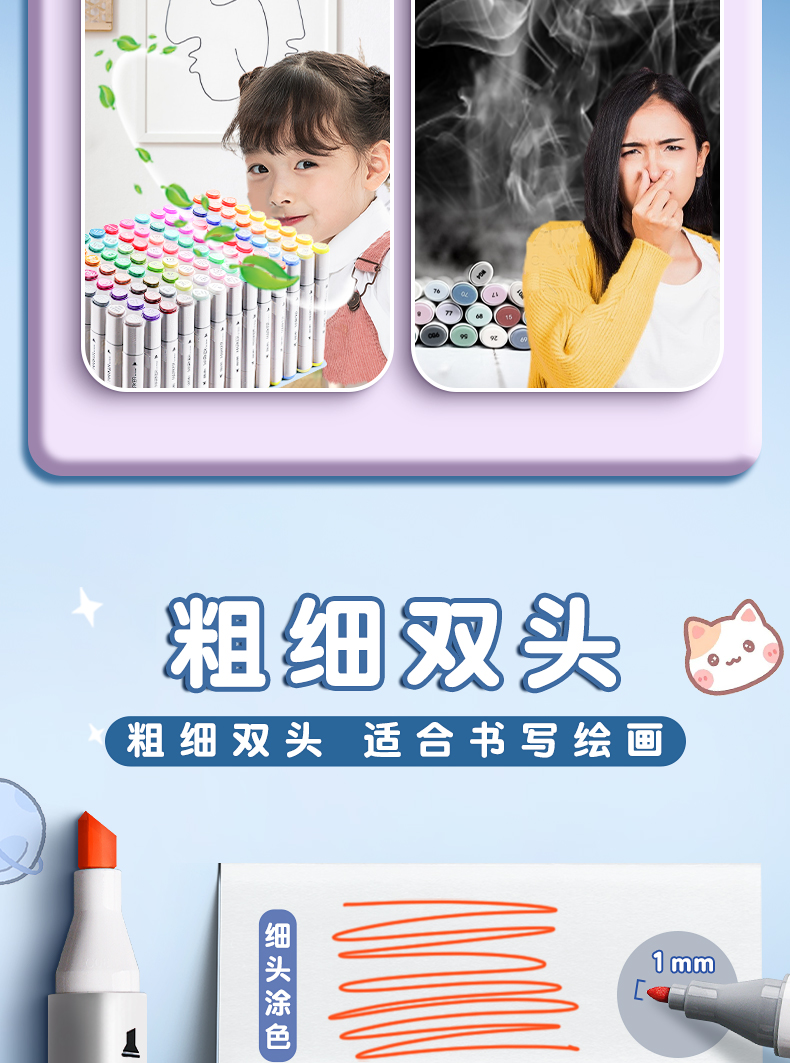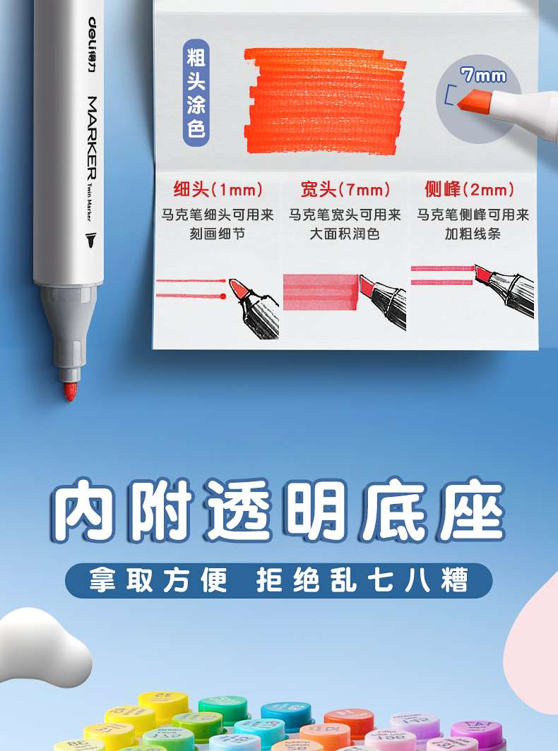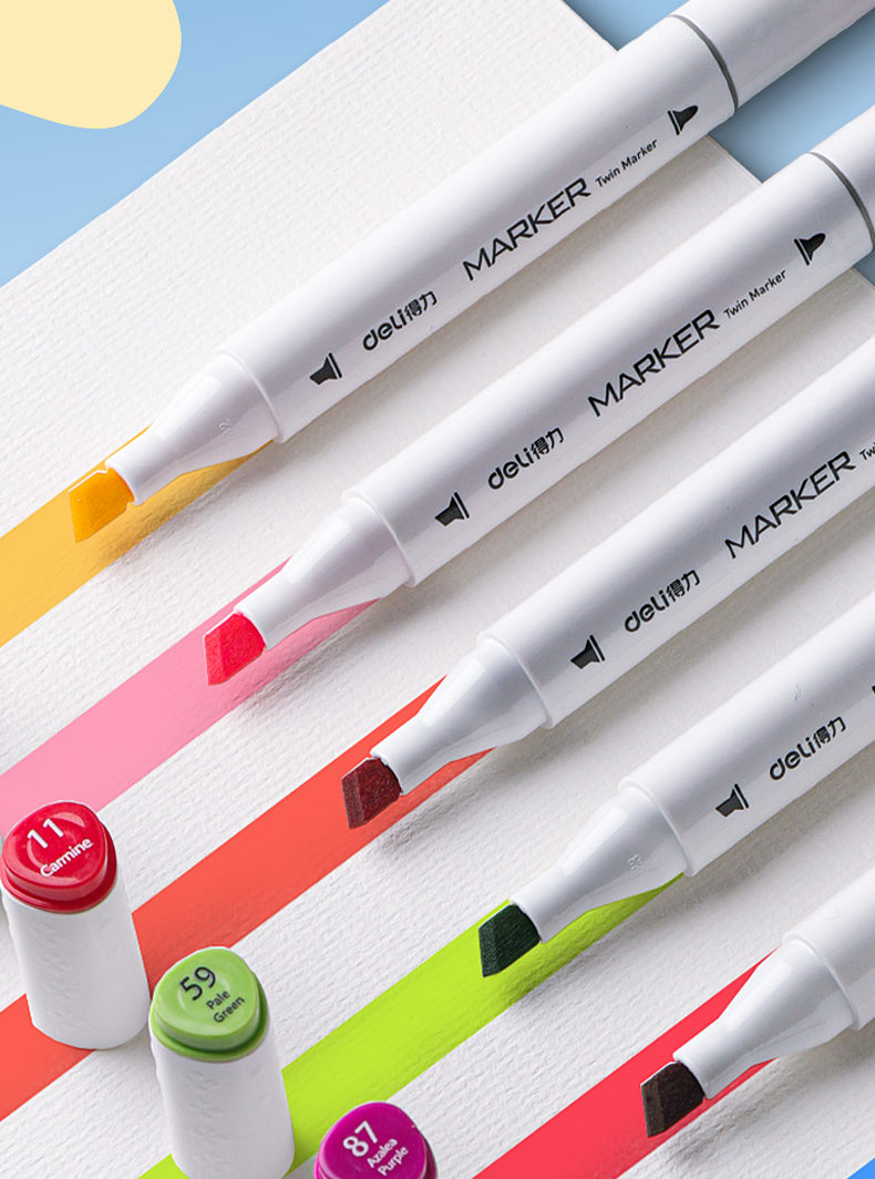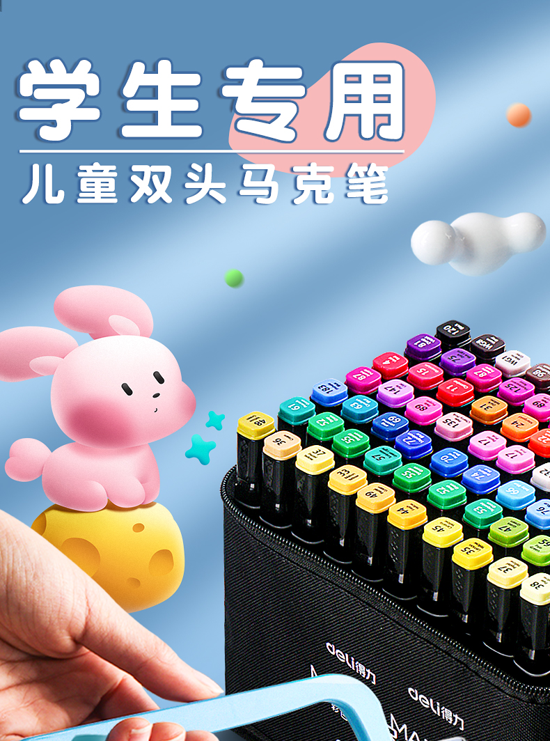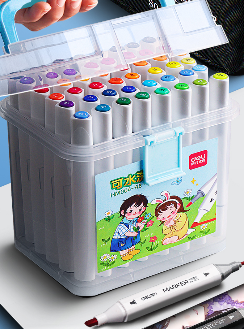「60支桶装!得力马克笔」儿童可水洗马克笔 美术用双头水性水彩笔幼儿园48色60色