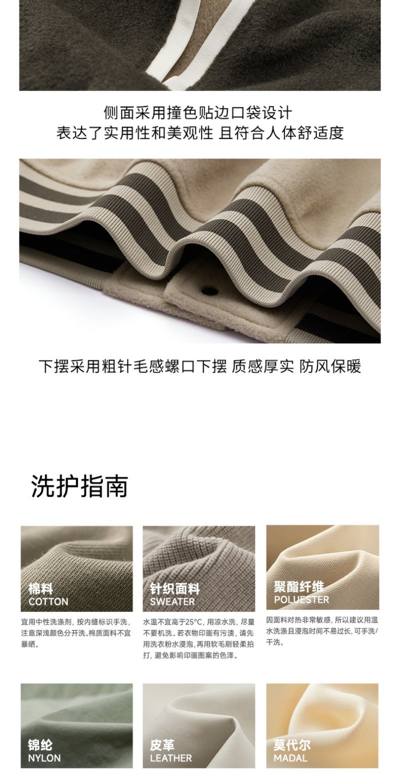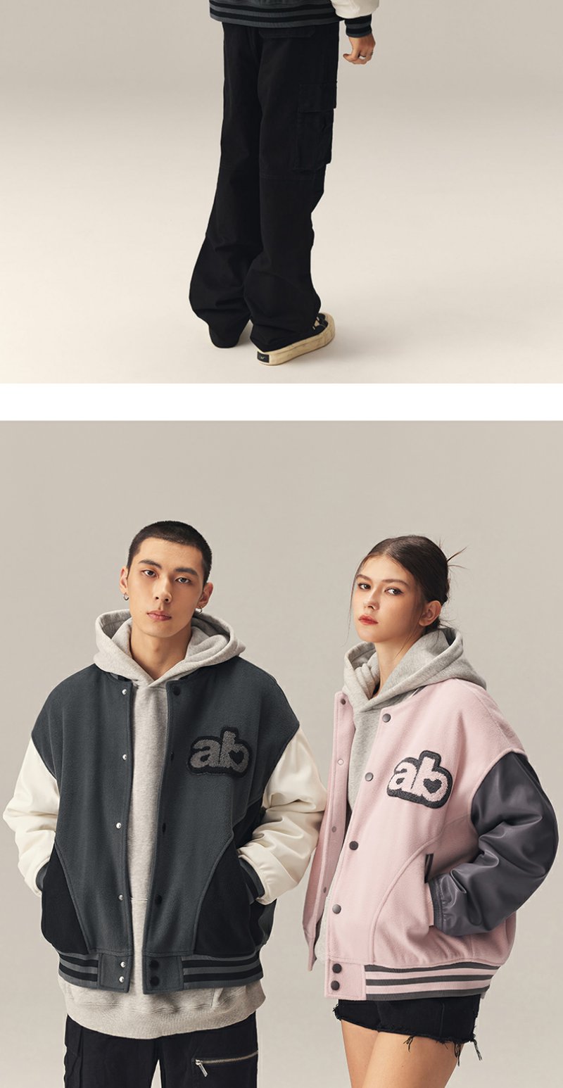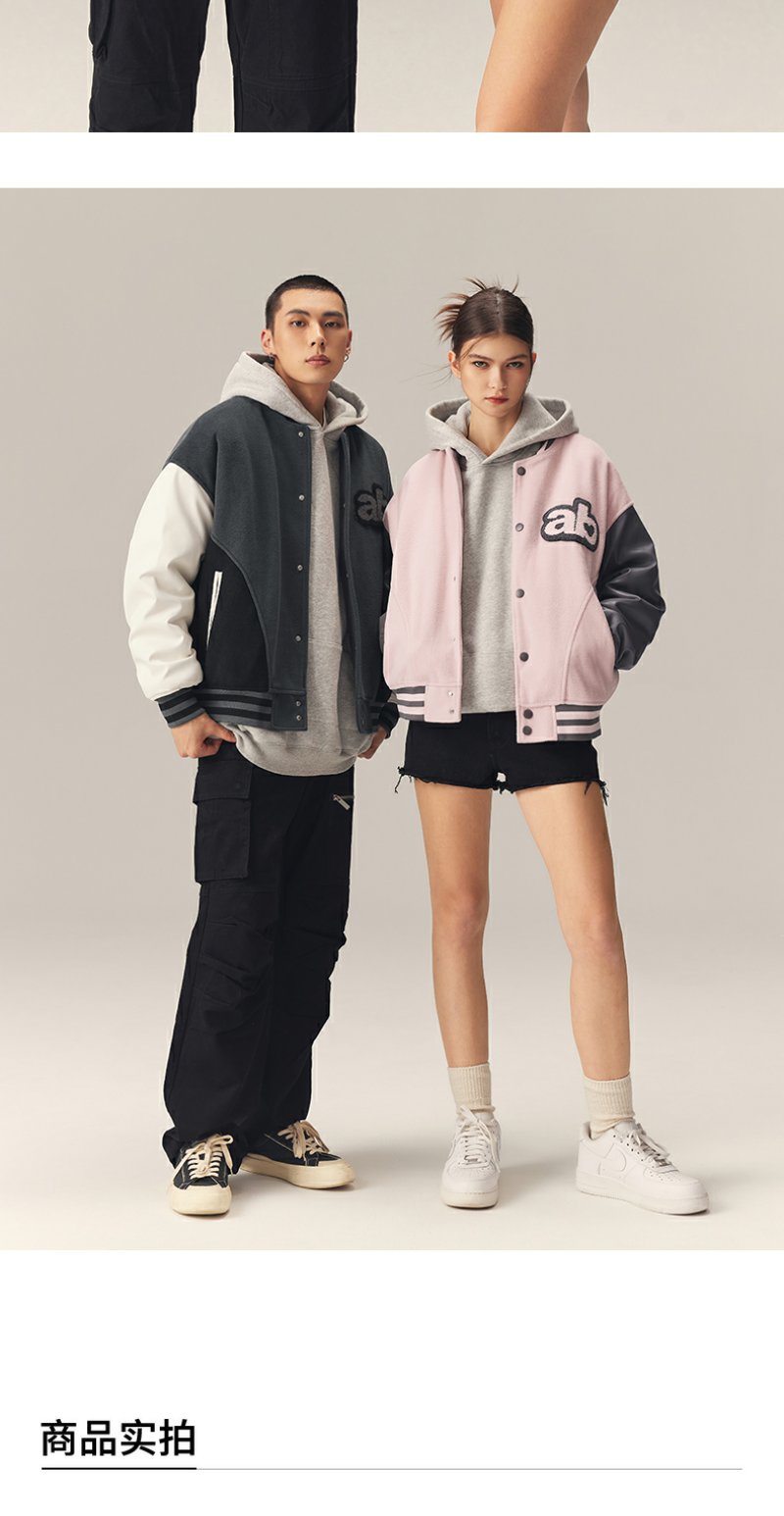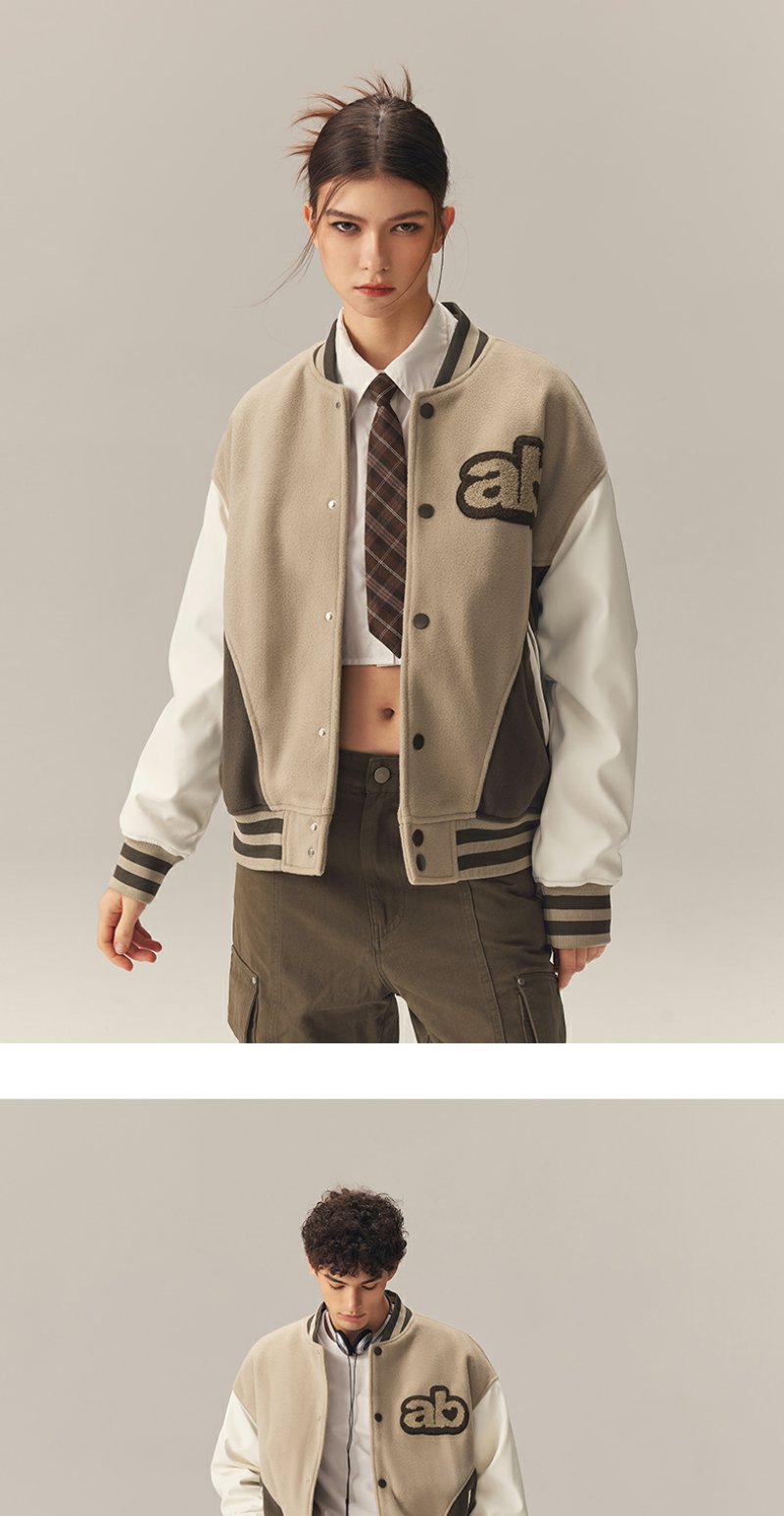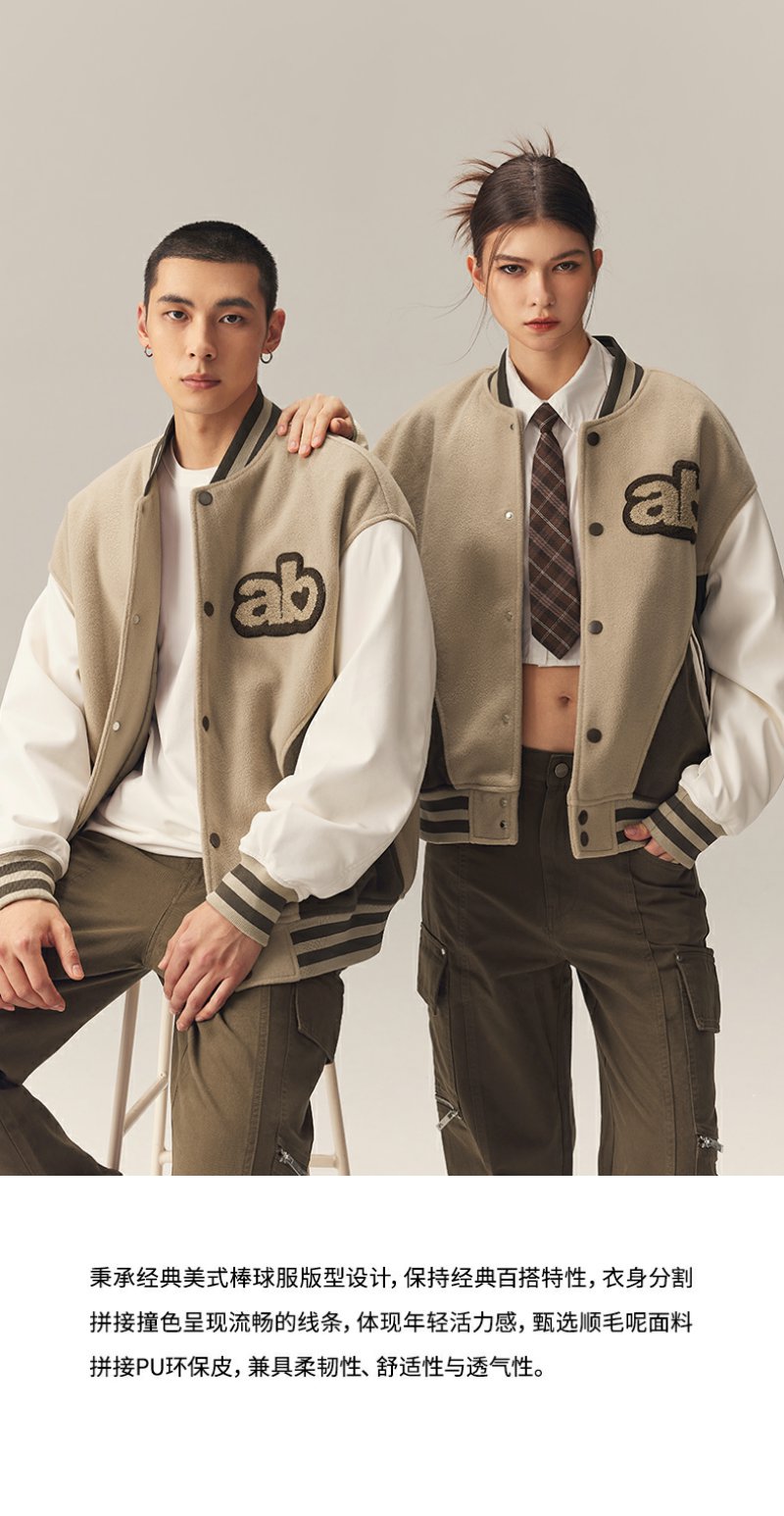 CHINISM CHab毛巾绣美式复古棒球服男女秋冬加厚拼接夹克情侣外套