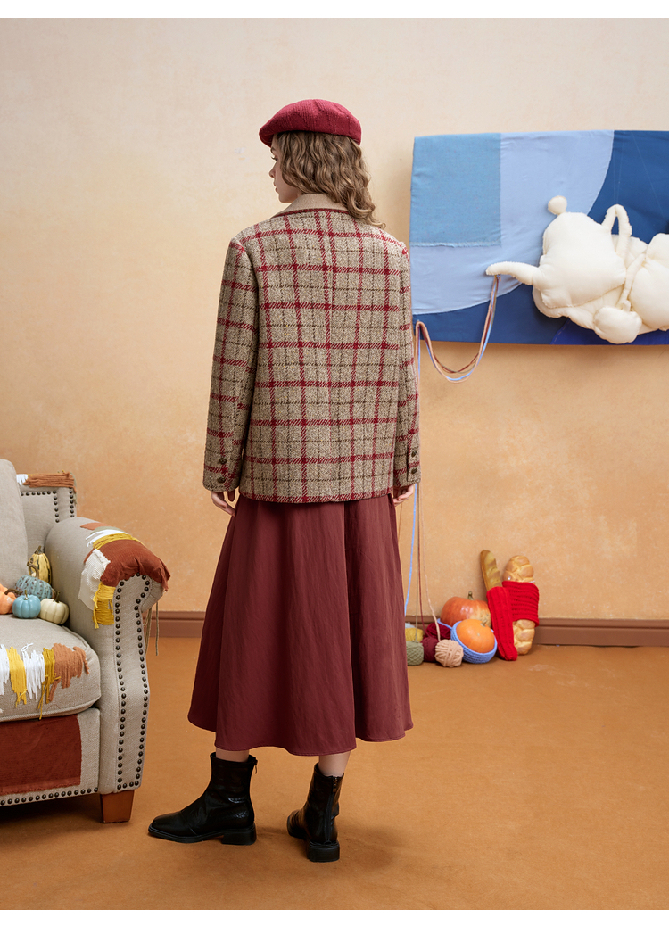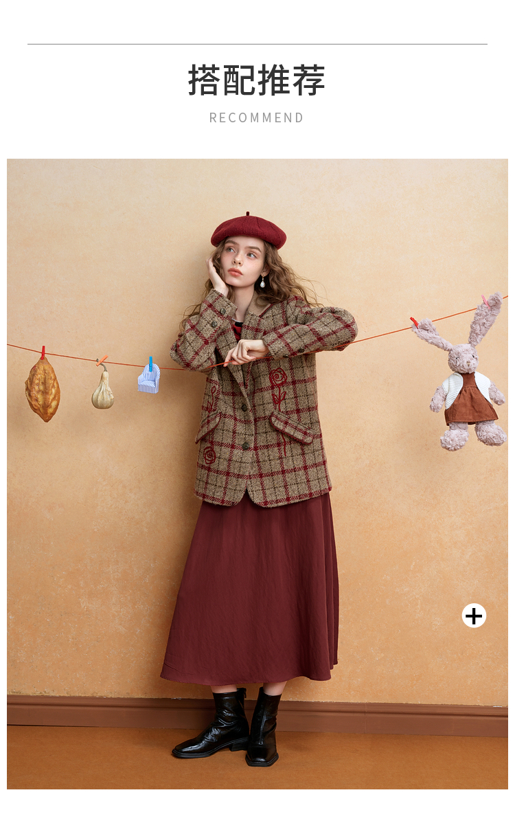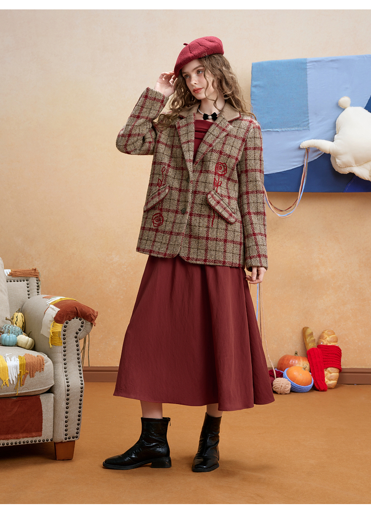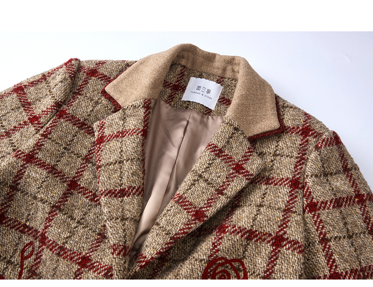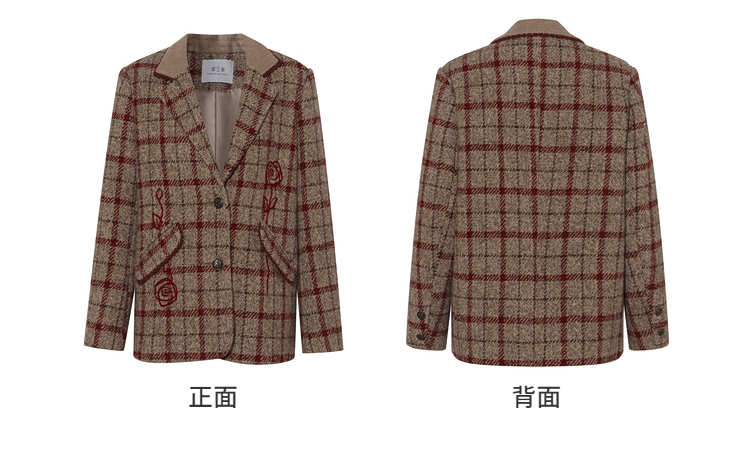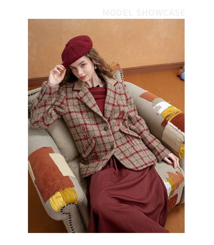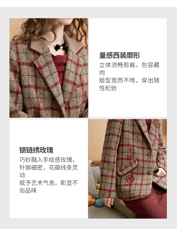 【暖冬内购】两三事 枫糖絮语 2025冬季新款英伦风格子绣花西装毛呢外套女宽松