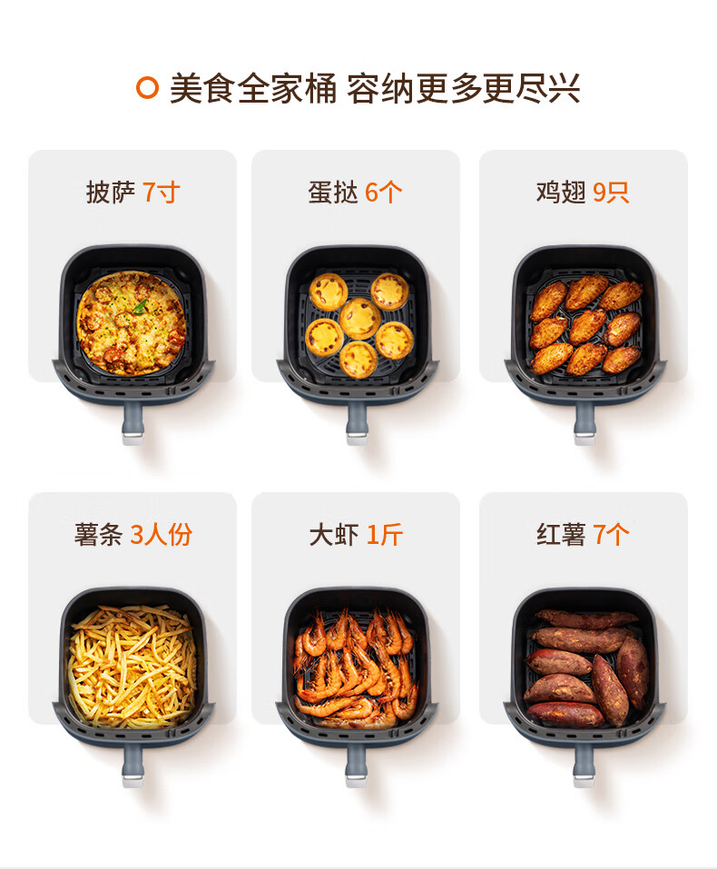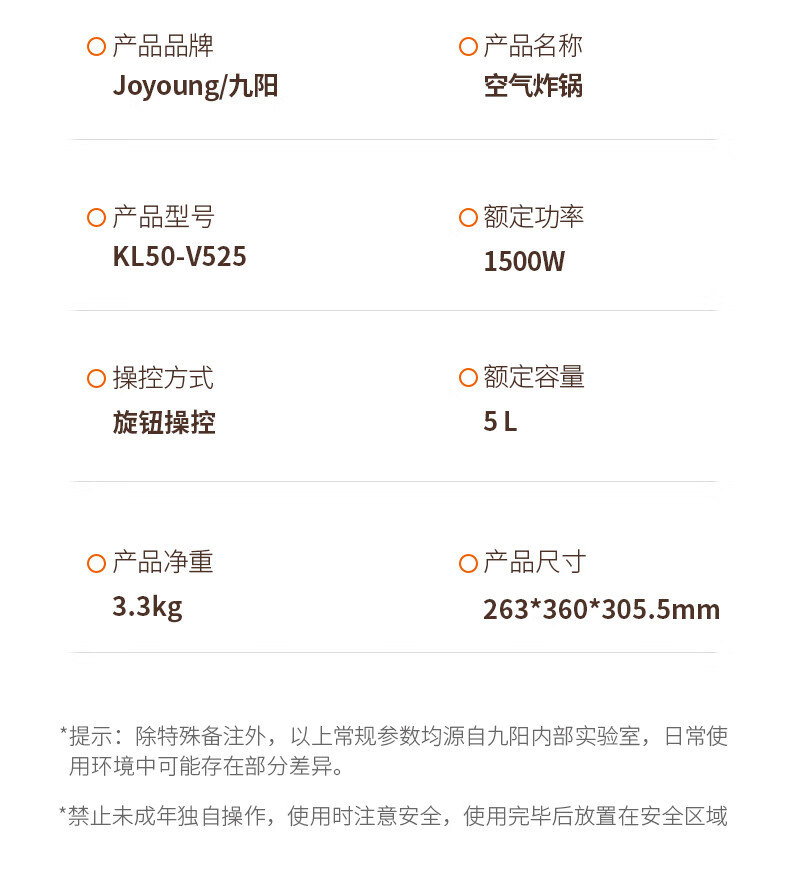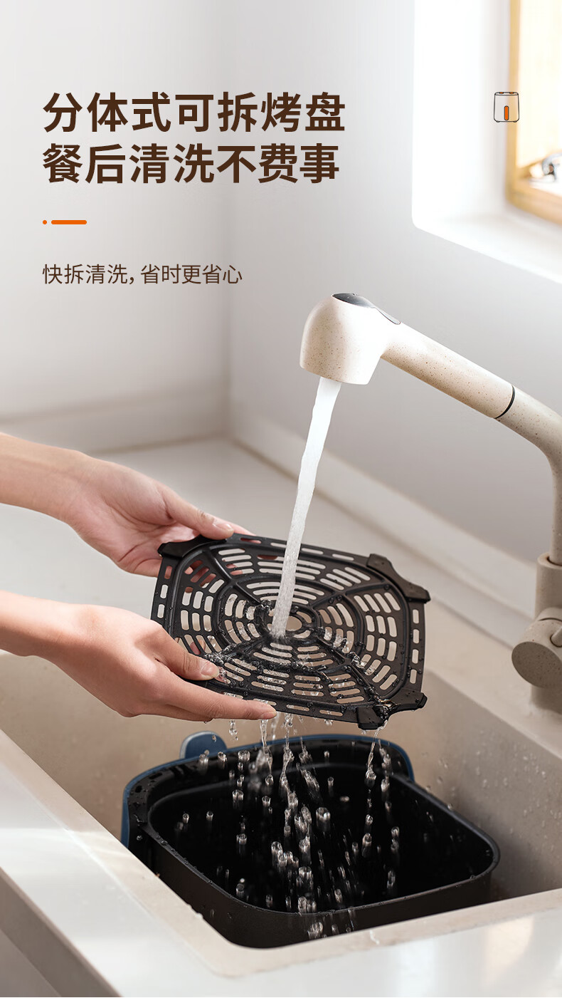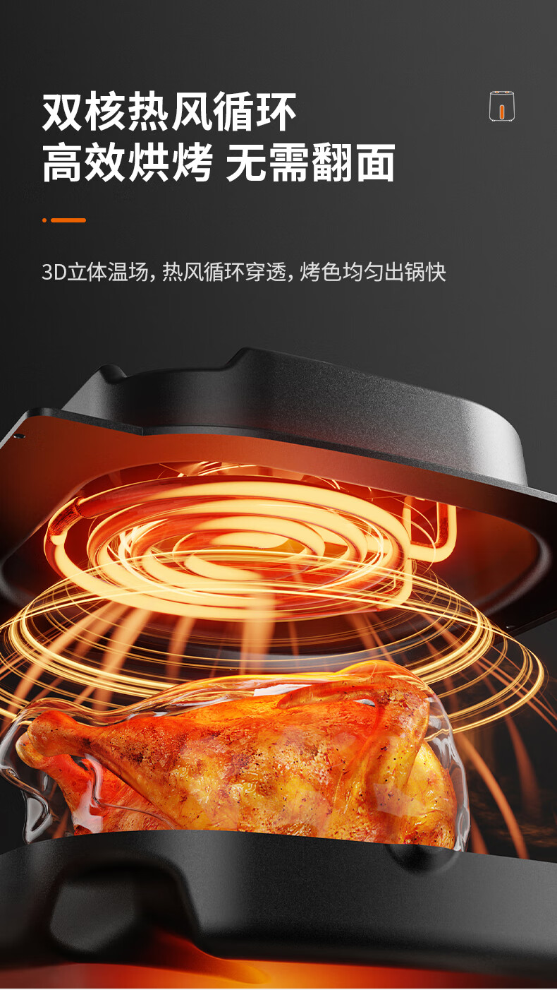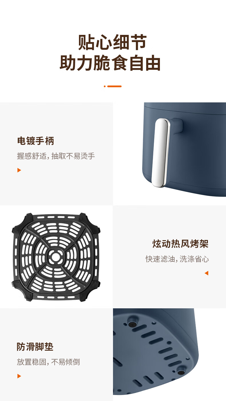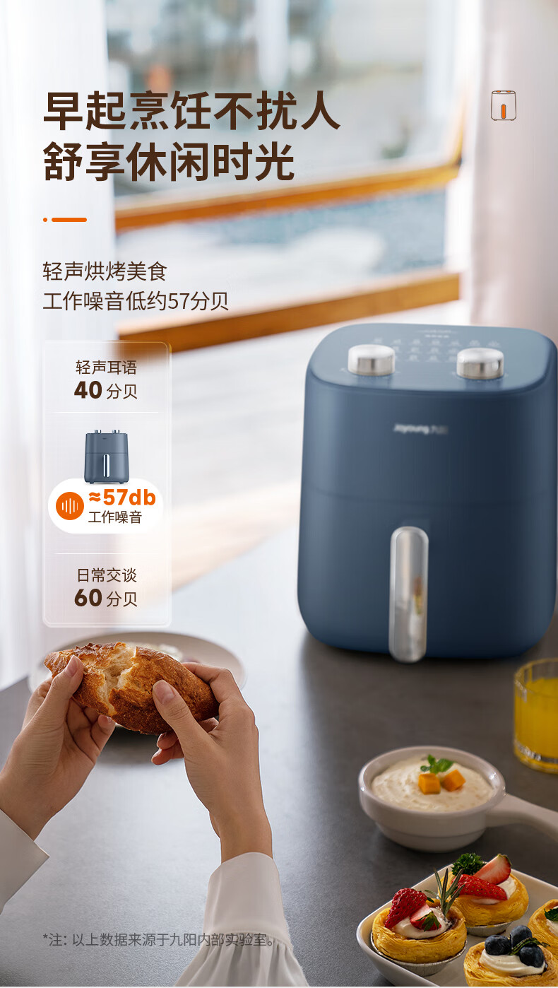 九阳(Joyoung)空气炸锅大容量不用翻面蒸汽嫩烤家用智能无油不粘电炸锅薯条机KL50-V525【5L蓝色双旋钮】