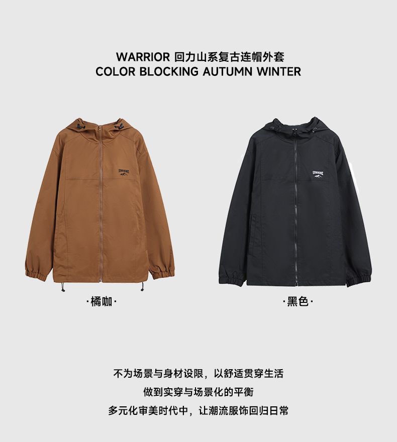 回力外套男春秋款美式休闲冲锋机能风连帽夹克宽松潮牌工装登山服