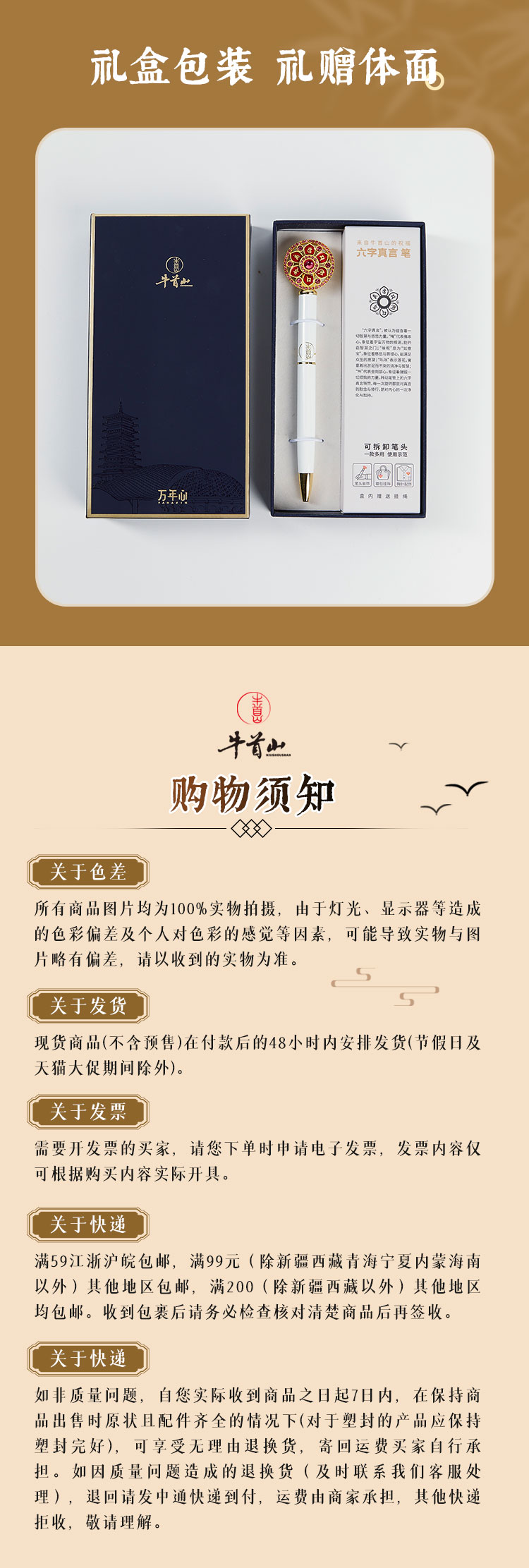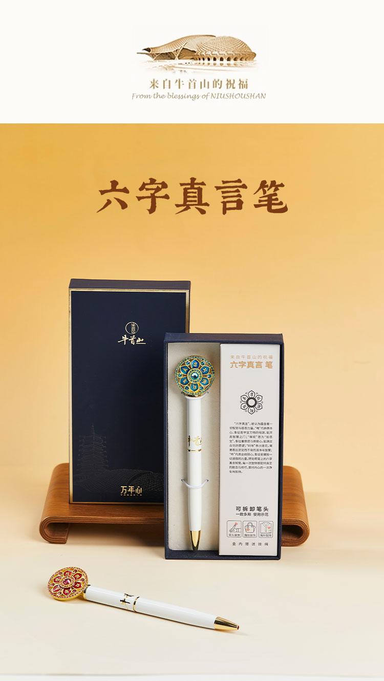牛首山文创六字真言祈愿笔锌合金笔头可拆卸吊坠中性笔文具礼盒