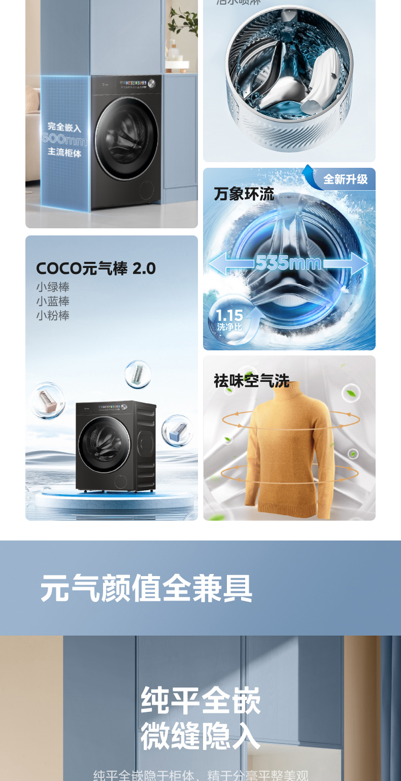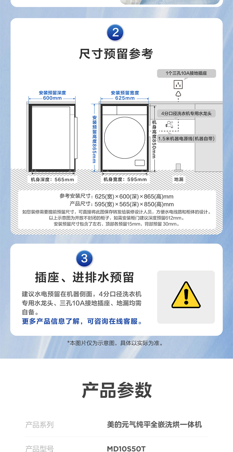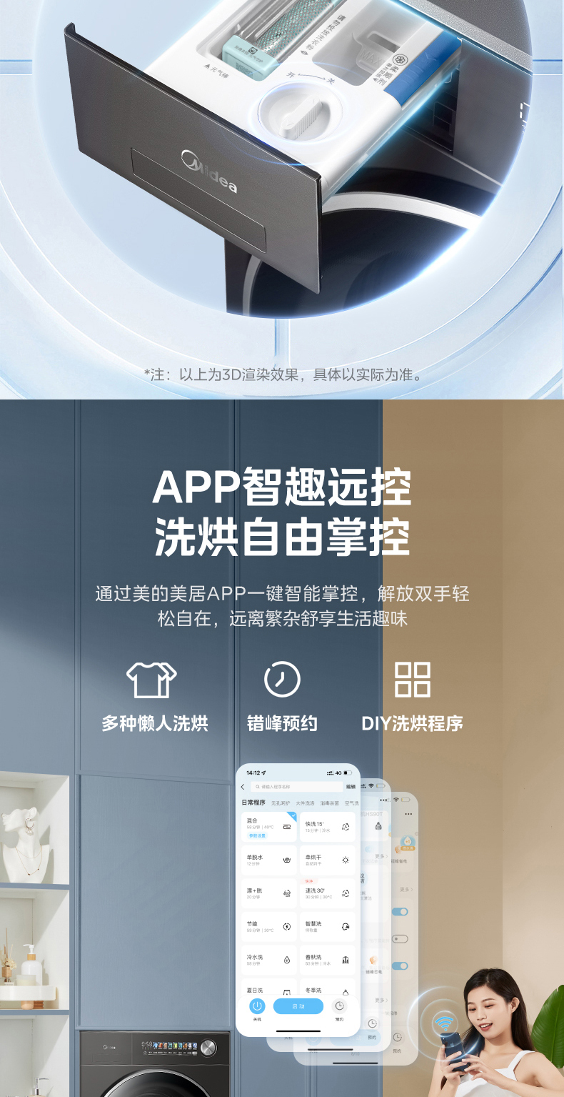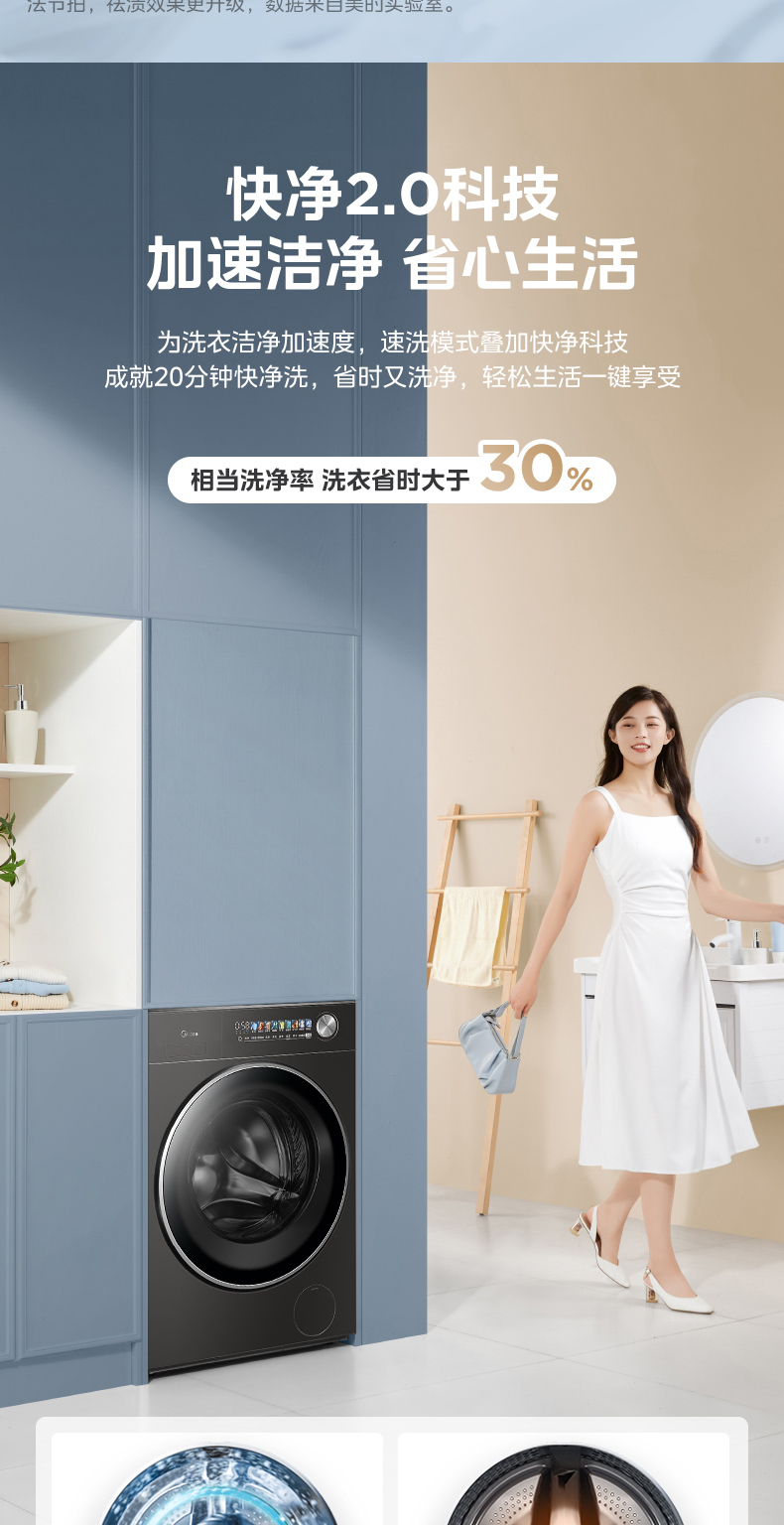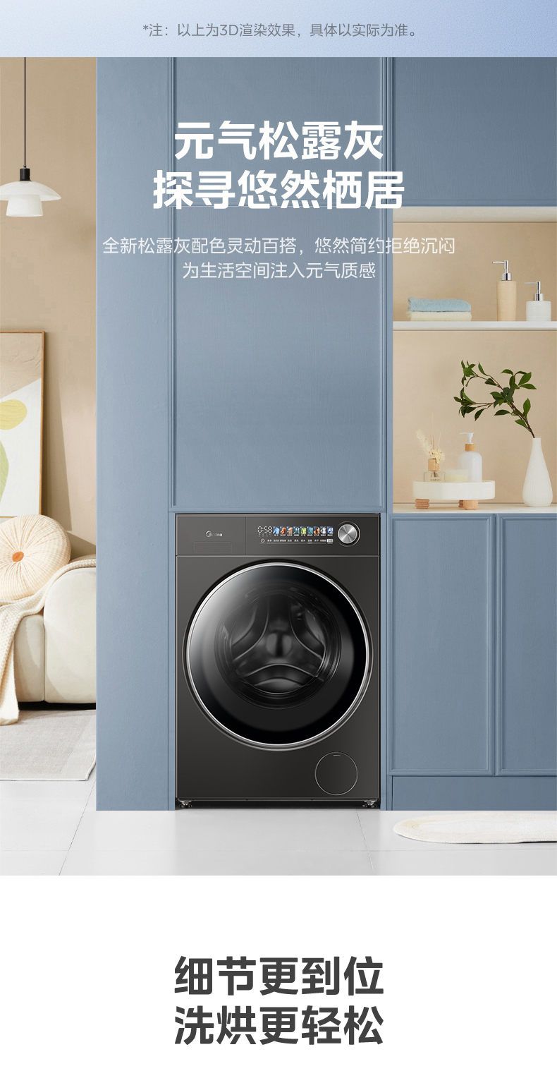 美的 MD10S50T 滚筒洗干一体机 松露灰 220V,1Ph 50Hz 转速1400 不带银离子