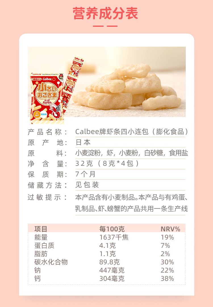 卡乐比Calbee牌一岁起可食虾条32g(8g*4包)