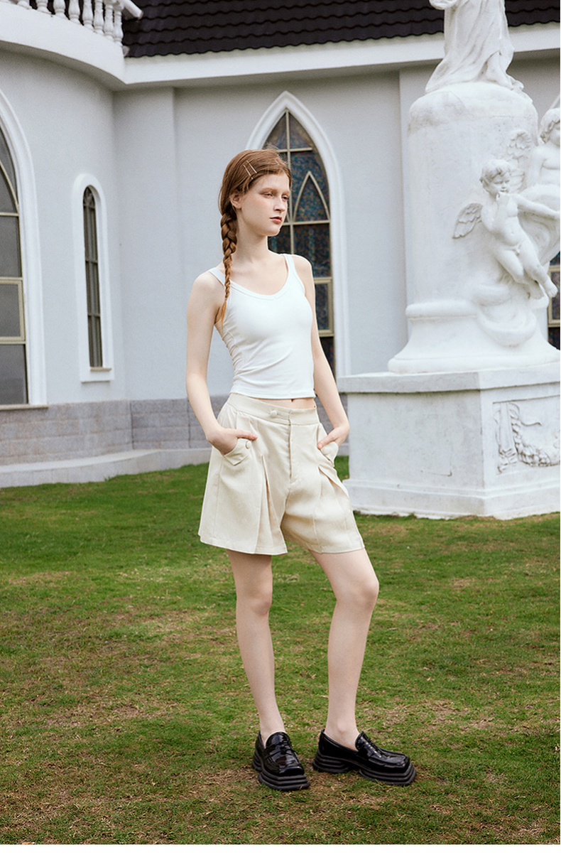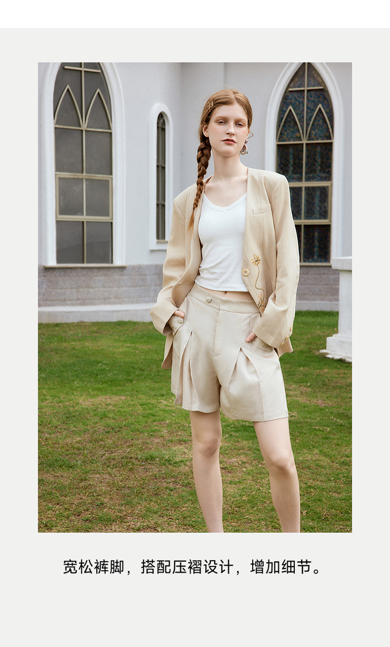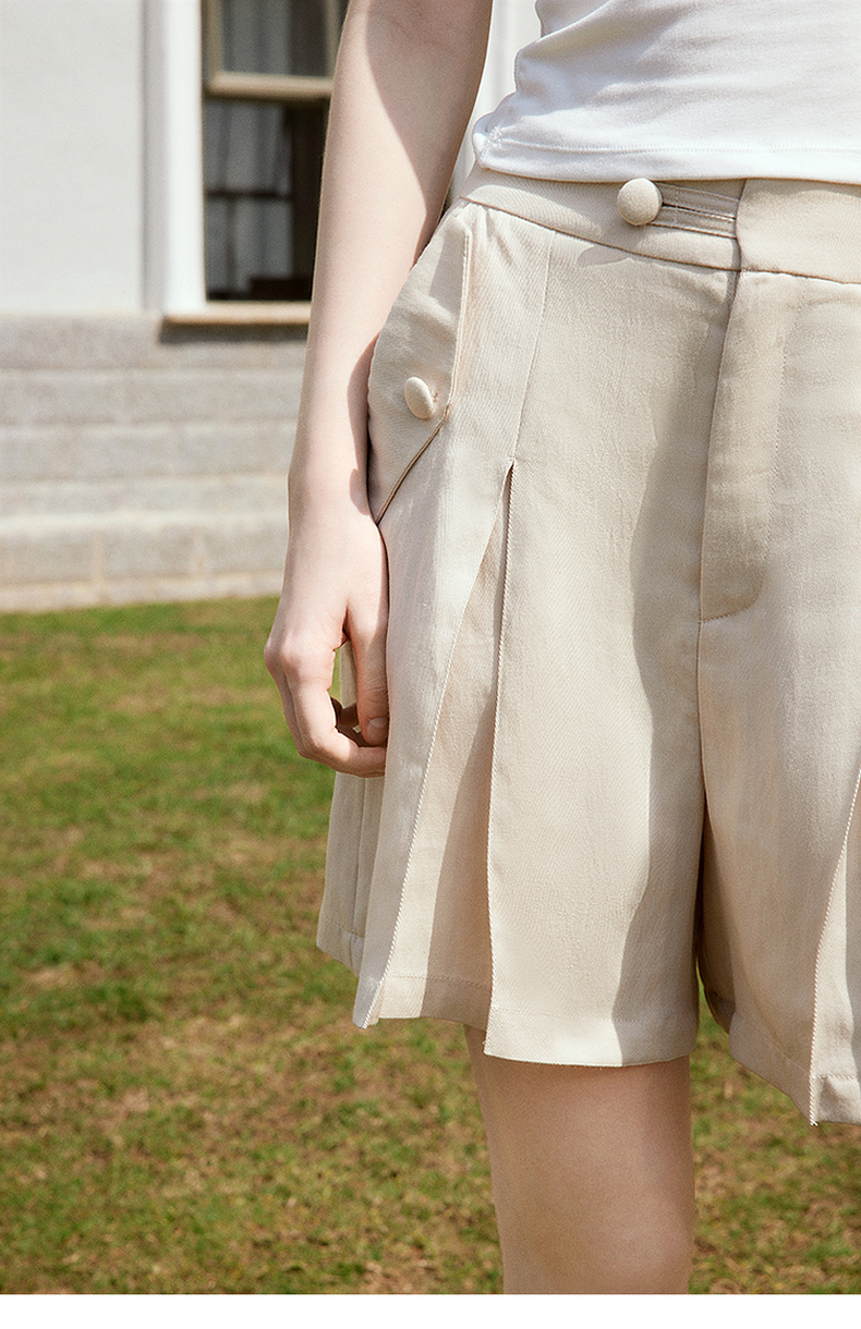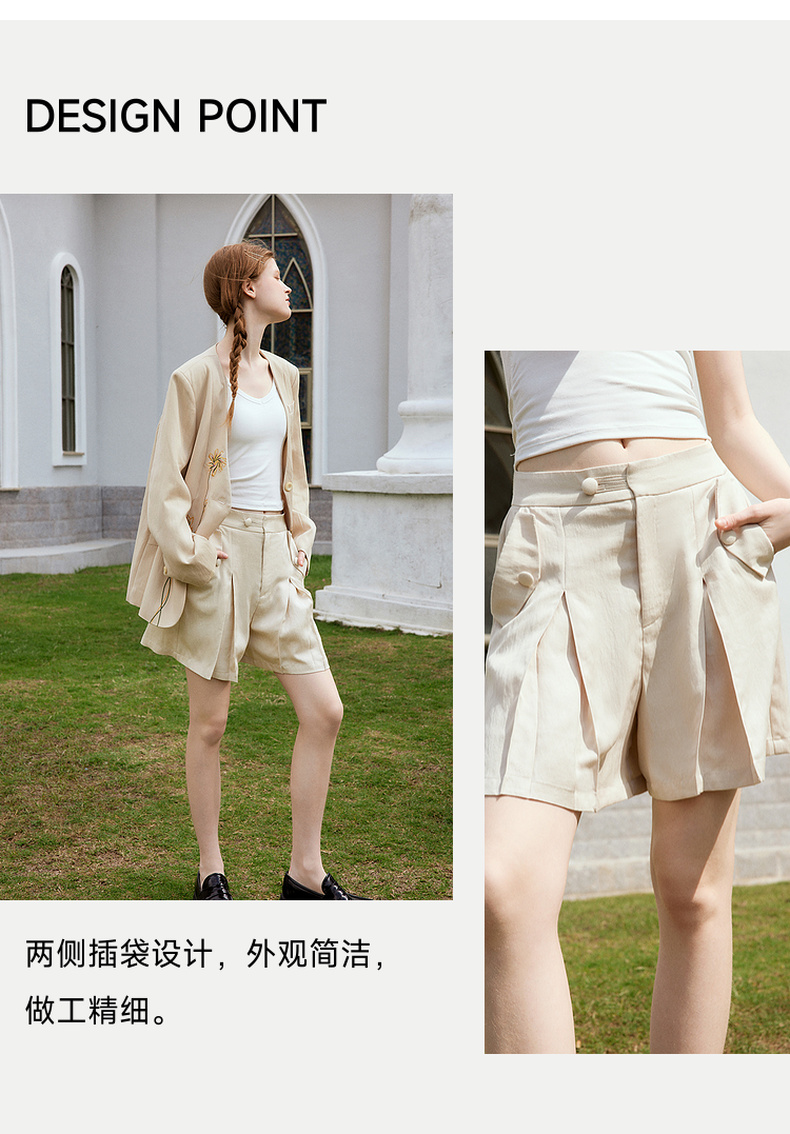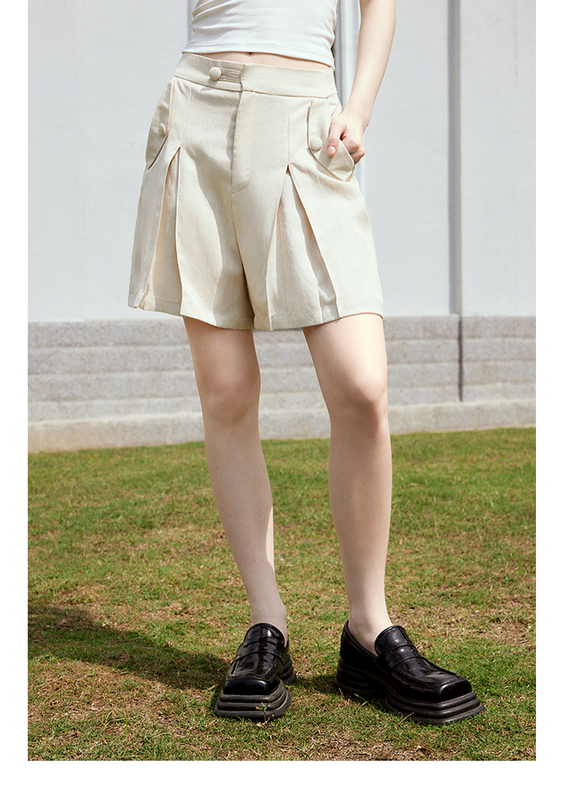 两三事天空之境夏季新款简约纽扣装饰高腰短裤女