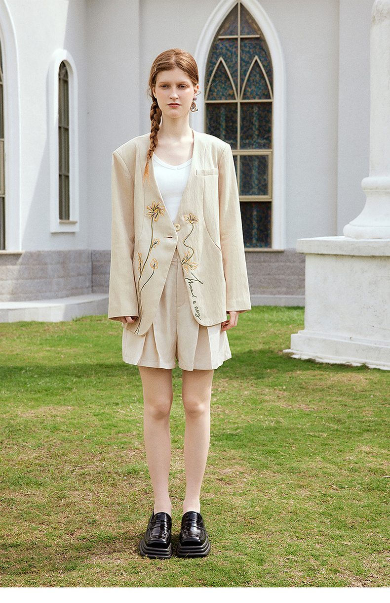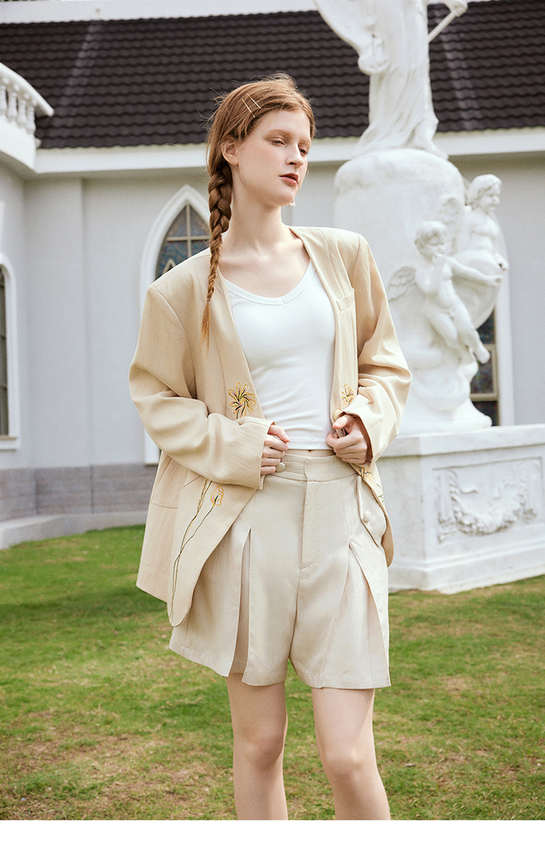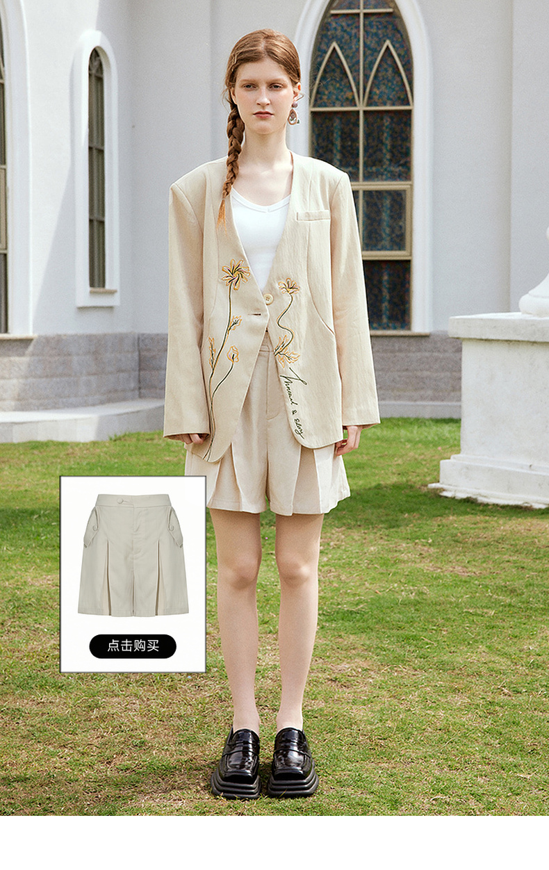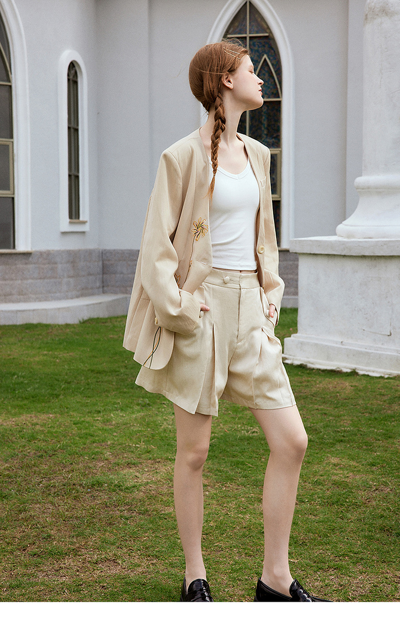 两三事天空之境夏季新款简约纽扣装饰高腰短裤女