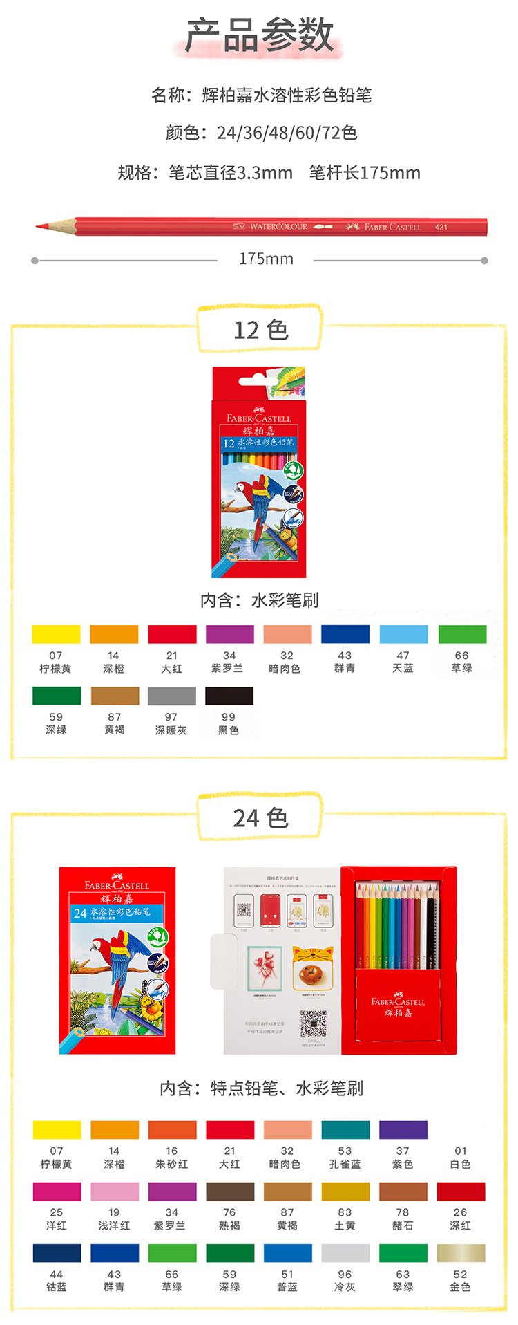 辉柏嘉IN1-514024水溶彩铅24色纸盒装升级版