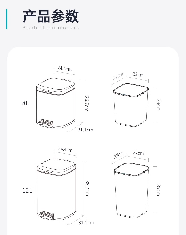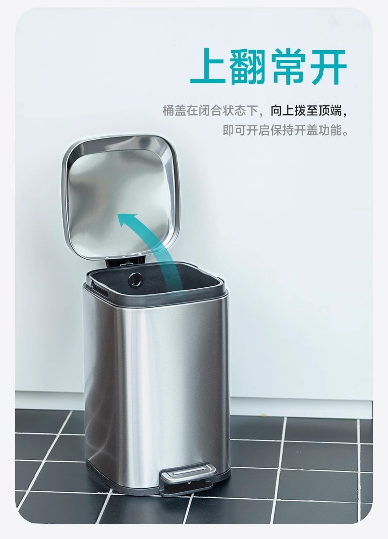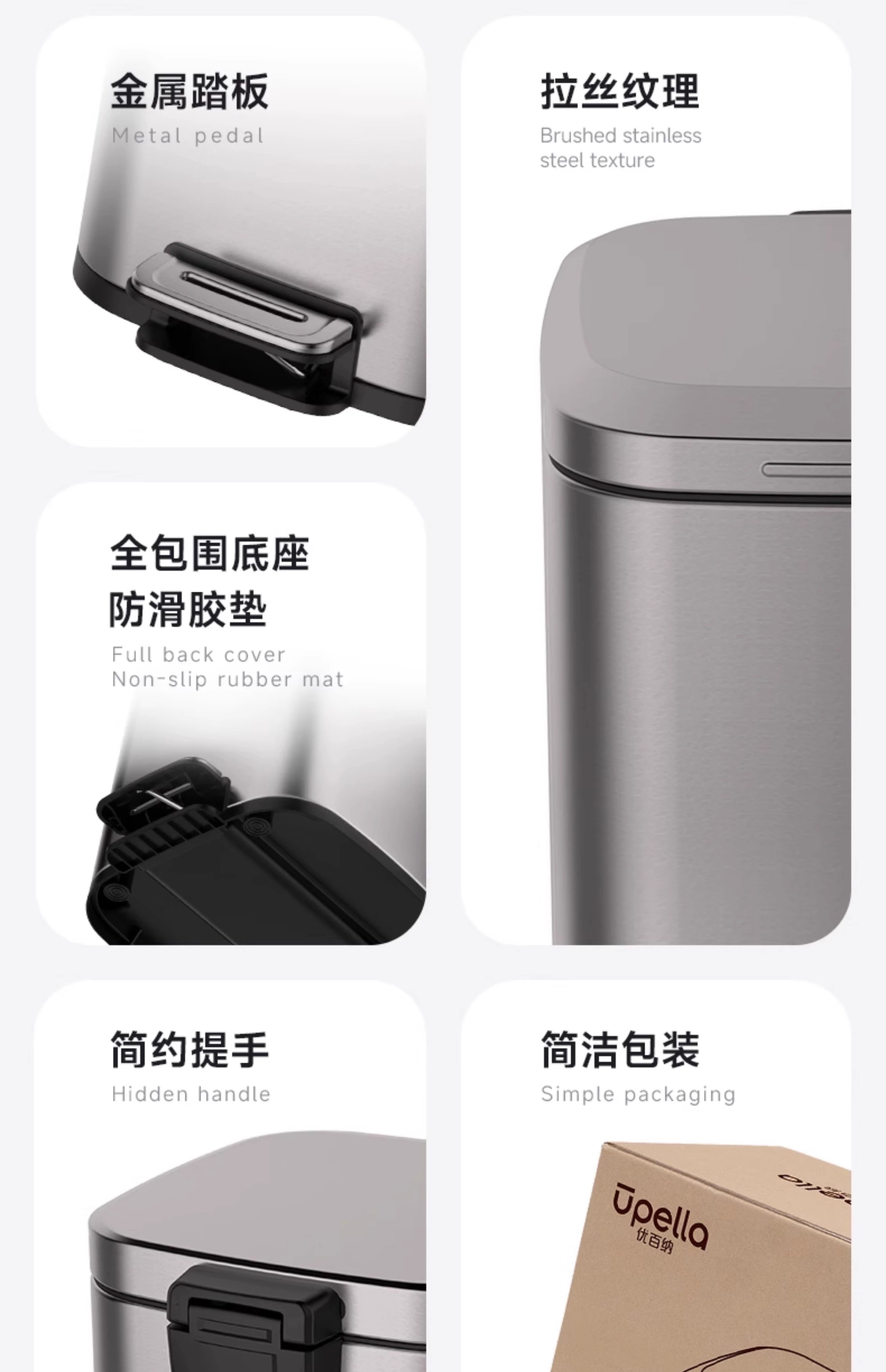 优百纳脚踏式不锈钢垃圾桶带盖家用轻奢高档客厅厨房办公室商用