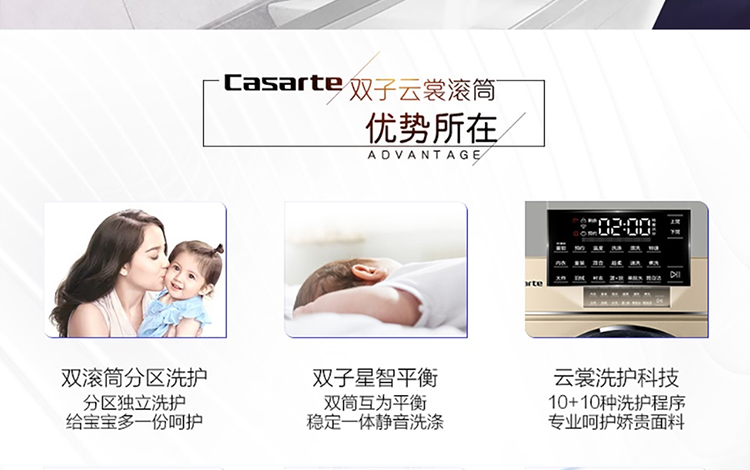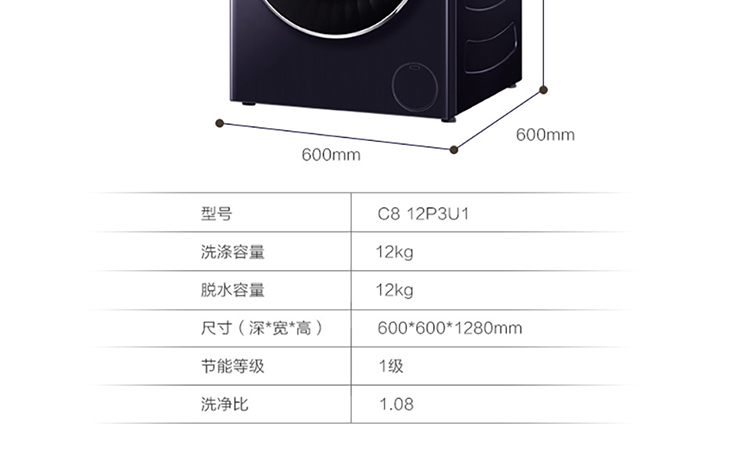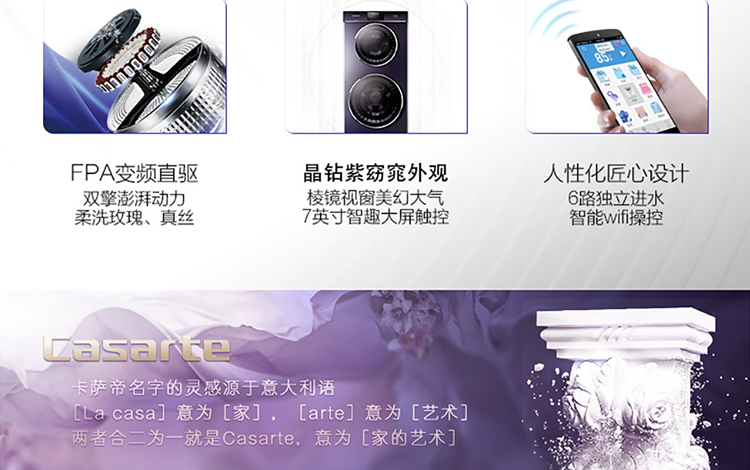 卡萨帝 12公斤 滚筒洗衣机 直驱分区洗护 晶钻紫C8 12P3U1