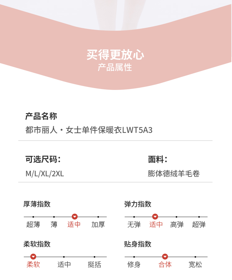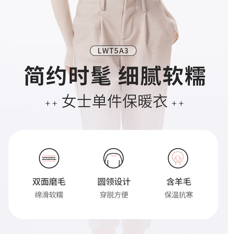 都市丽人保暖衣轻暖单件上衣膨体德绒羊毛卷薄女士保暖衣单件上衣LWT5A3