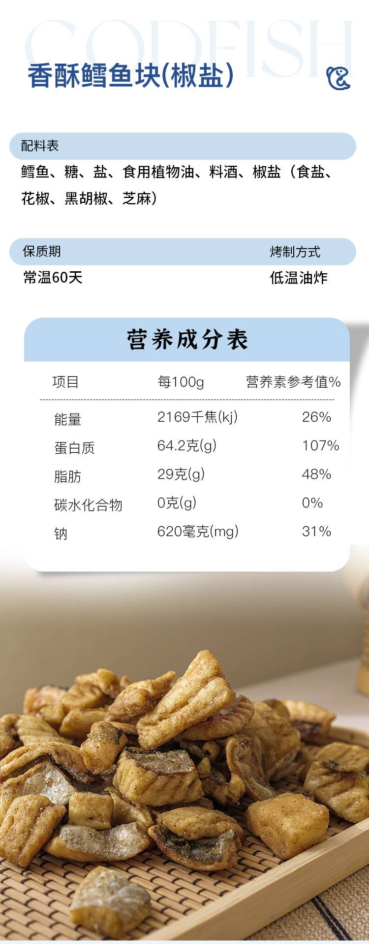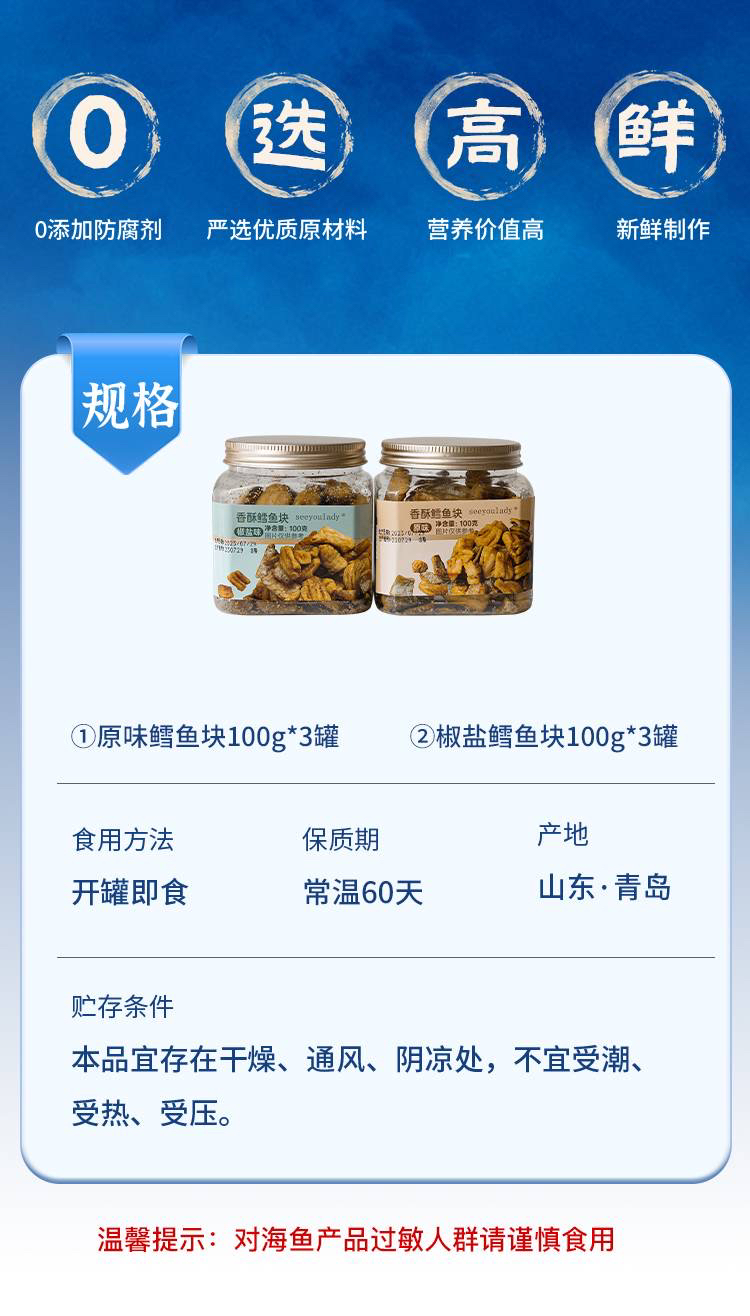 【限时抢购】【年前最后一次】陆续发货【独家定制】健康食品香酥鳕鱼块小零食(100克X3罐) 158A119007