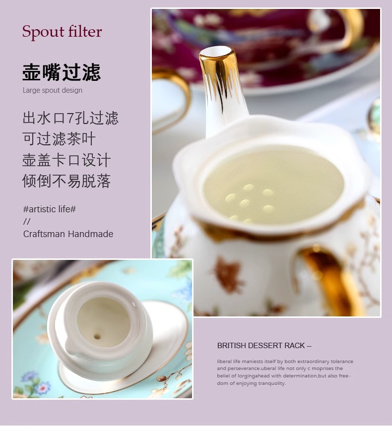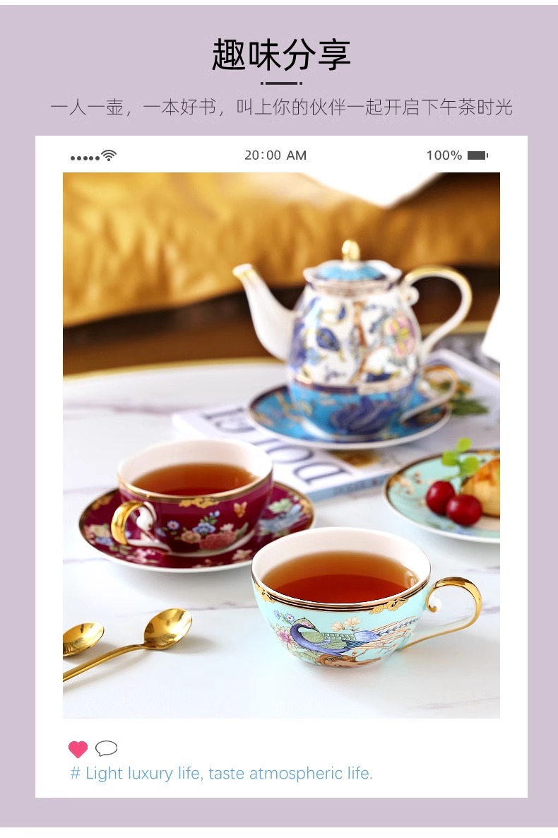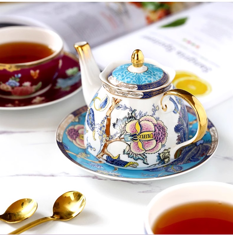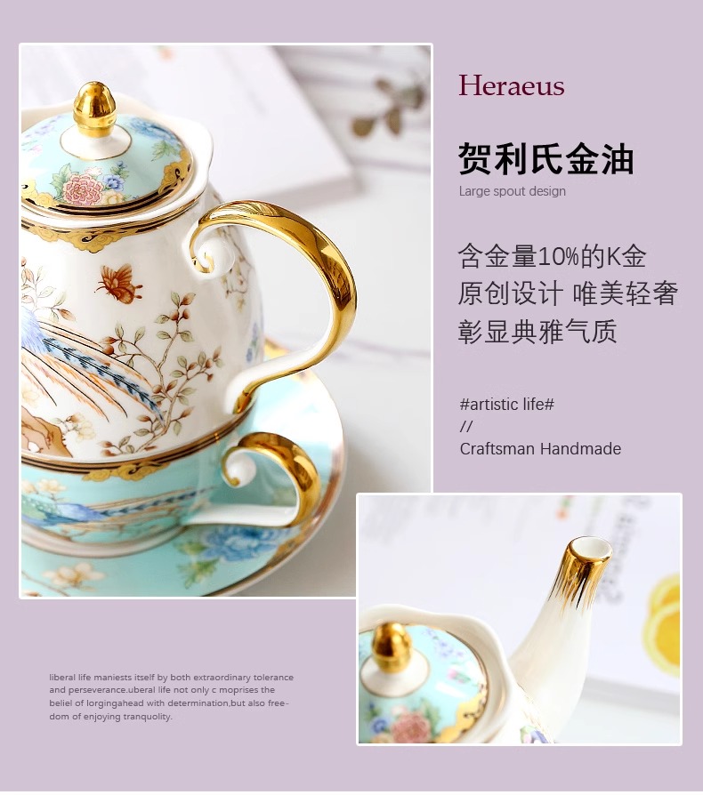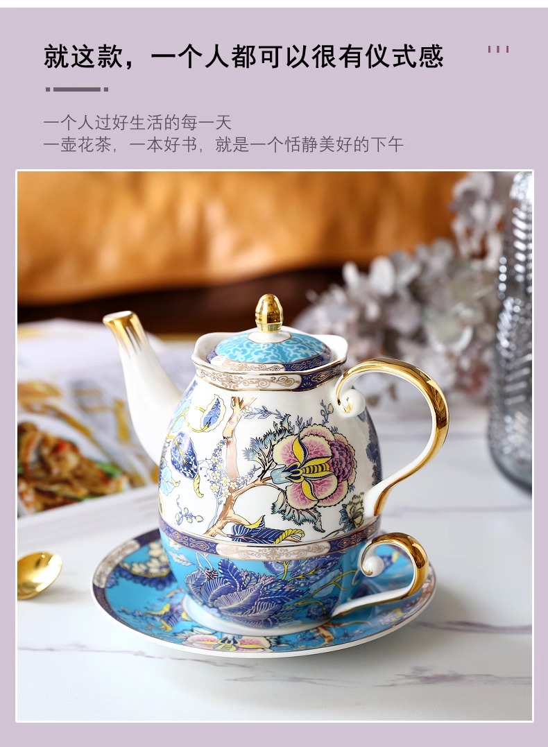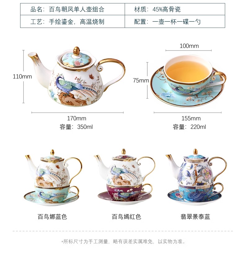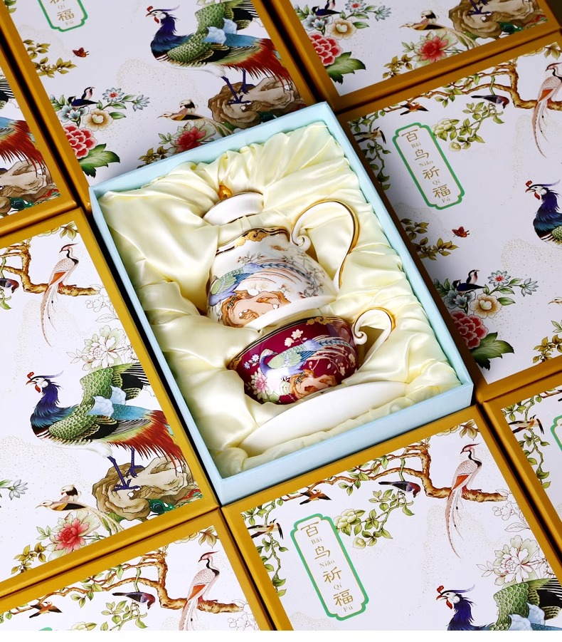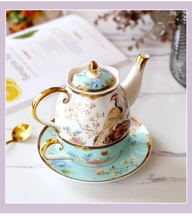 中式百鸟朝凤创意家用轻奢花茶下午茶陶瓷茶具咖啡杯碟套装茶杯壶诺轩百鸟娜蓝子母壶1壶1杯碟礼盒装