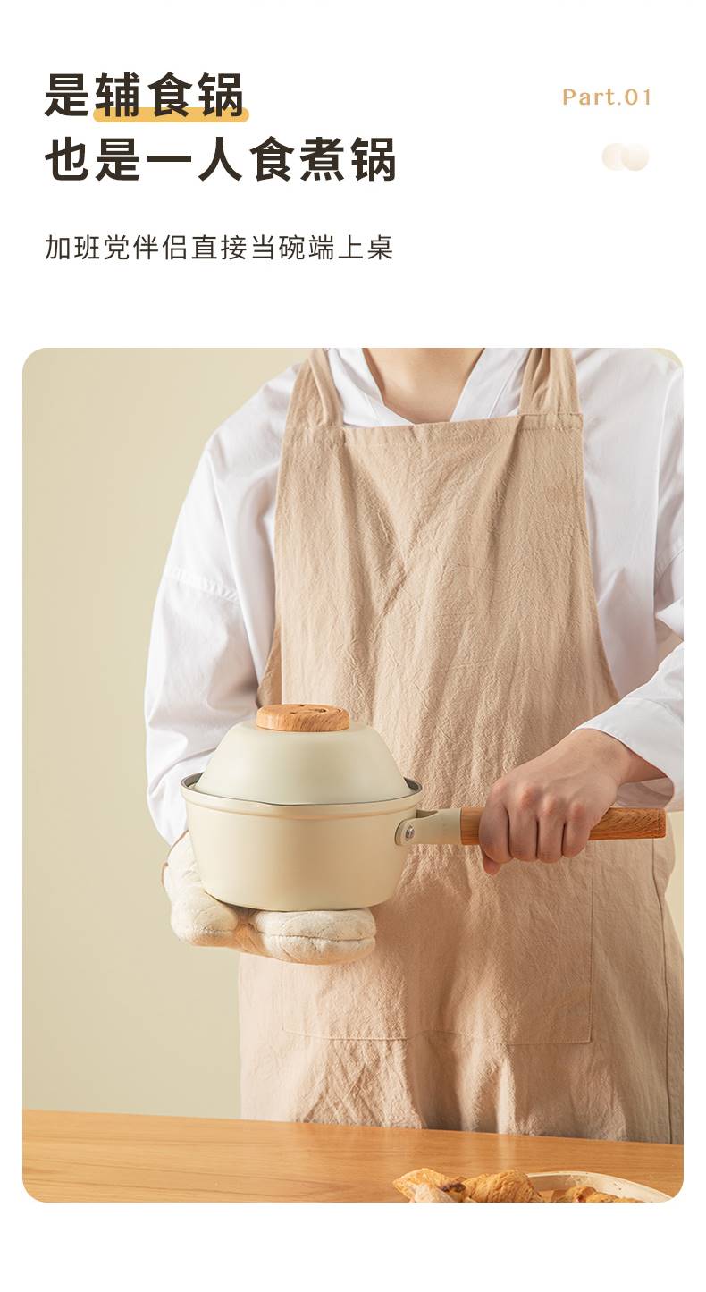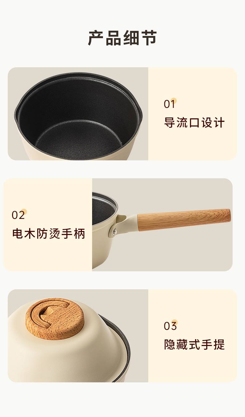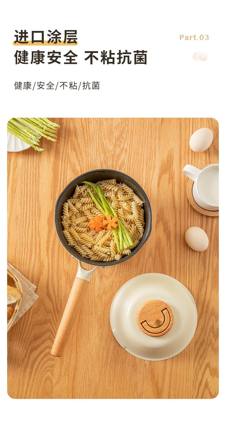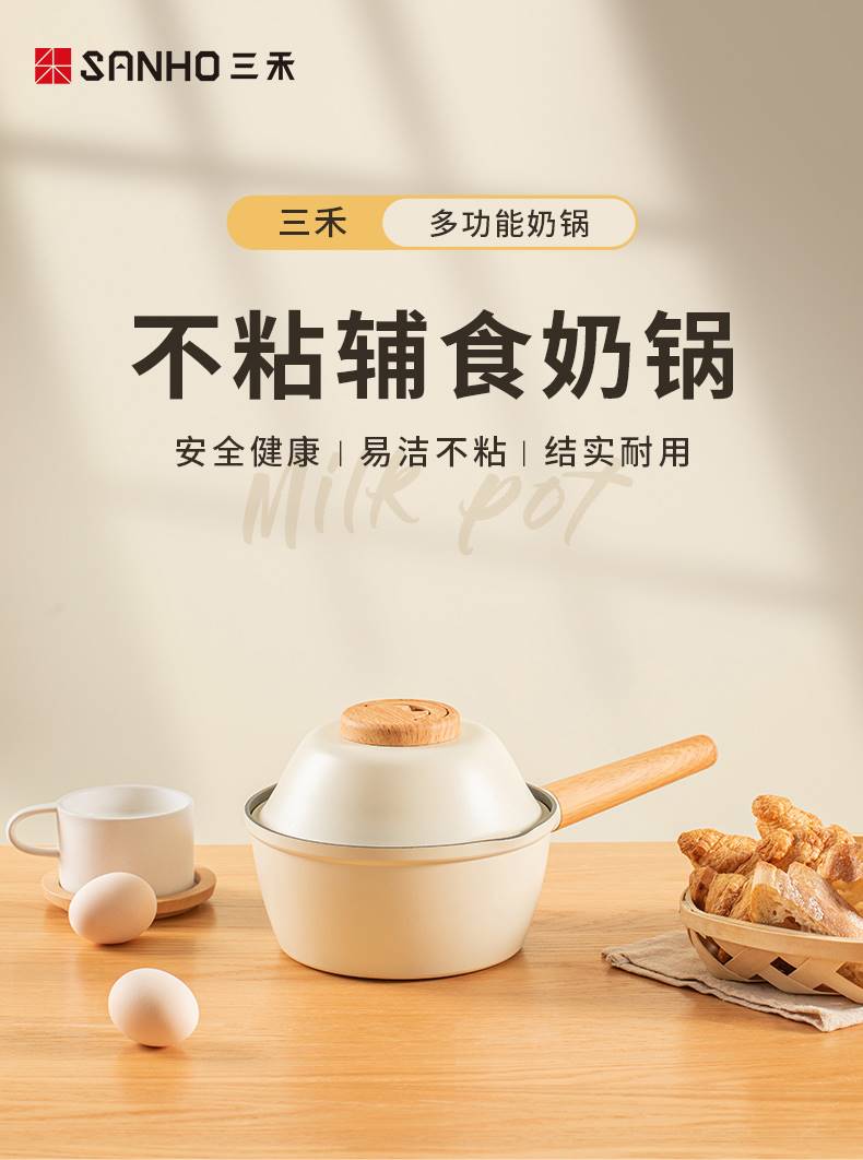 三禾 奶锅宝宝辅食锅婴儿煎煮一体锅不粘锅家用汤泡面锅 奶白 18cm