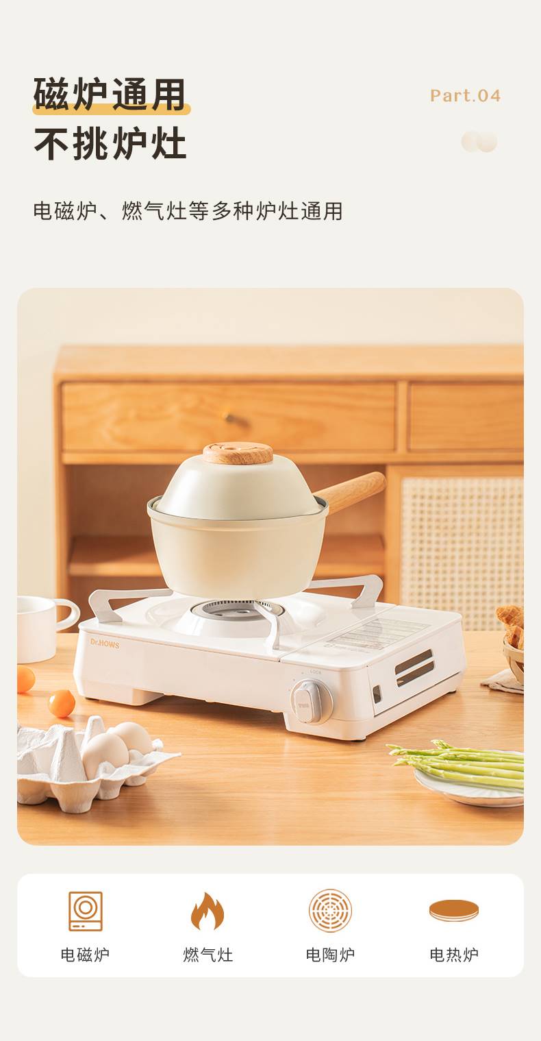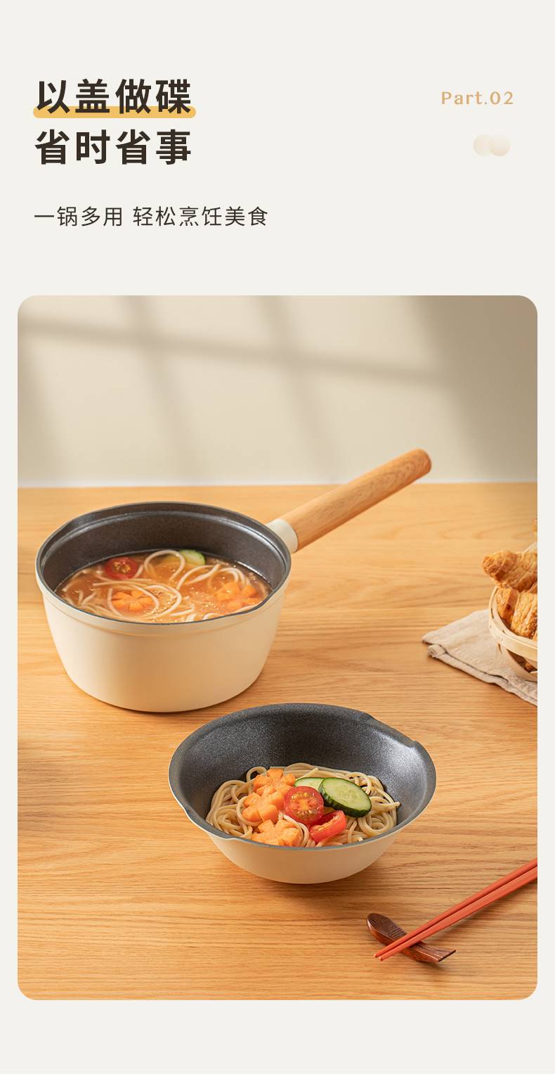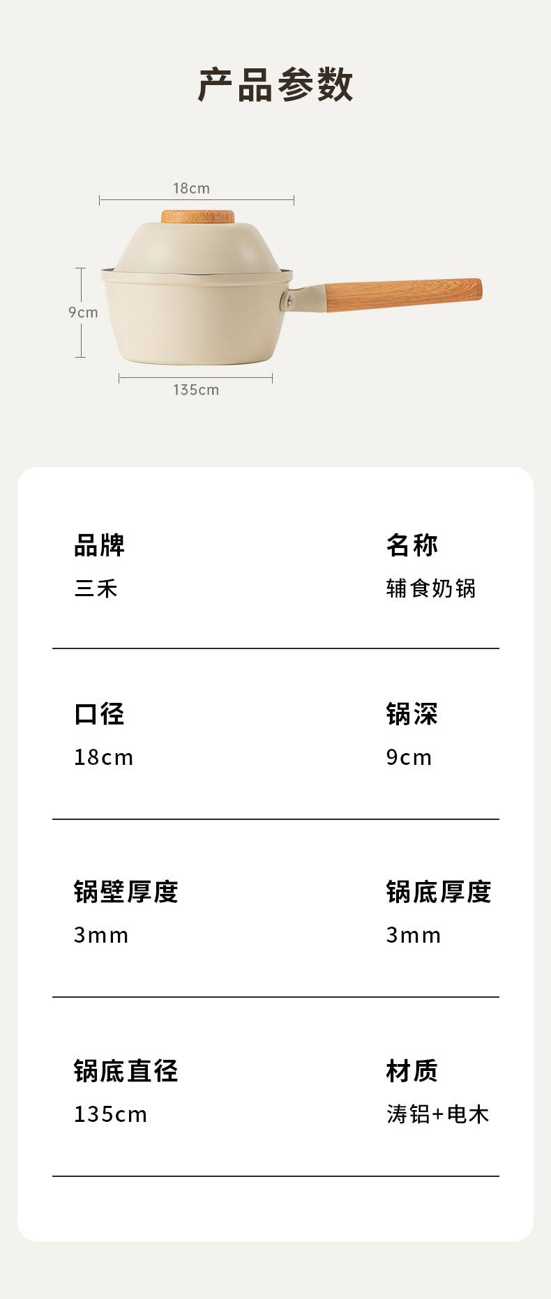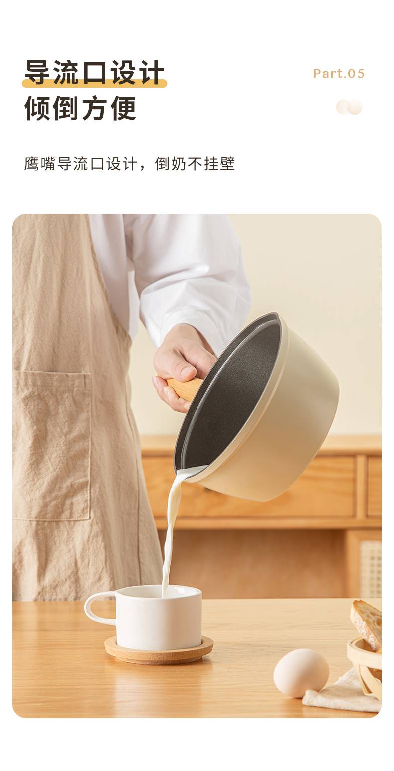 三禾 奶锅宝宝辅食锅婴儿煎煮一体锅不粘锅家用汤泡面锅 奶白 18cm
