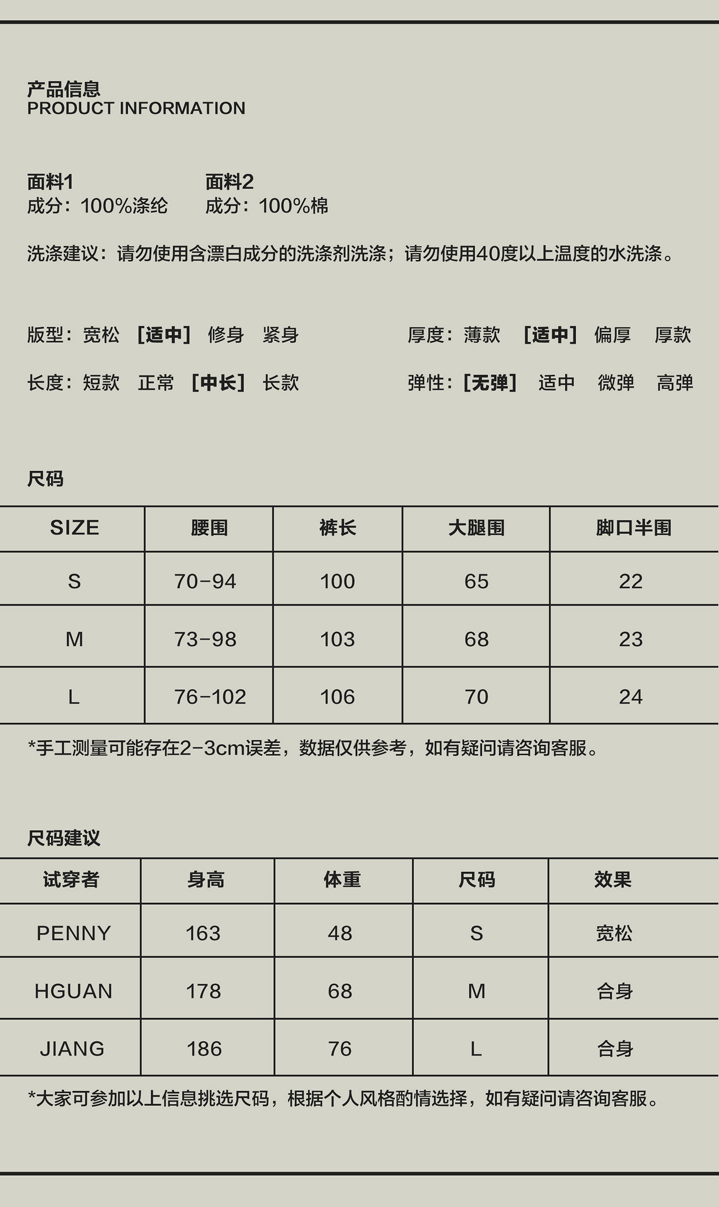 | 裤长: 长裤 |