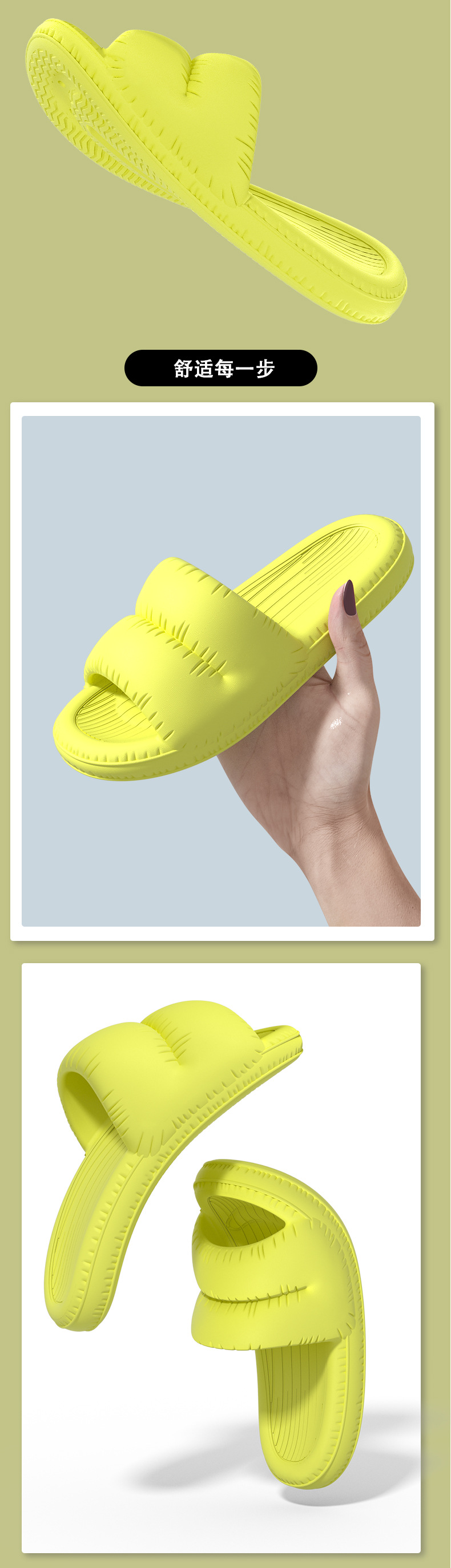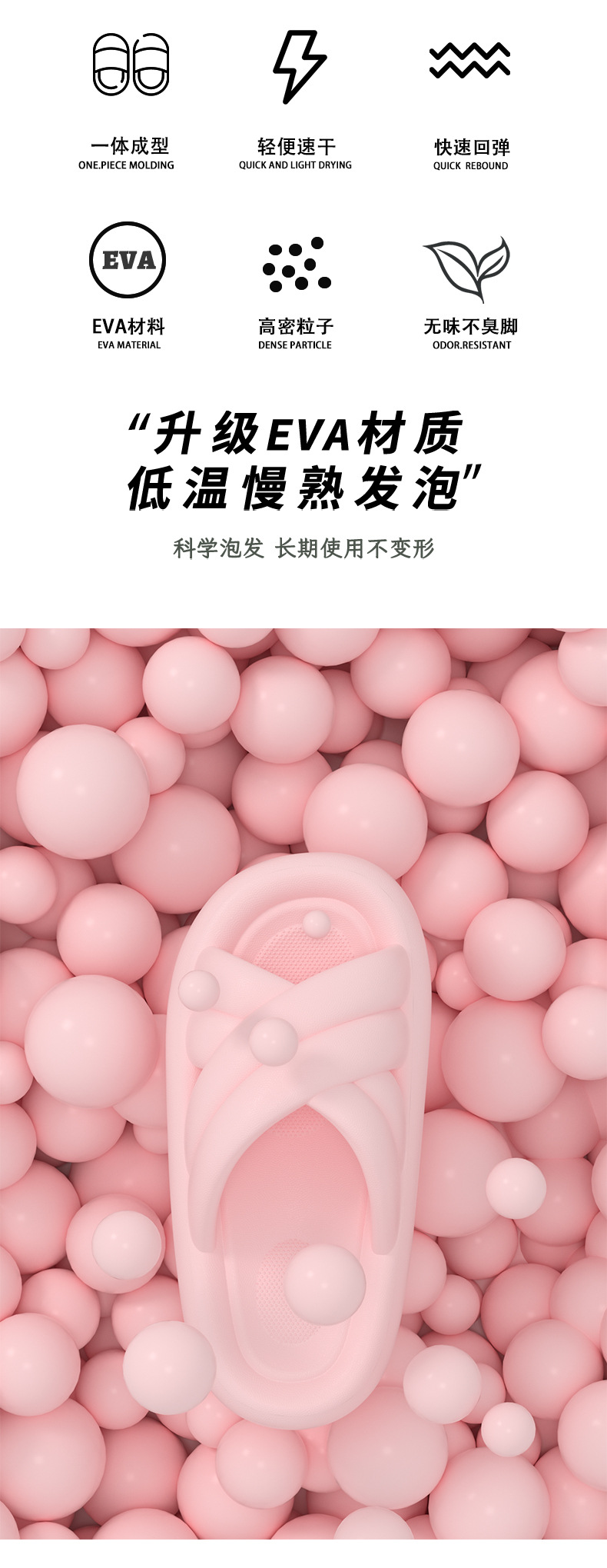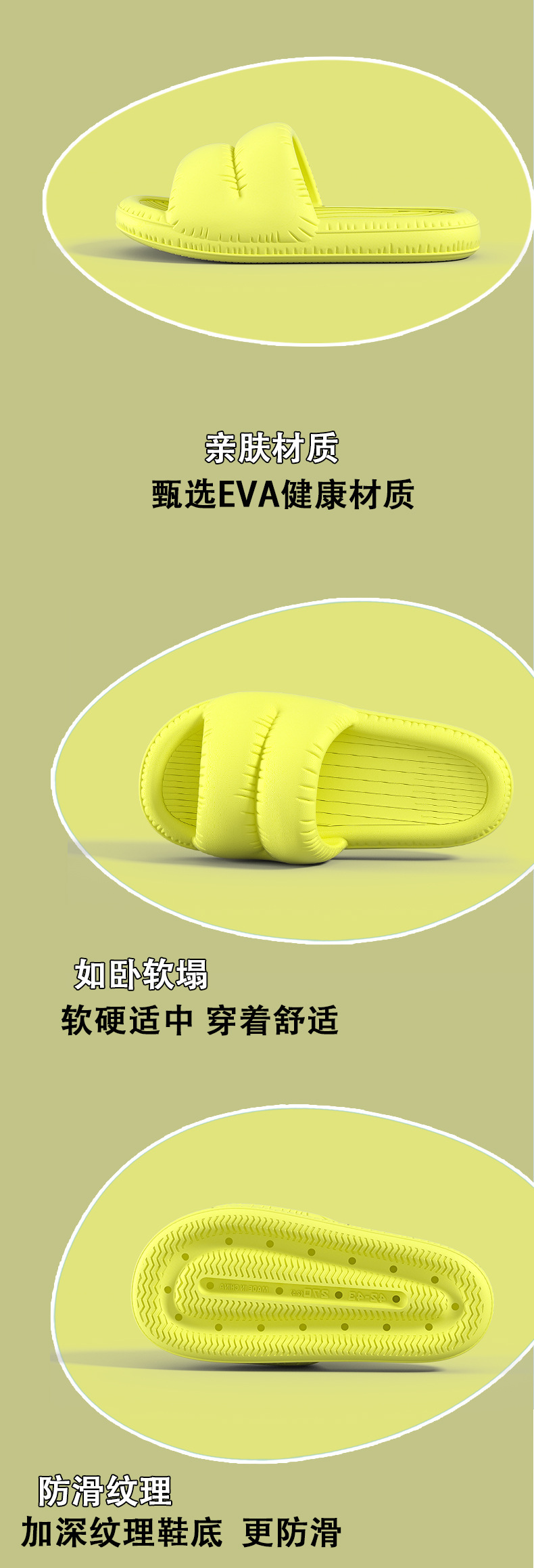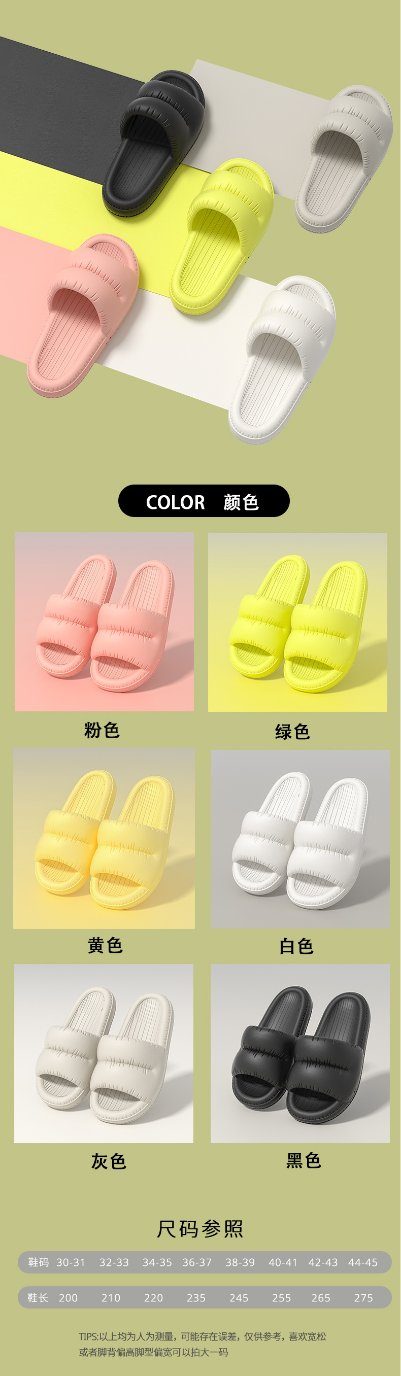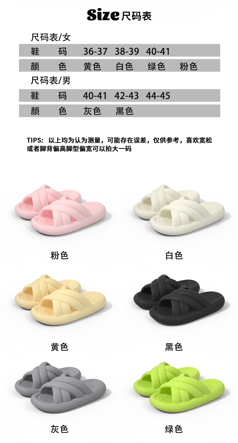 温馨提示:EVA材质拖鞋需避免高温暴晒,长时间高温会导致鞋子产生变形。