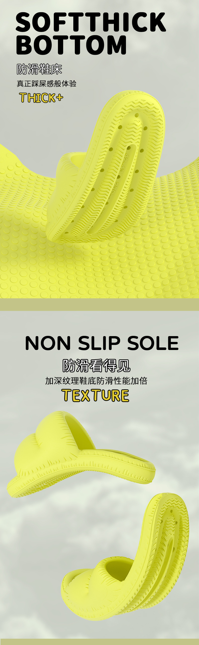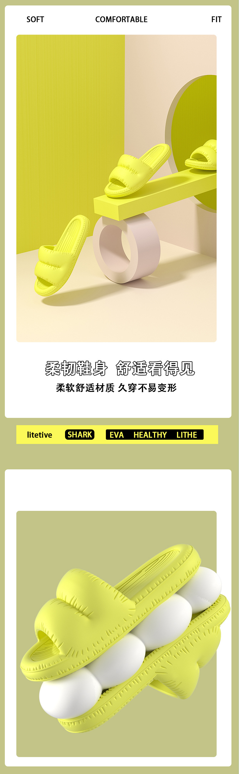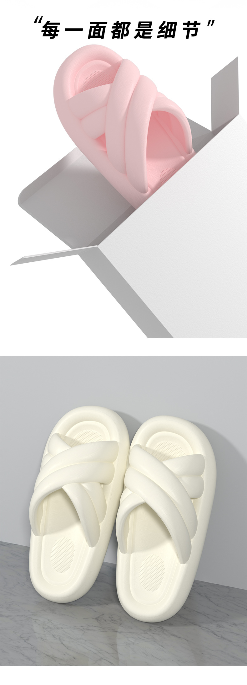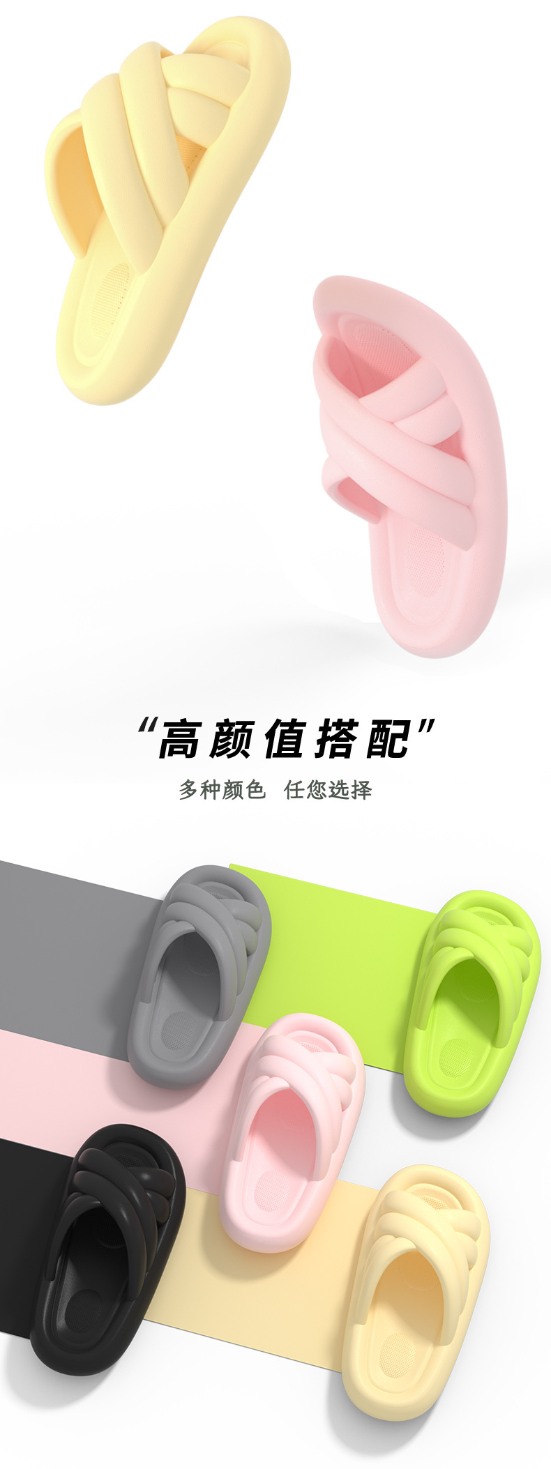 温馨提示:EVA材质拖鞋需避免高温暴晒,长时间高温会导致鞋子产生变形。