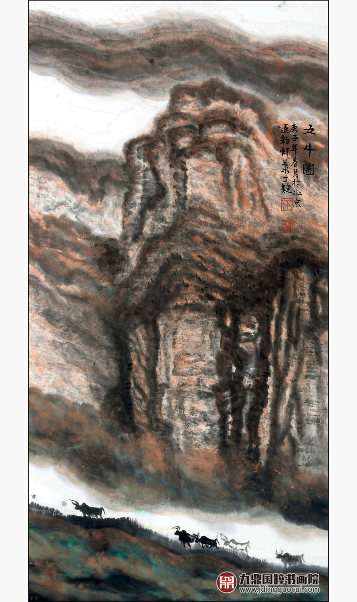 叶丁疑《五牛图》68*138cm 山水竖幅作品 玄关/办公室挂画