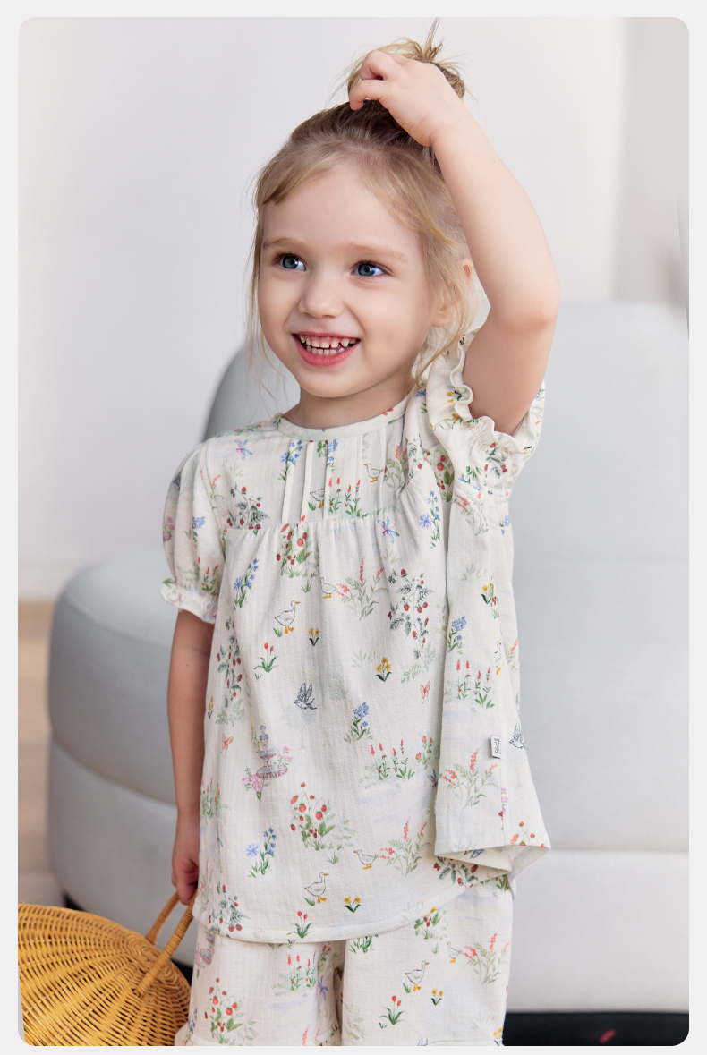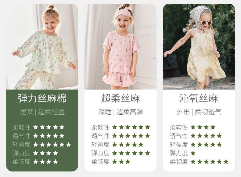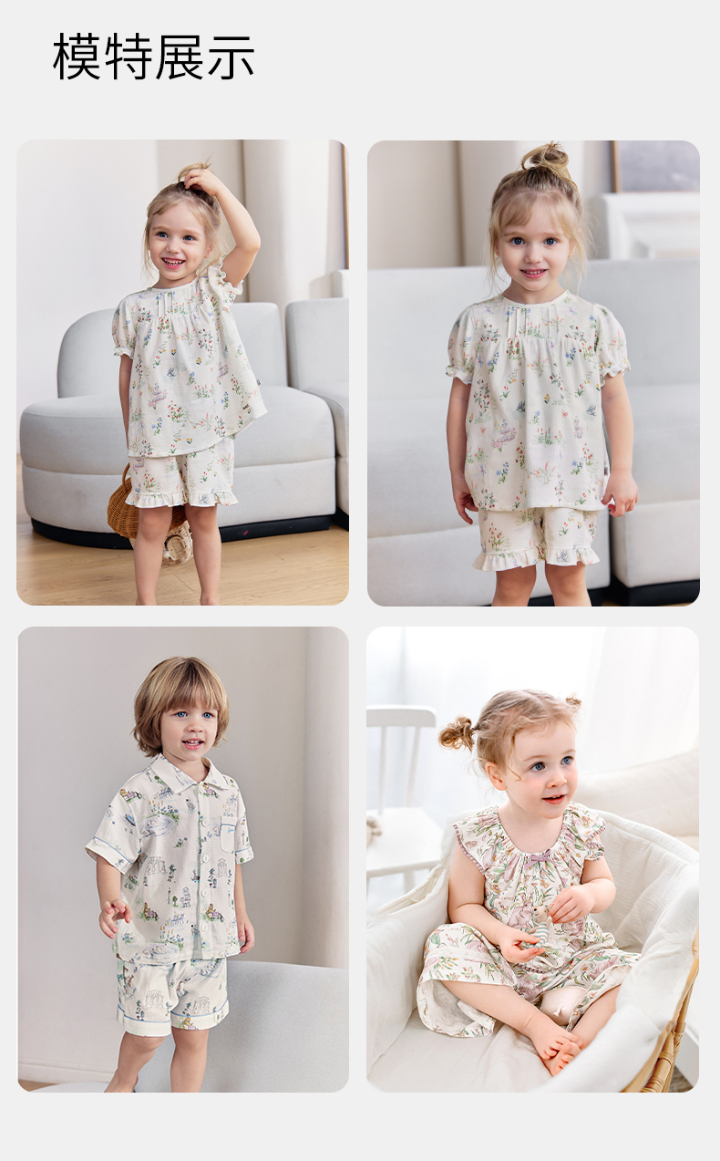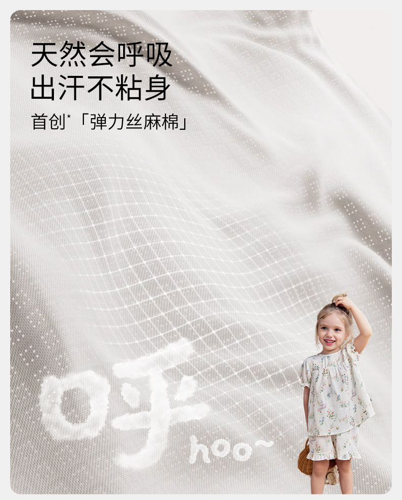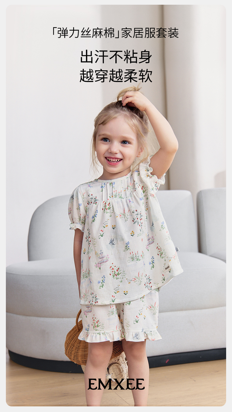 【宝宝服饰】嫚熙弹力丝麻棉儿童家居服套装男女童宝宝睡衣春夏