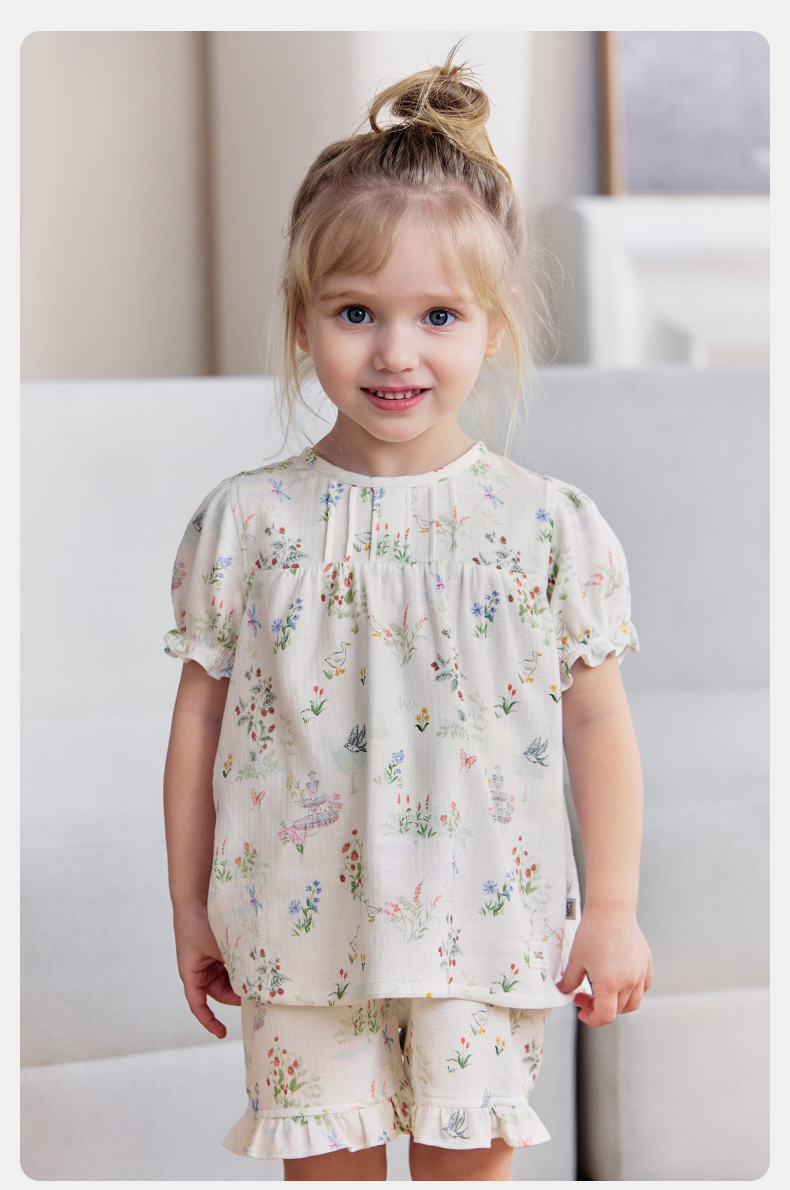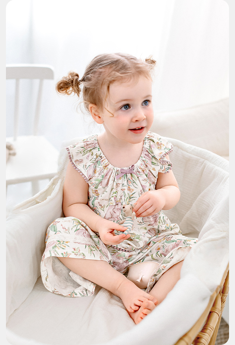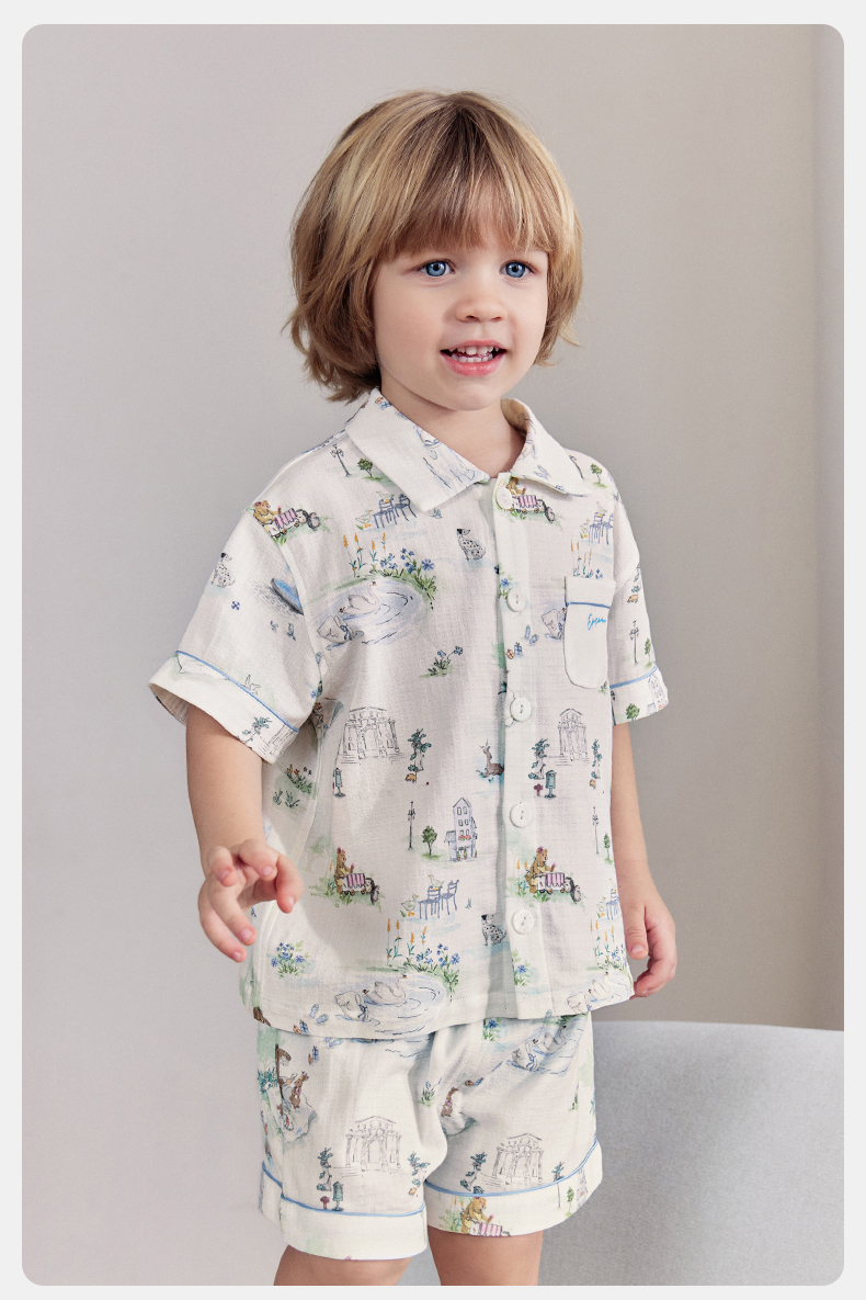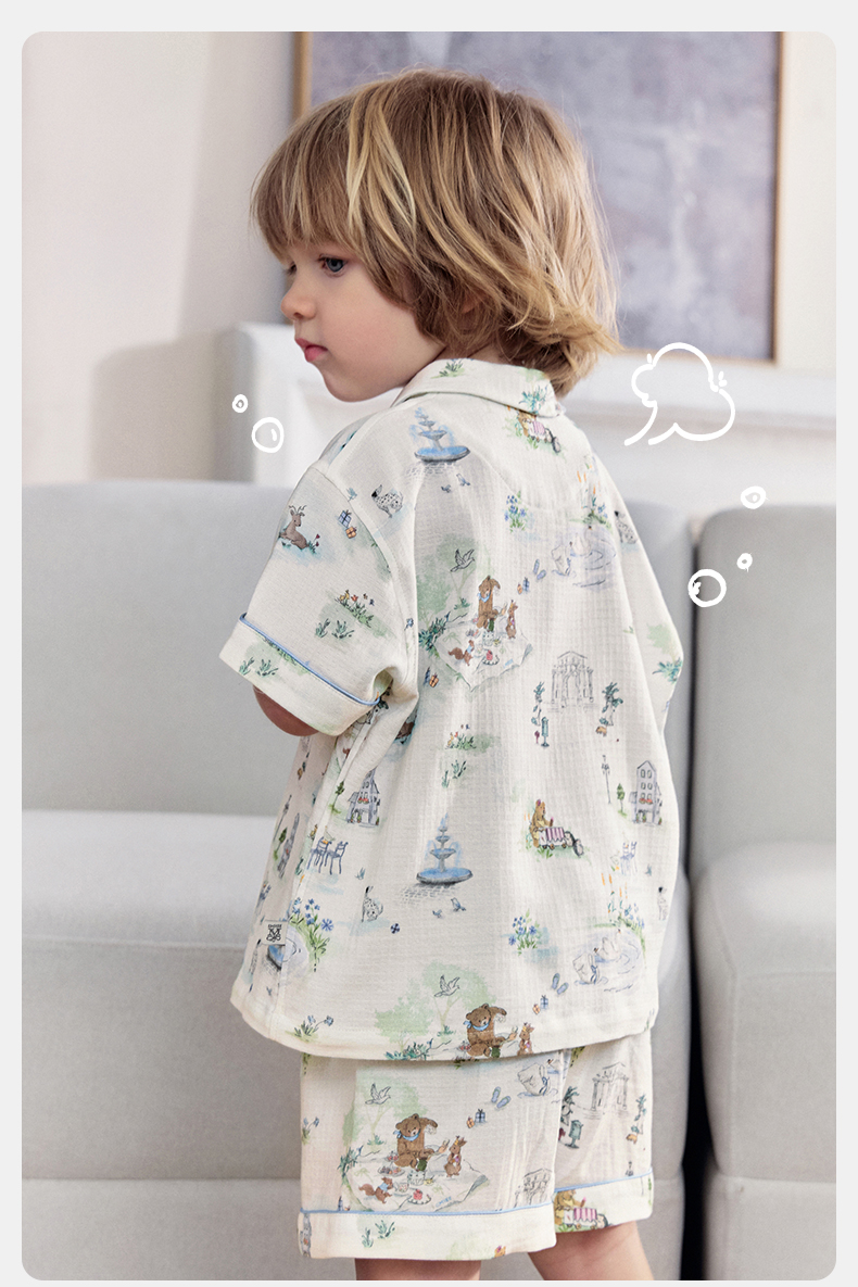 【宝宝服饰】嫚熙弹力丝麻棉儿童家居服套装男女童宝宝睡衣春夏