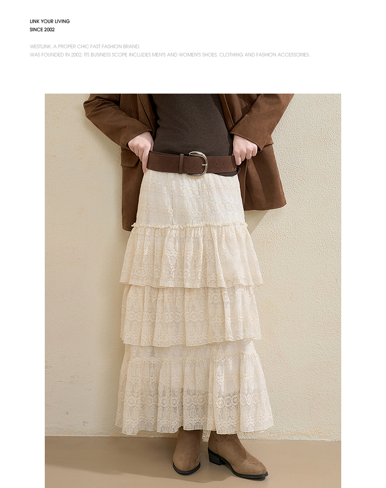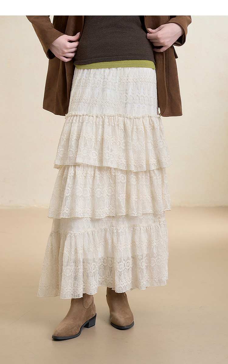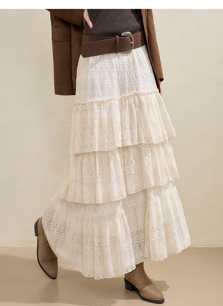 西遇法式蕾丝绣花蛋糕裙女秋季新款百搭高腰遮肉显瘦半身裙V3655262