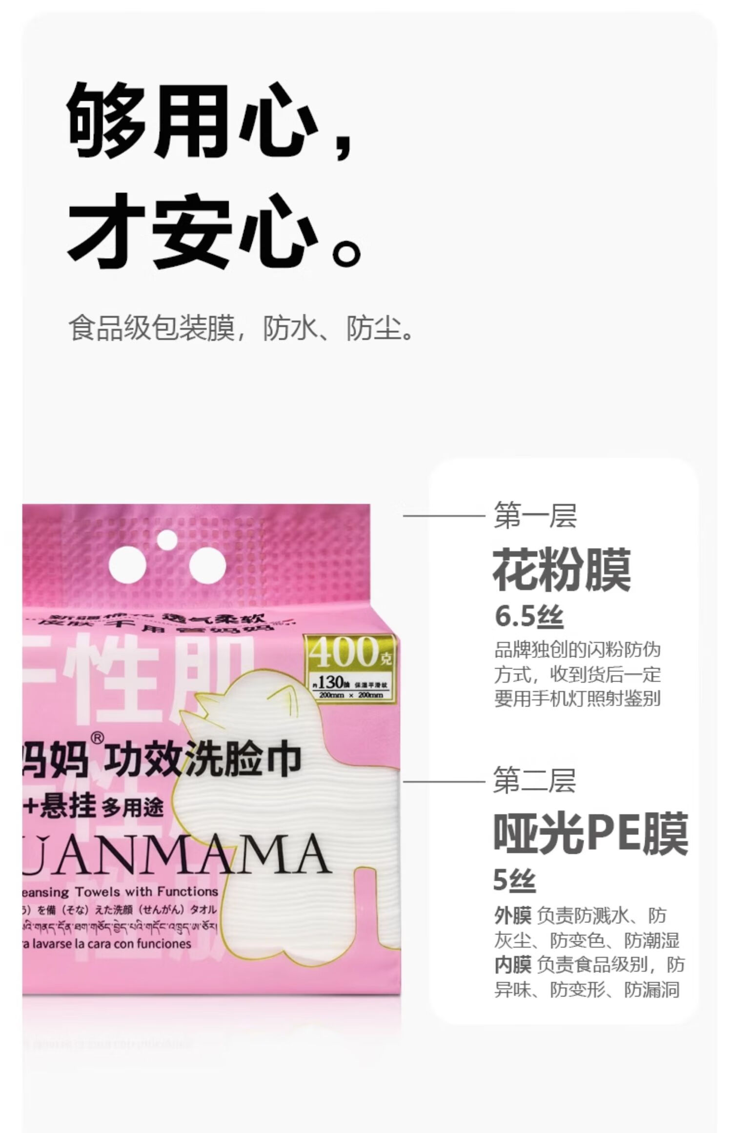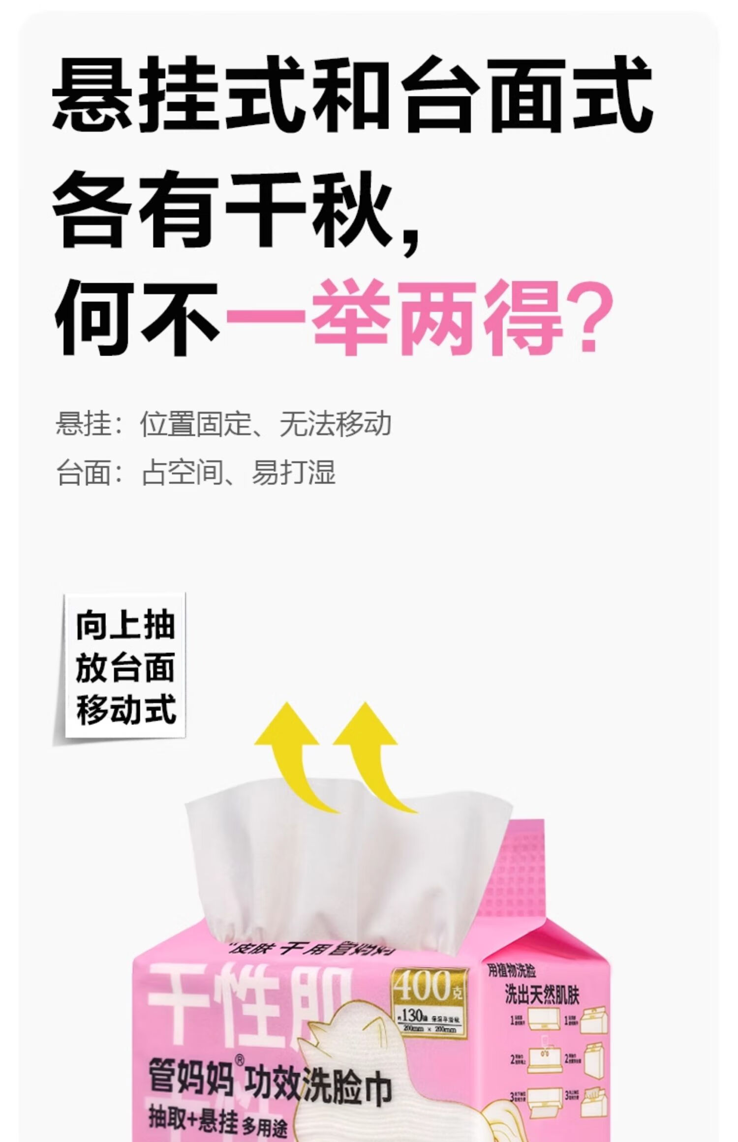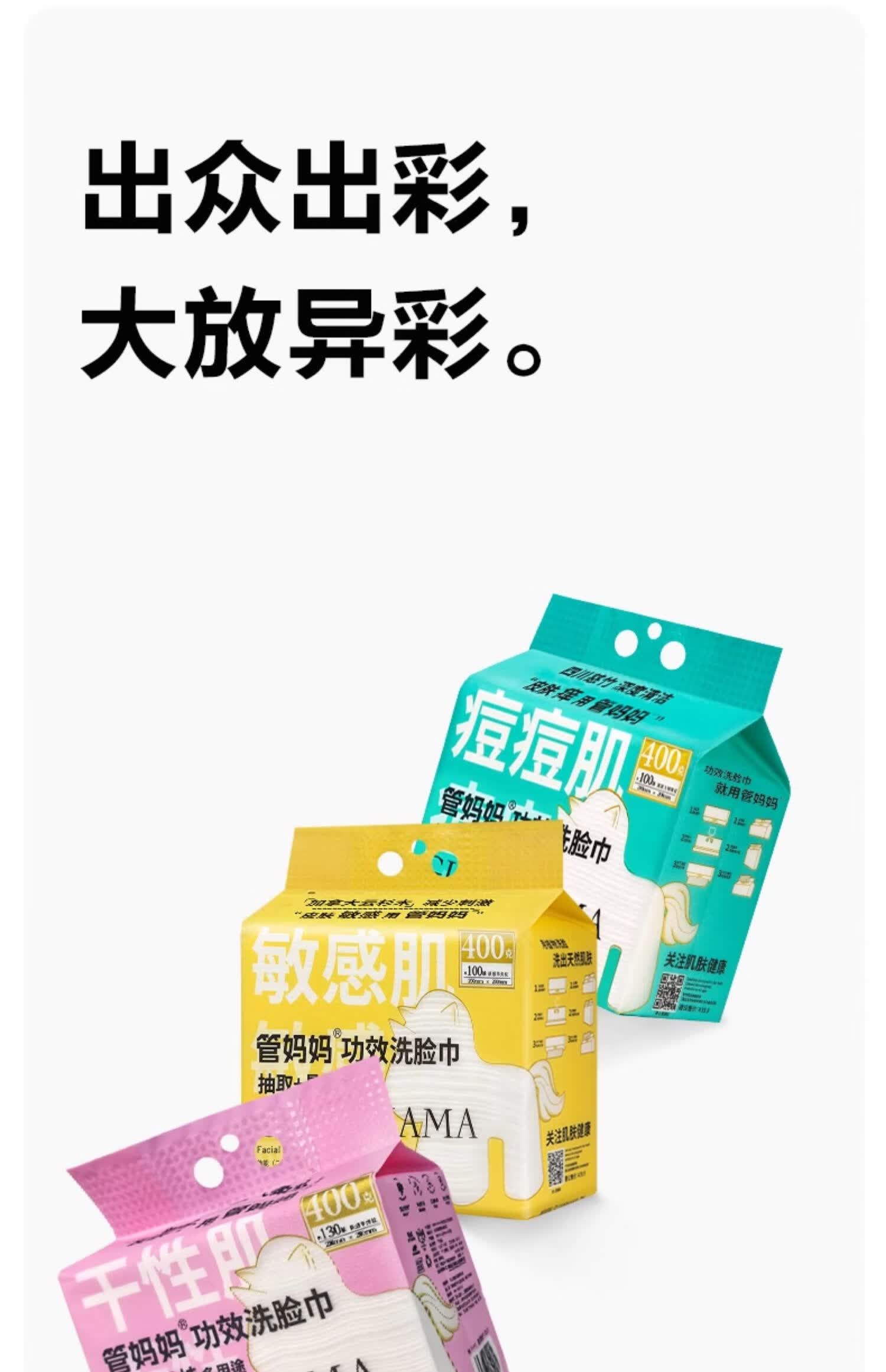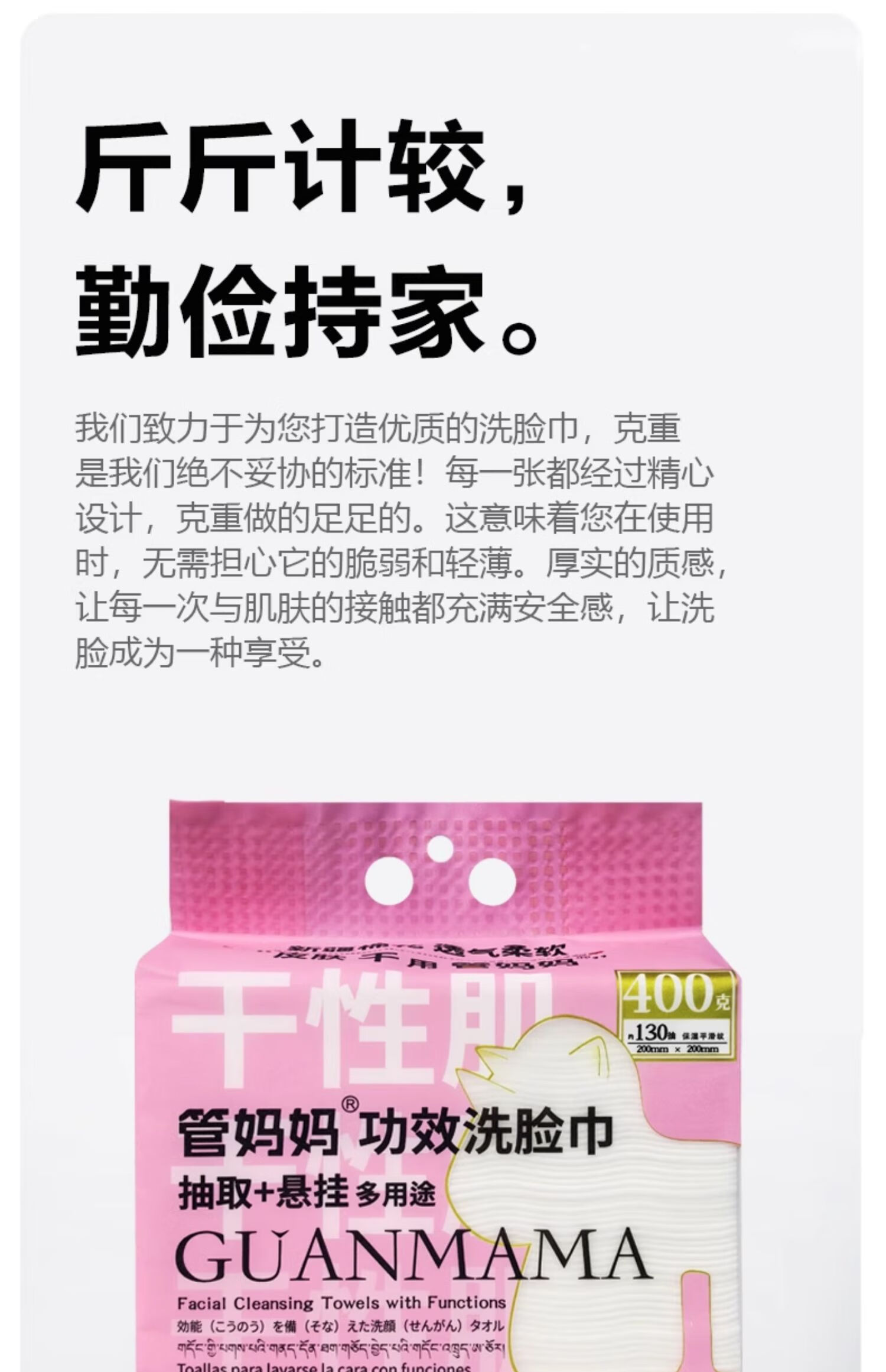 管妈妈干性肌润肤功效一次性洗脸巾 400克/袋
